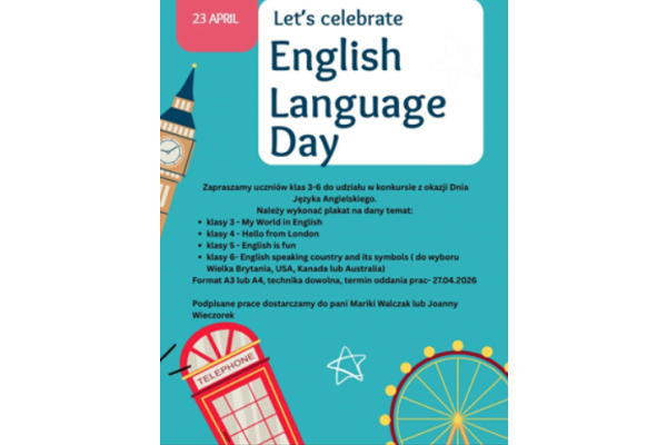 Czytaj więcej!Zapraszamy do konkursu plastycznego z okazji English Language Day