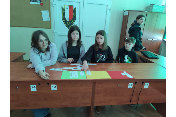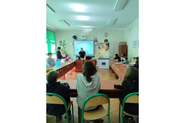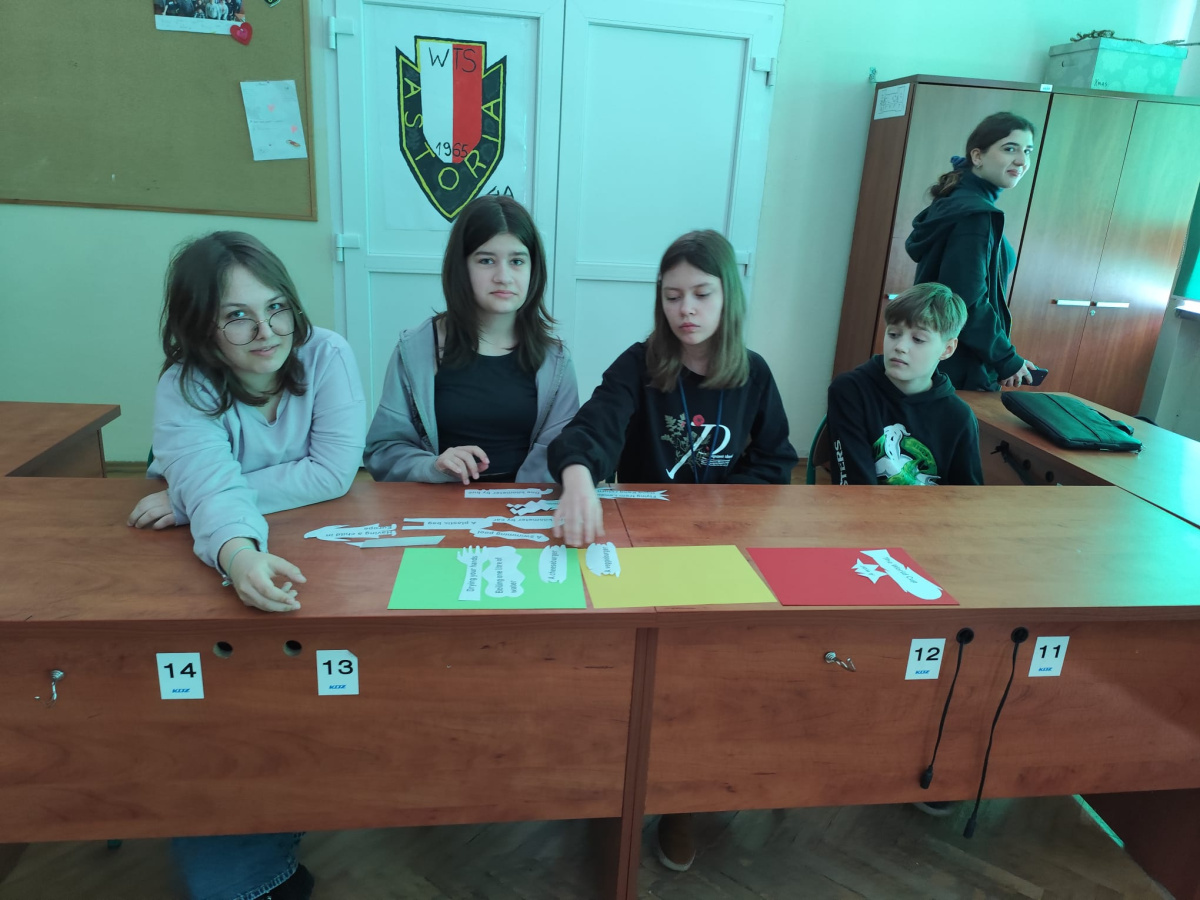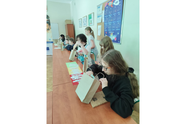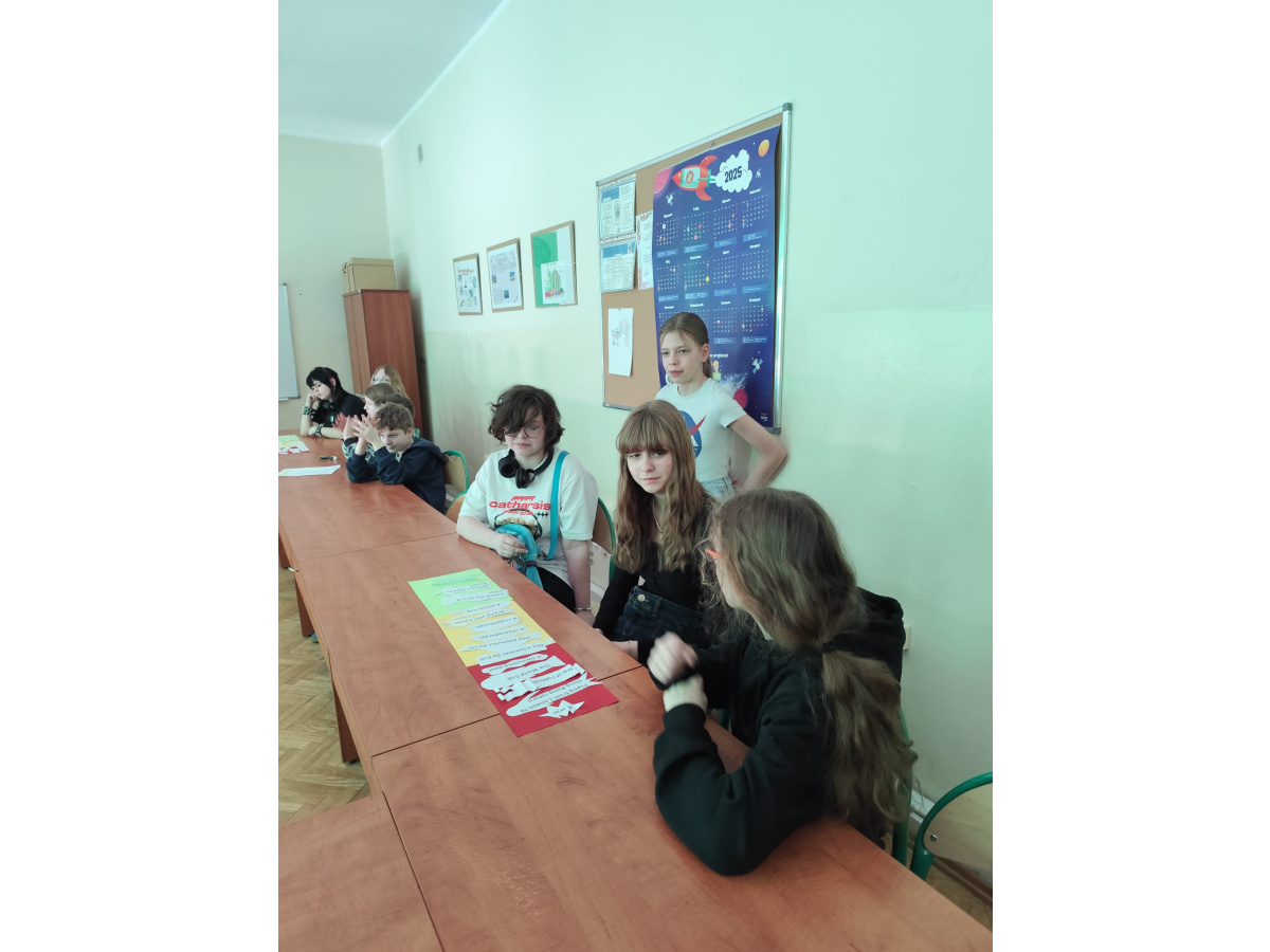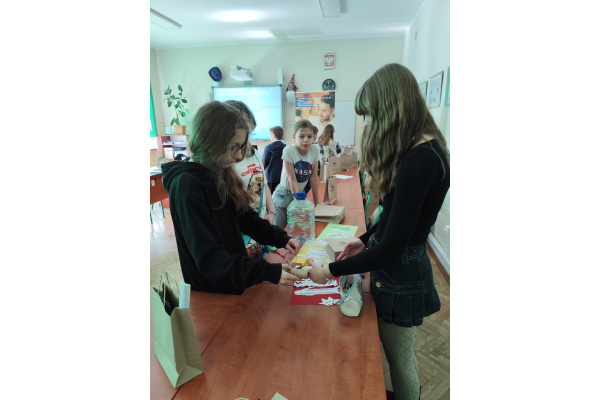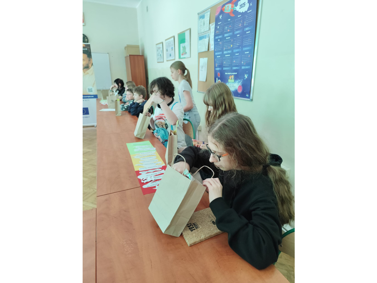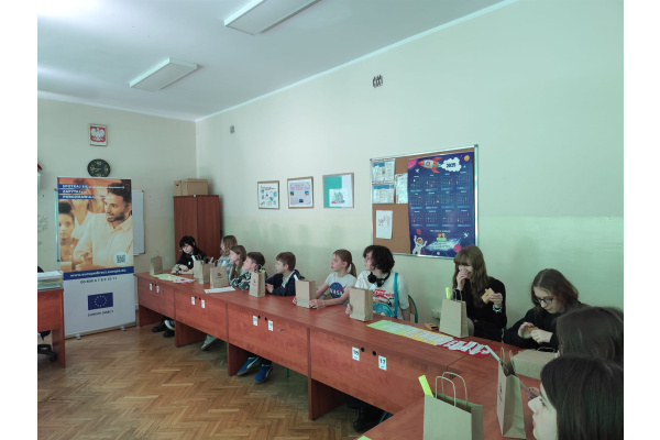 Pani M. Smarz nawiązała współpracę z punktem informacyjnym Europe Direct w Bydgoszczy. Wolontariusze zaproszeni do naszej szkoły poprowadzili zajęcia z ekologii w języku angielskim. Na początku byliśmy onieśmieleni, ale później odważnie komunikowaliśmy się w języku Szekspira. Jesteśmy bardzo zadowoleni. Zajęcia były interesujące i pozwoliły nam wykazać się kreatywnością.