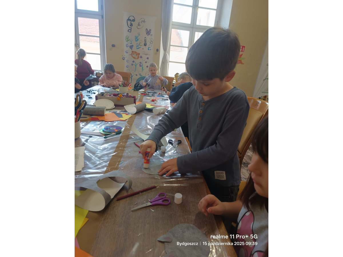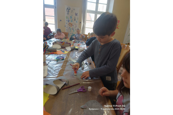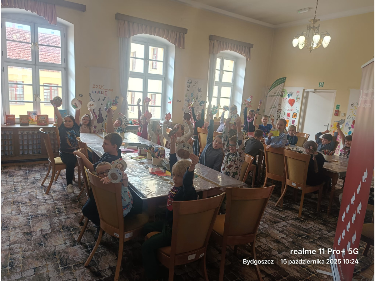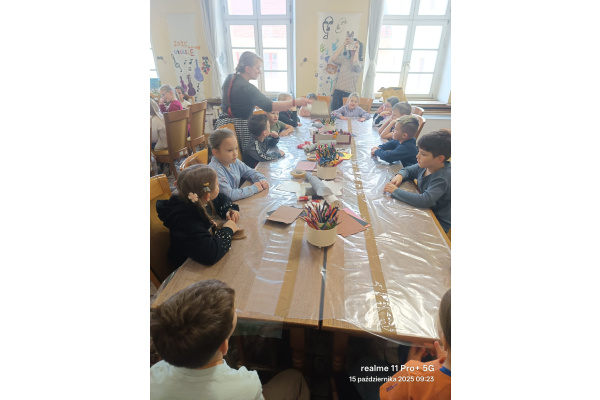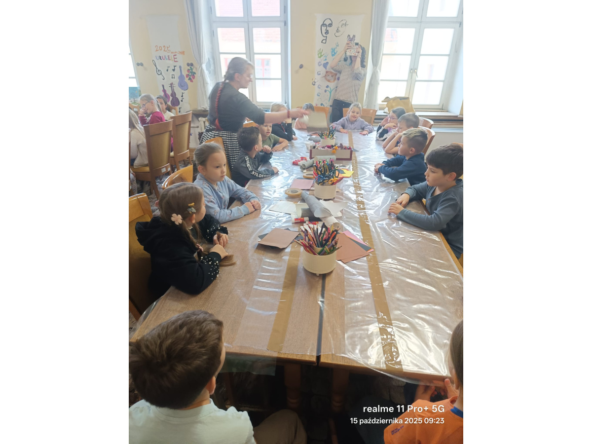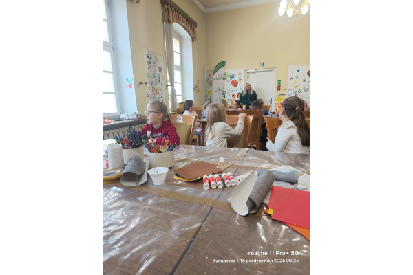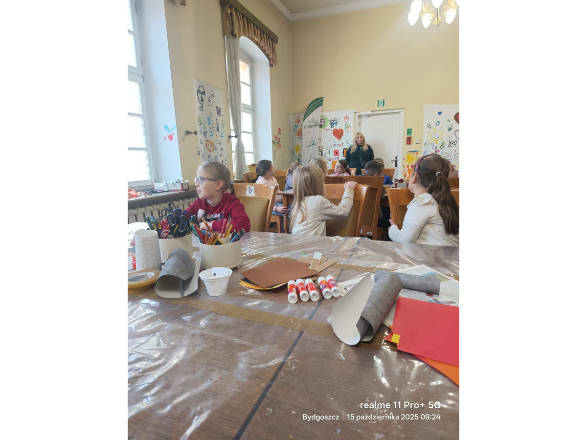 Uczniowie klasy 1b wzięli udział w warsztatach plastycznych organizowanych przez Wojewódzką i Miejską Bibliotekę Publiczną w Bydgoszczy na Starym Rynku. Tematyką zajęć były "Jesienne zwierzęta na okrągło". Kreatywność i pomysły dzieci były zachwycające. Dziękujemy za możliwość skorzystania z możliwości odwiedzin biblioteki. Jeszcze tu chętnie wrócimy!