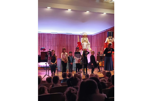 Klasa 3b wzięła udział w grudniowej audycji muzycznej w Filharmonii Pomorskiej. Nikt nie spodziewał się, że w tym dniu będzie oglądał publiczność ze sceny. Udało się to kilku przedstawicielom z naszej klasy. Nie dość, że zgrali przed widownią, to mieli również okazję wspólnie wykonać utwór z profesjonalnymi muzykami.