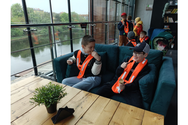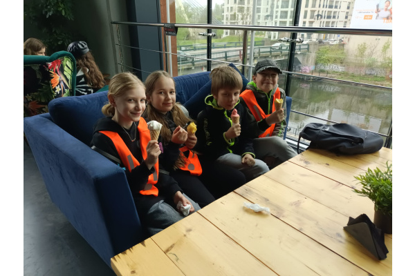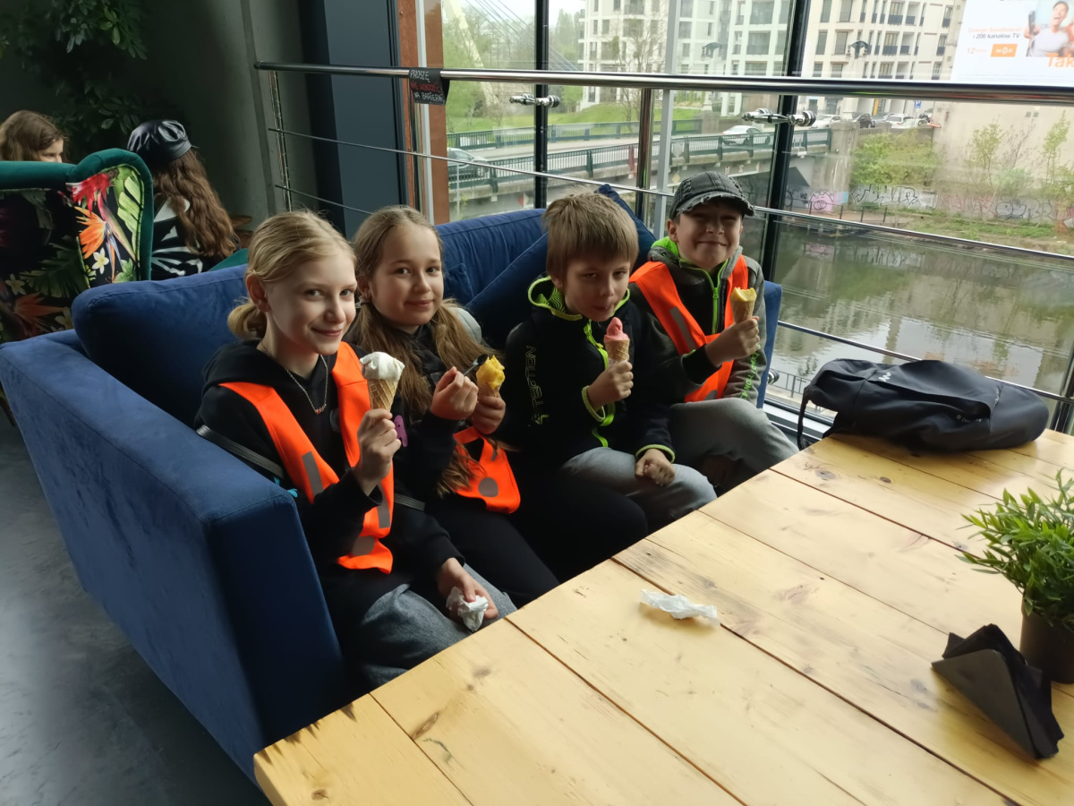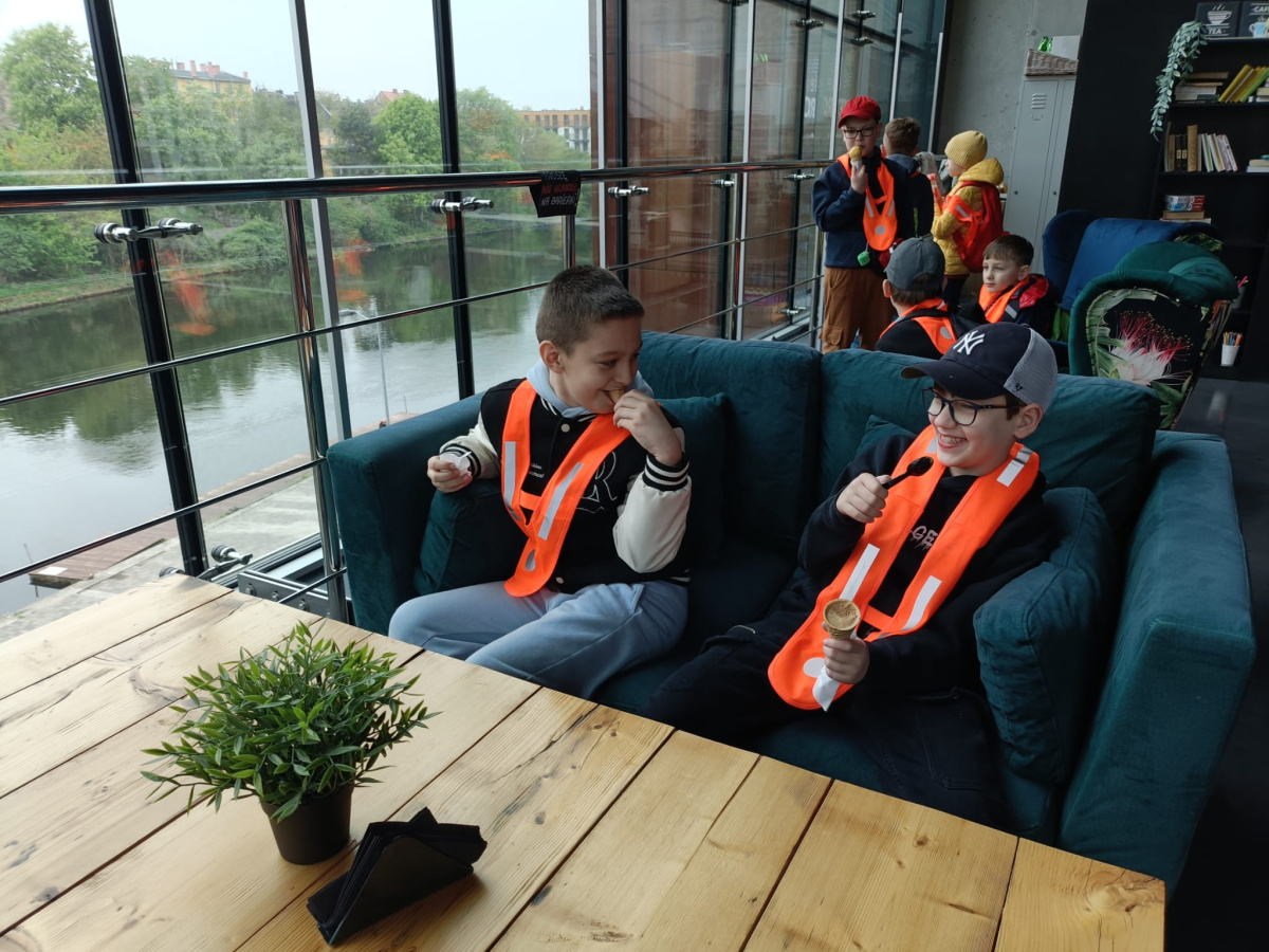 W czwartek wybraliśmy się z trenerami na Astorię. Zwiedziliśmy budynek i zobaczyliśmy jak wygląda życie w klasie sportowej. Spróbowaliśmy swoich sił w wiosłowaniu na Smoczej Łodzi. Na końcu czekała na nas niespodzianka - pyszne lody od Klubu Astoria.