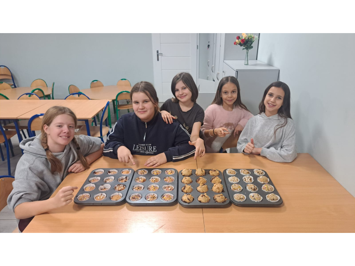 Dziewczynki z klasy 4a nie tylko są wysportowane ale również wspaniale potrafią przygotować zdrowe przekąski po wysiłku fizycznym. Tym razem upiekły zdrowe bananowe muffinki. Wspólne zajęcia kulinarne są okazją do spędzenia czasu ze sobą, ciekawych rozmów podczas przygotowania posiłku oraz wspólne spożywanie i delektowanie się nim.