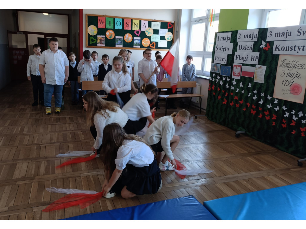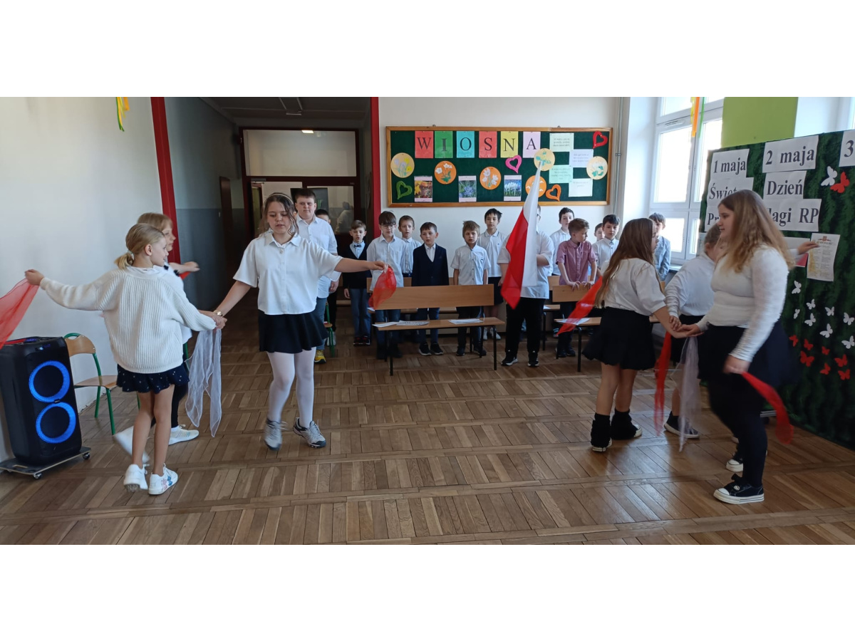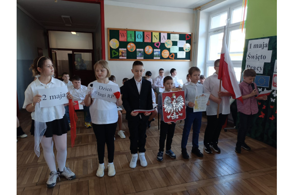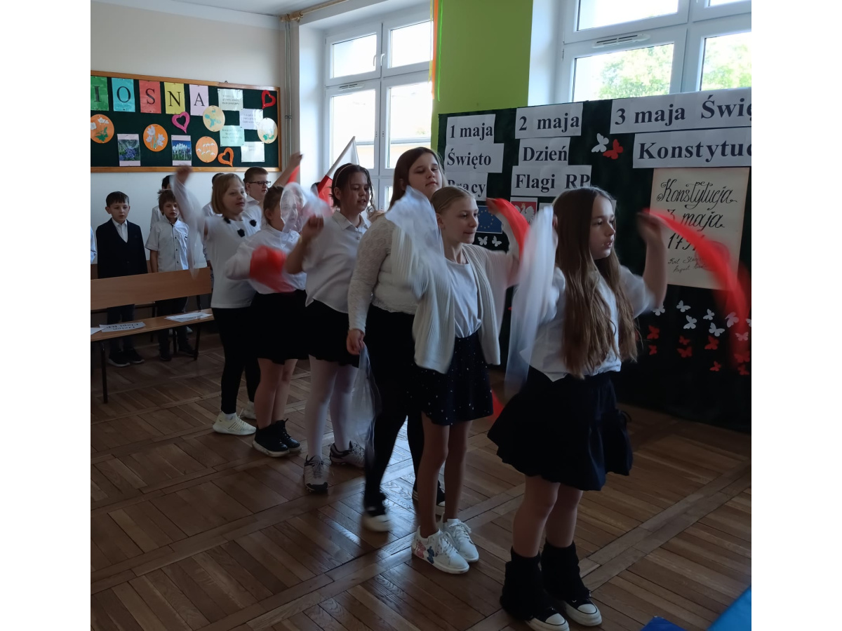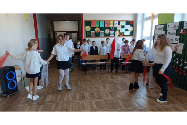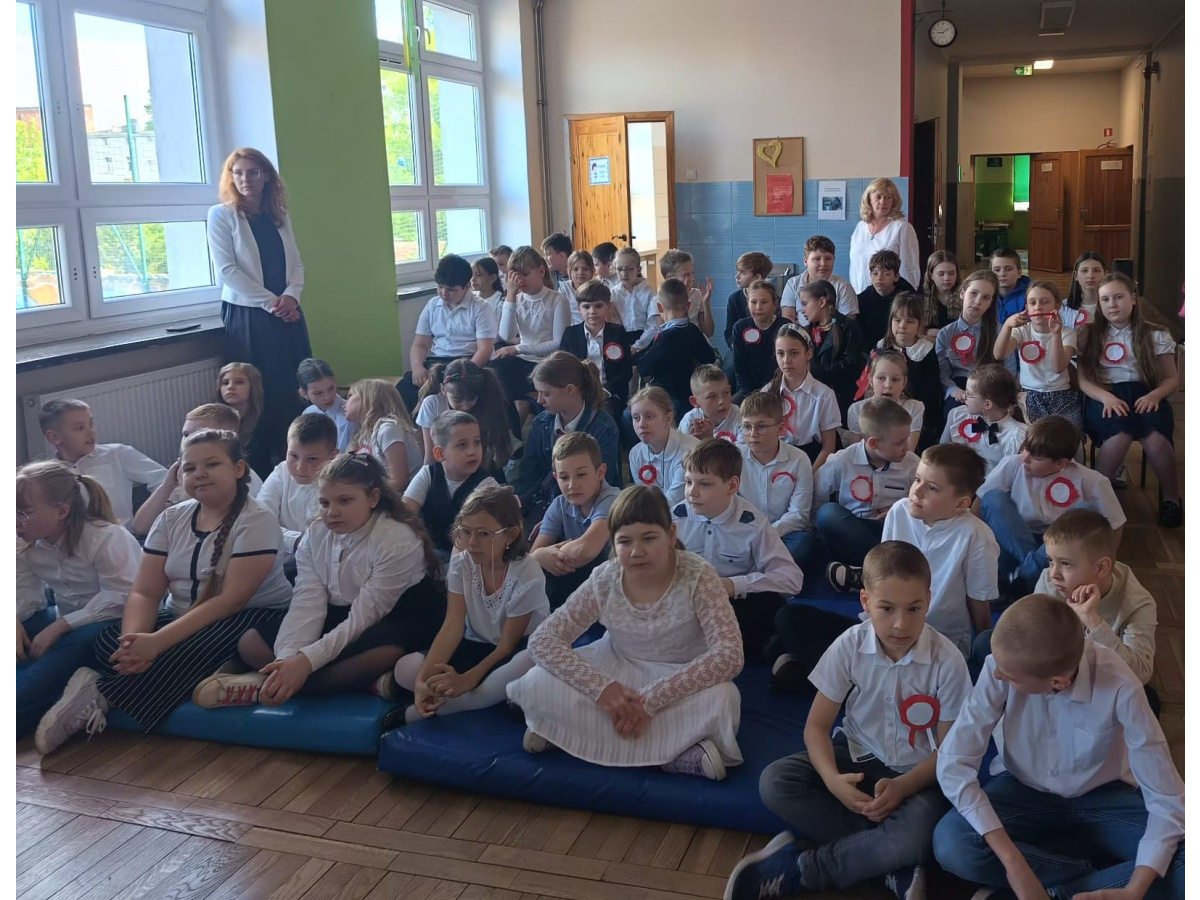Przed majówką spotkaliśmy się na apelu. Klasa 3C przypomniała wszystkim czego dotyczą nadchodzące święta. Rozmawialiśmy o pracy, Unii Europejskiej, symbolach narodowych i oczywiście o Konstytucji 3 Maja. Wspólnie zaśpiewaliśmy też patriotyczne piosenki.