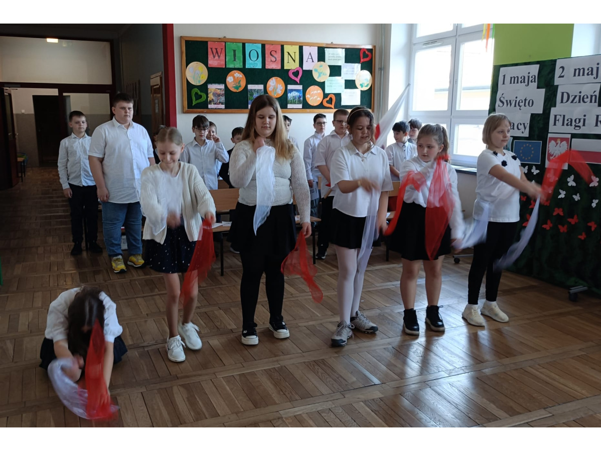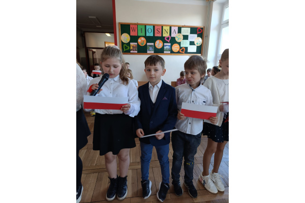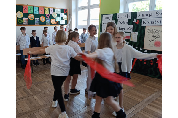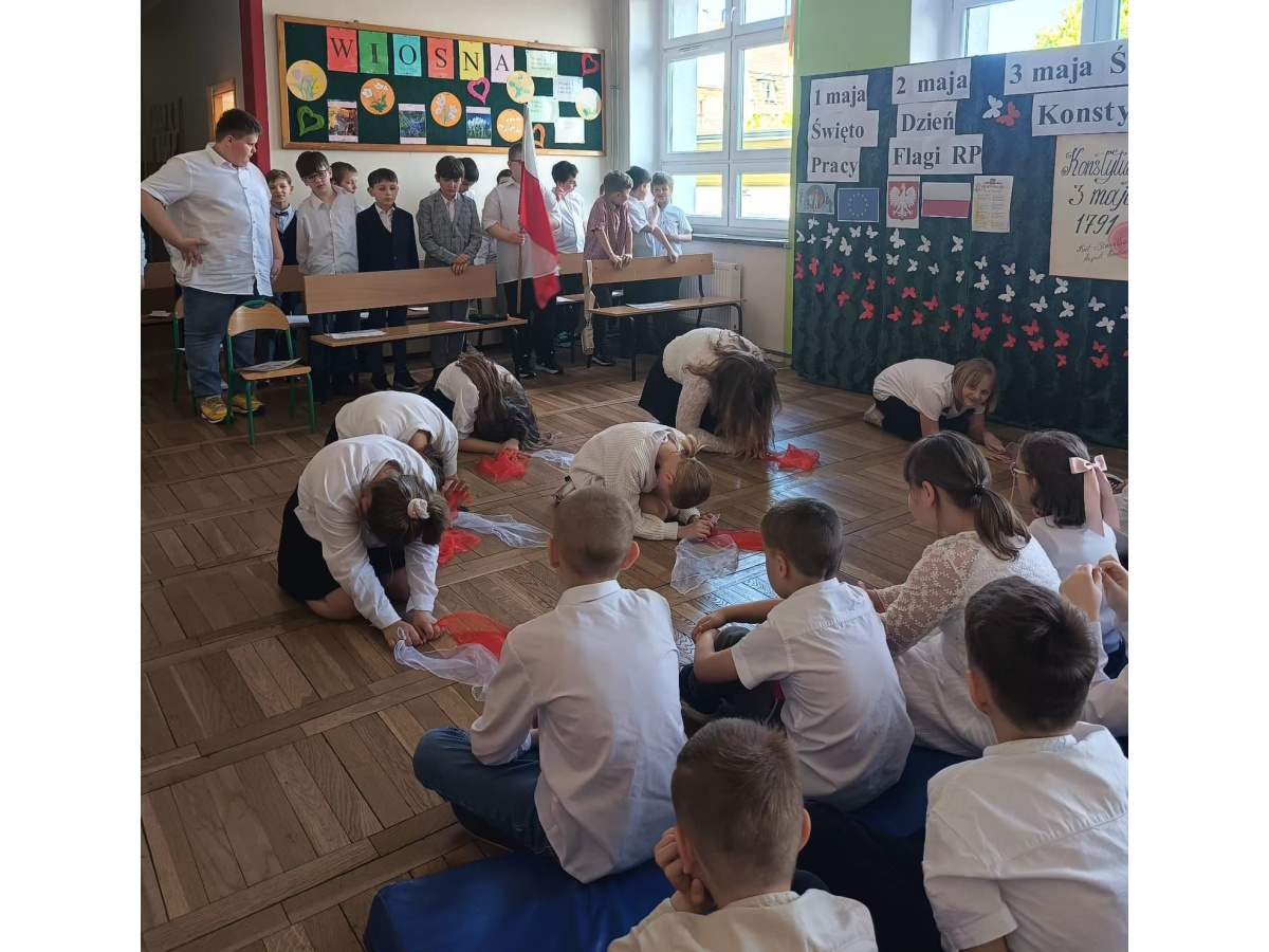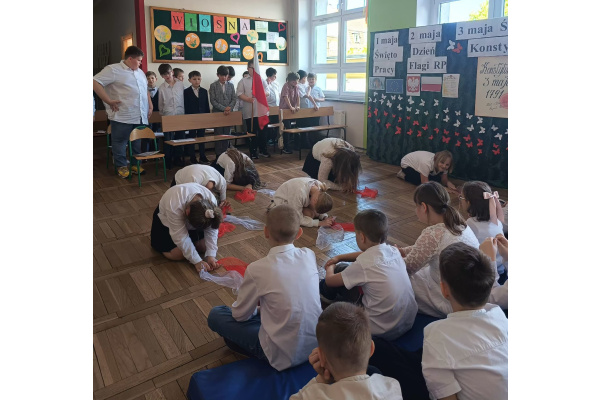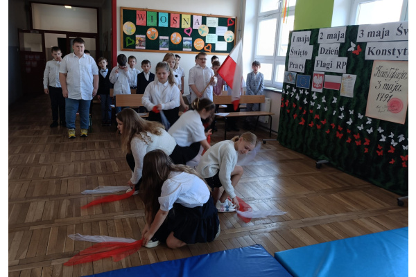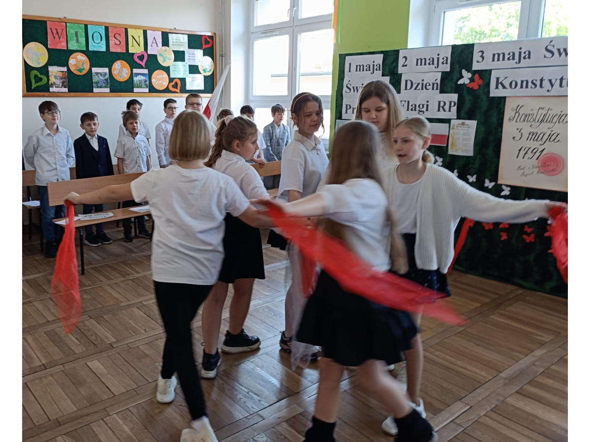 Przed majówką spotkaliśmy się na apelu. Klasa 3C przypomniała wszystkim czego dotyczą nadchodzące święta. Rozmawialiśmy o pracy, Unii Europejskiej, symbolach narodowych i oczywiście o Konstytucji 3 Maja. Wspólnie zaśpiewaliśmy też patriotyczne piosenki.