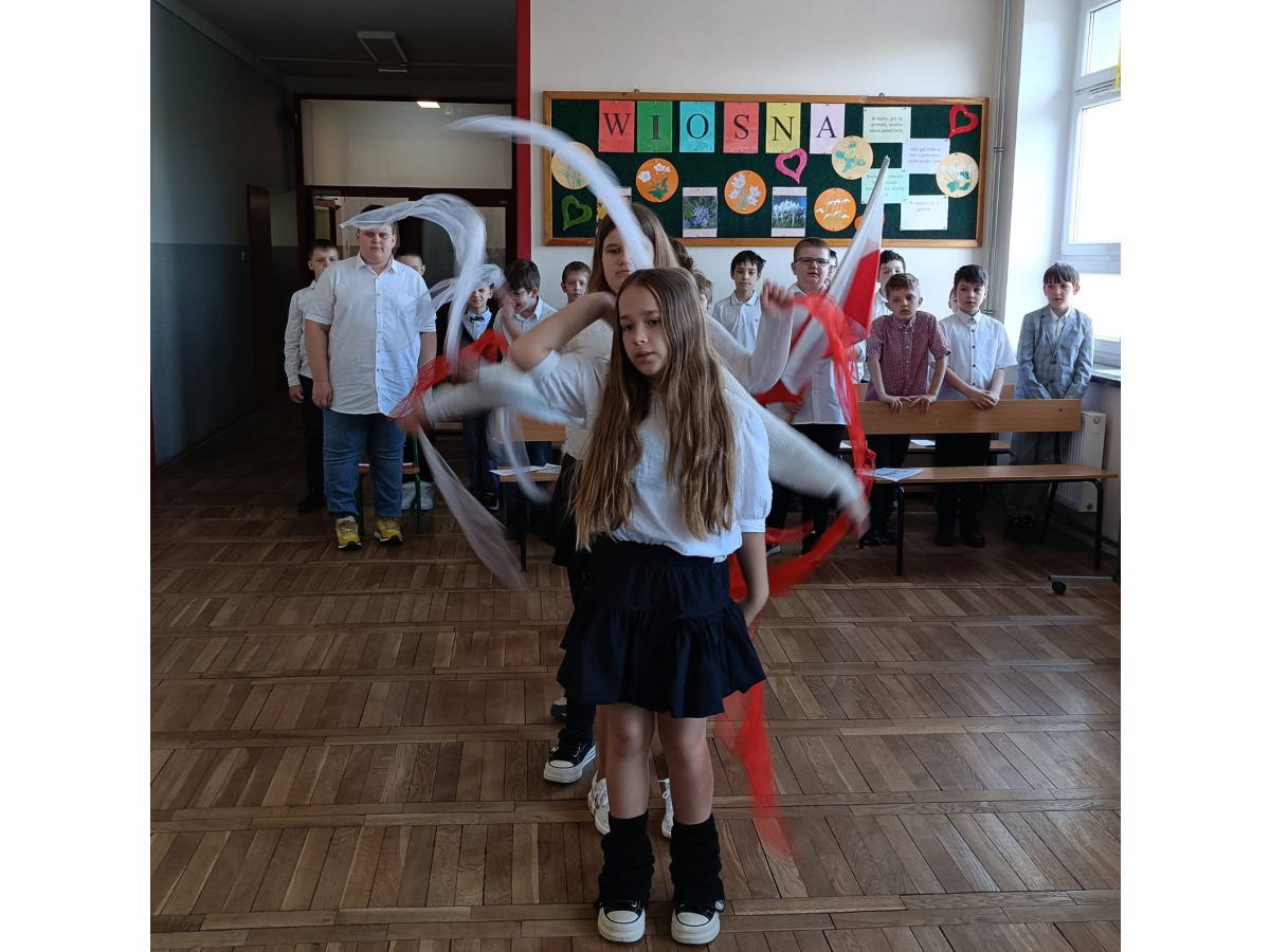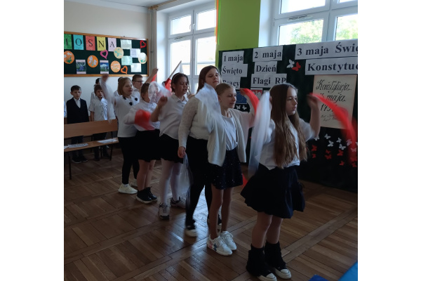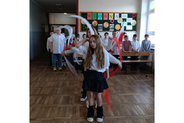 Uczennice 3C wykazały się talentem tanecznym i choreograficznym. Samodzielnie wymyśliły układ i ćwiczyły go przez wiele dni. Na apelu pięknie zatańczyły interpretując piosenkę o barwach narodowych.