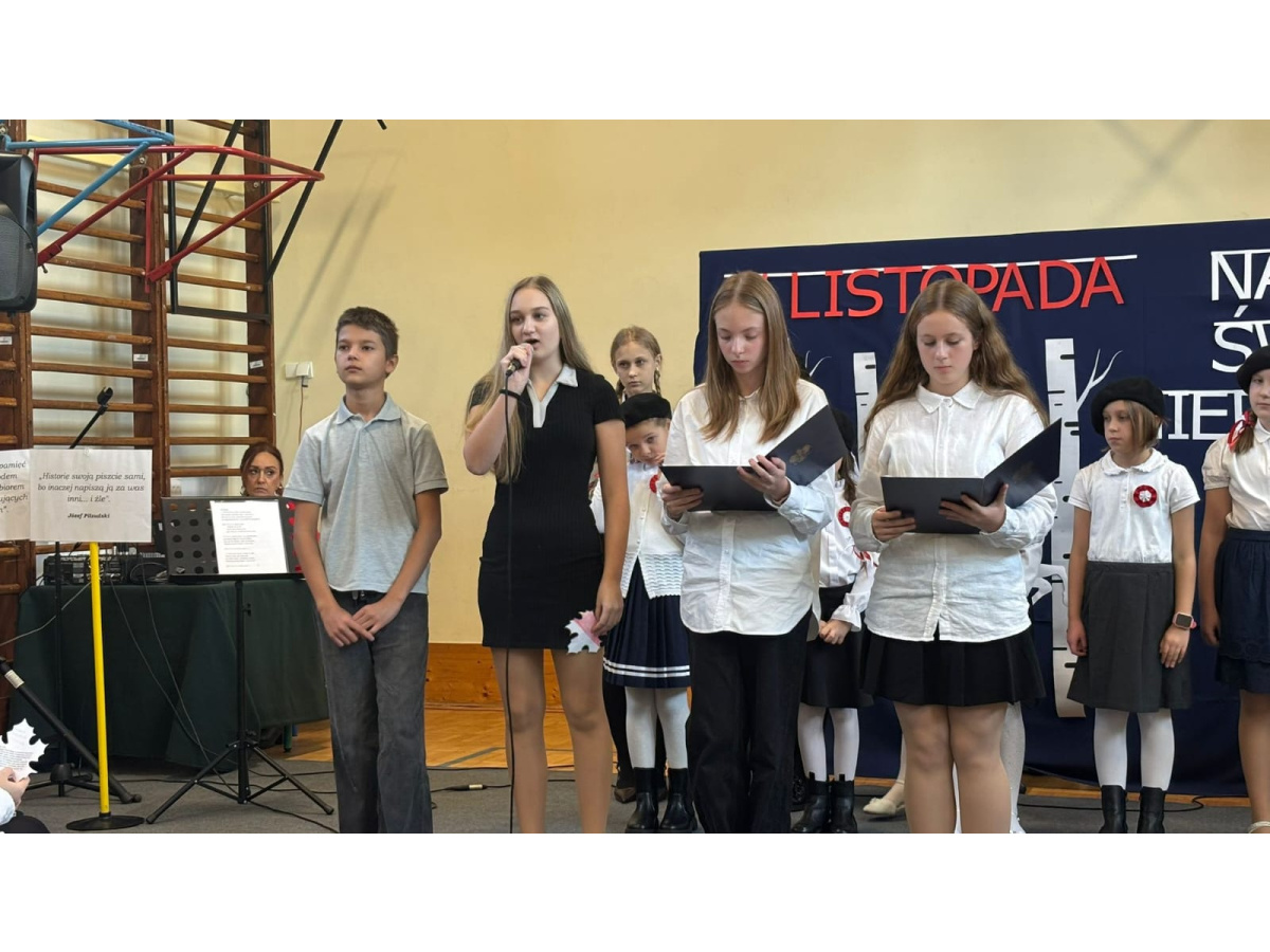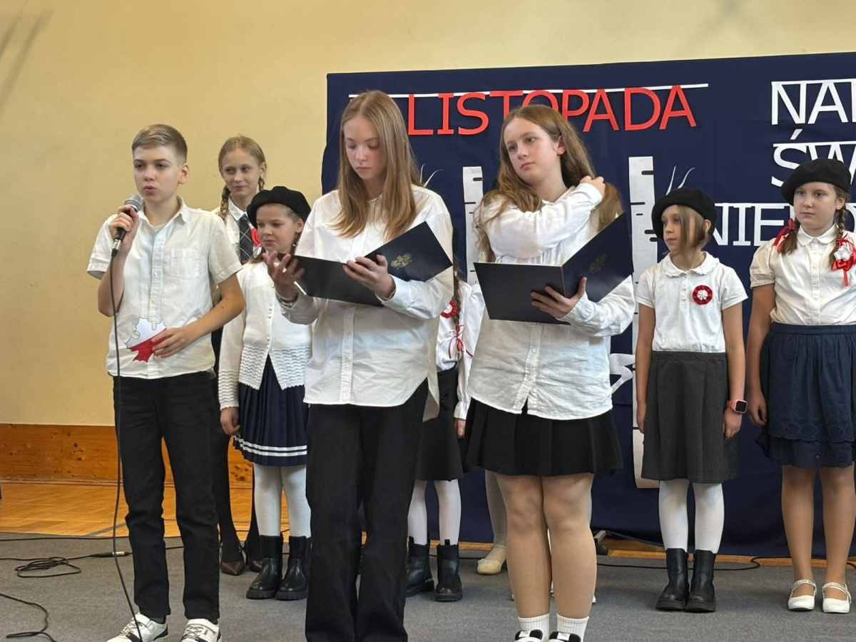 07. 11. 2025 roku z okazji Święta Niepodległości odbył się w naszej szkole apel. Na scenie wystąpili uczniowie klasy 7c pod opieką Pani Karoliny Lubiszewskiej i Violetty Adamowskiej.