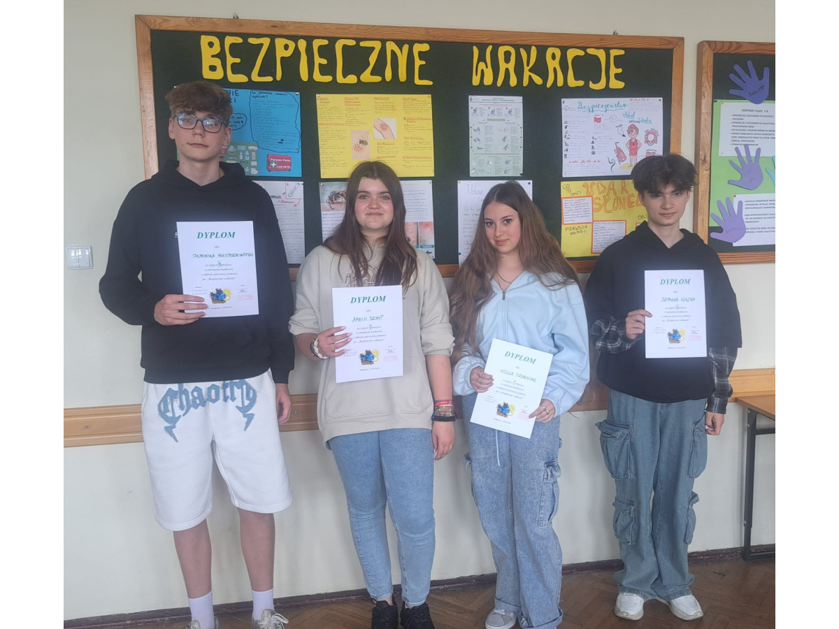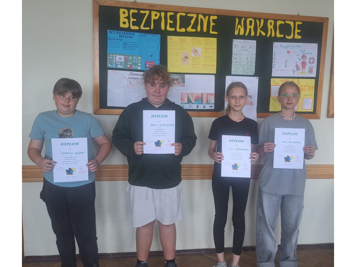 Dnia 12 czerwca w naszej szkole odbył się konkurs pt. "Bezpieczne wakacje" z zakresu pierwszej pomocy. Wydarzenie to składało się z dwóch części, teoretycznej gdzie uczniowie musieli wykazać się wiedzą z zakresu pierwszej pomocy oraz części praktycznej gdzie uczestnicy wykazywali się umiejętnościami praktycznymi.