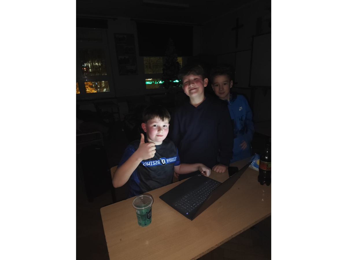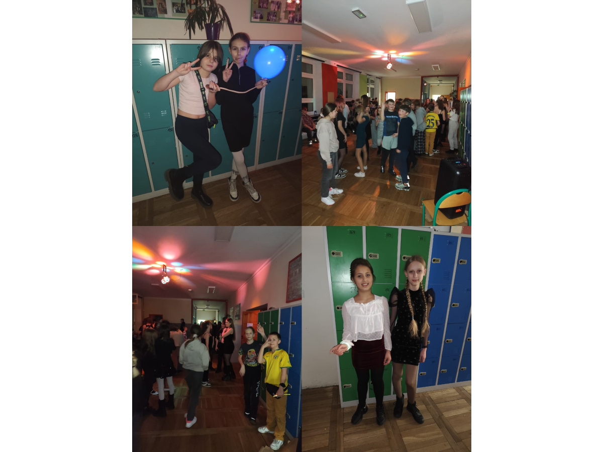 Bawiliśmy się świetnie. Impreza cieszyła się dużym zainteresowaniem, udział wzięło 107 dzieci. Antek z 6a, Damian i Mateusz z 5a zadbali o muzykę.