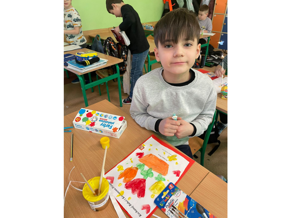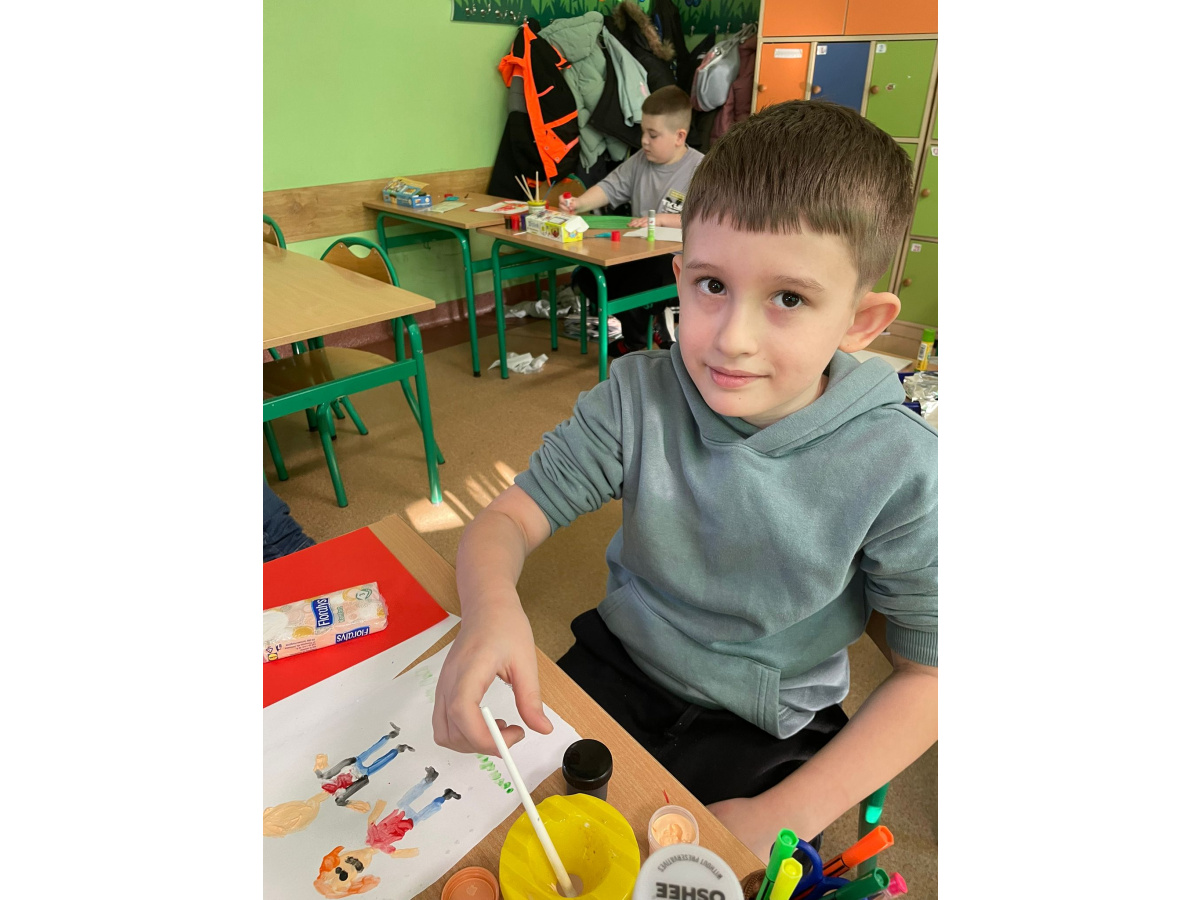 Klasa 2a przygotowywała prezenty z okazji Dnia Babci i Dziadka. Uczniowie z dużym zaangażowaniem wykonywali własnoręcznie upominki oraz pisali życzenia dla babć i dziadków. Zajęcia sprawiły dzieciom wiele radości i były okazją do rozmów o szacunku, miłości i wdzięczności wobec najbliższych.