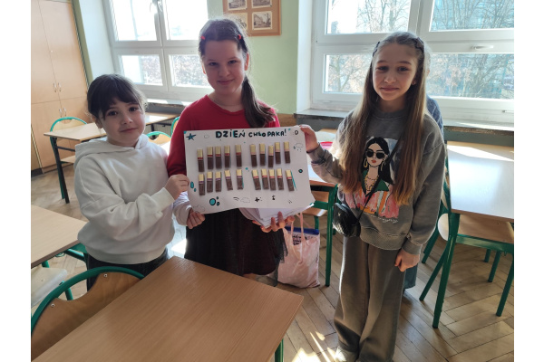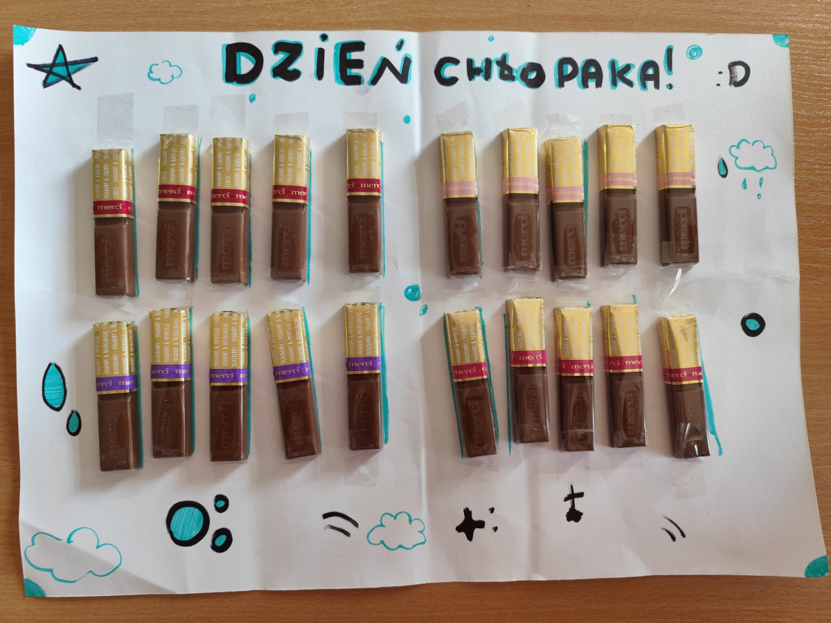 Dziewczyny z klasy 4A przygotowały słodki upominek dla kolegów z klasy. 10 marca Światowy Dzień Mężczyzn:) Wszystkiego dobrego chłopaki!