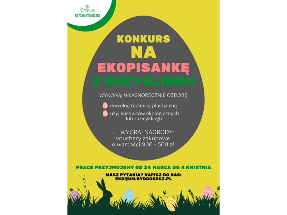 Celem konkursu „Ekopisanka z recyklingu” jest zachęcenie bydgoszczanek i bydgoszczan do tworzenia ozdób wielkanocnych przy wykorzystaniu surowców wtórnych oraz materiałów naturalnych. Organizatorzy chcą zwrócić uwagę na znaczenie segregacji odpadów oraz ponownego wykorzystywania materiałów, które mogą zyskać nowe życie w formie ciekawych i estetycznych prac plastycznych. Uczestnicy konkursu mają szansę wykazać się wyobraźnią i kreatywnością, jednocześnie promując ideę zrównoważonego rozwoju.