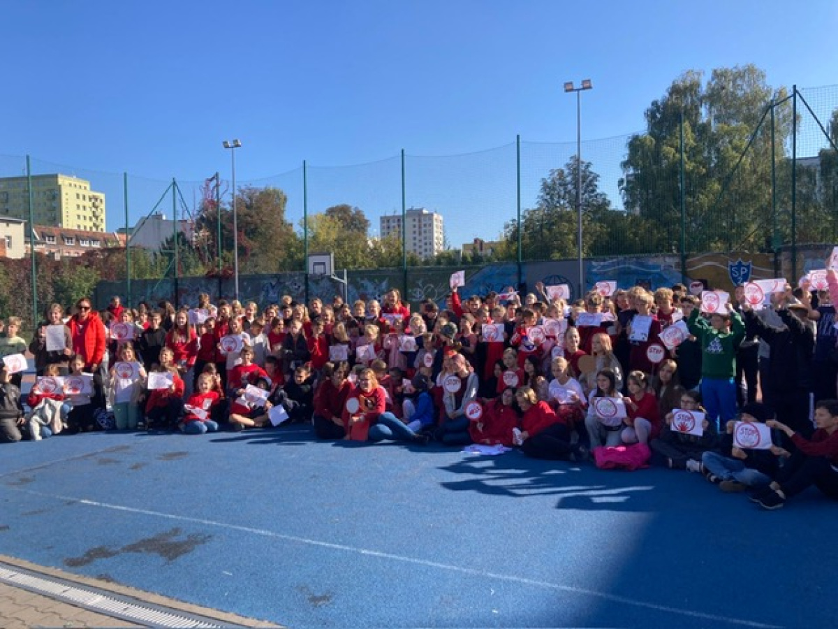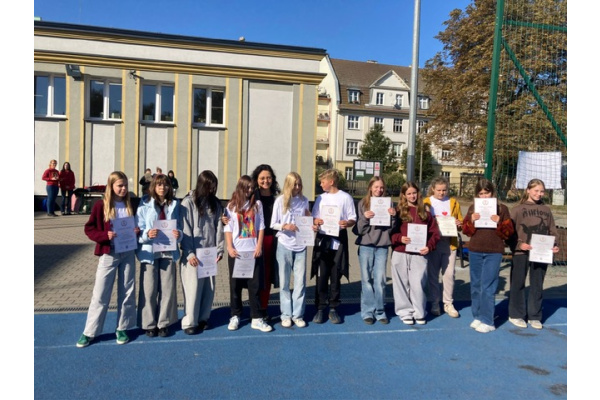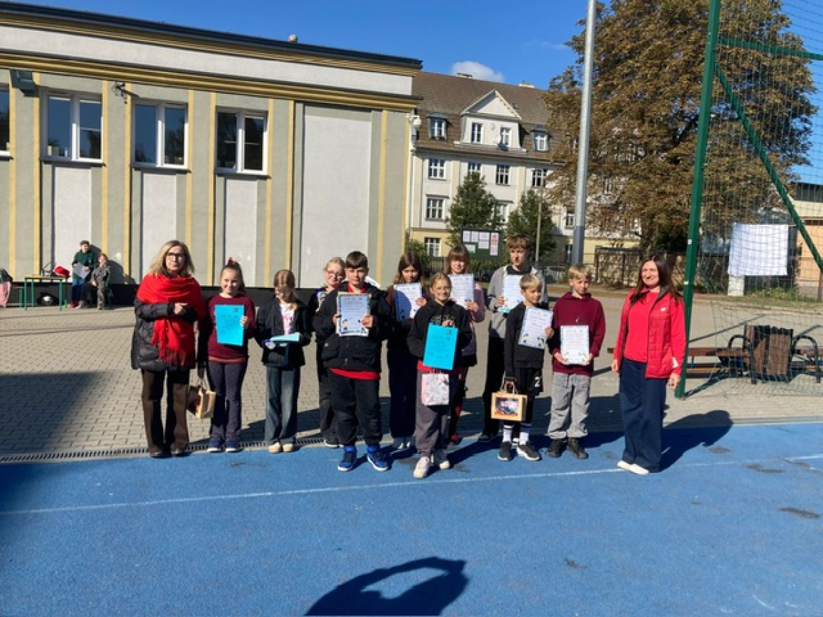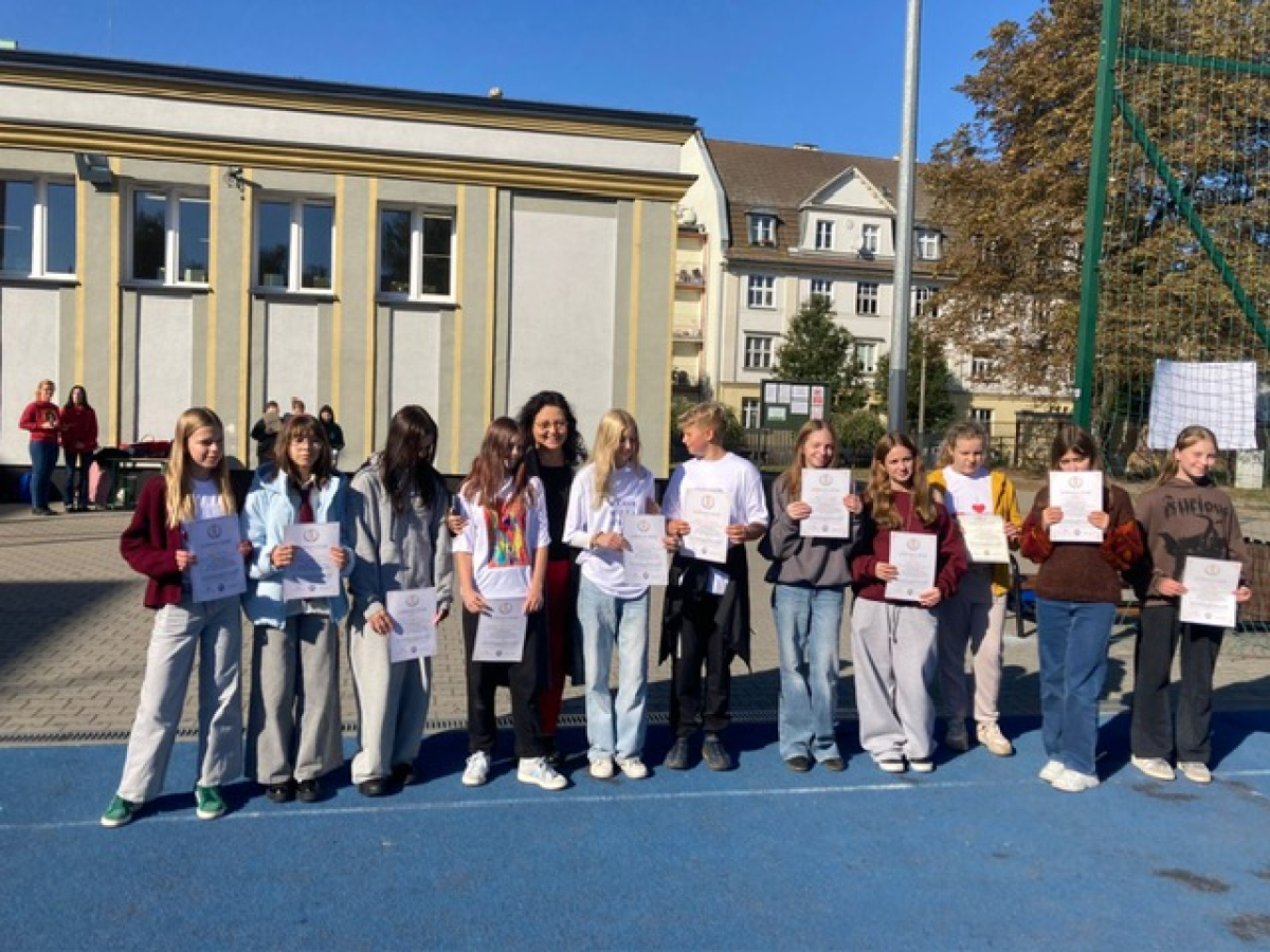 W piątek zakończyliśmy Tydzień przeciwdziałania przemocy rówieśniczej. Podczas finału gościliśmy panią wizytator Joannę Jendykiewicz - Owczarek . Na boisku szkolnym podsumowaliśmy tygodniowe działania; zaprezentowano konkursowe wiersze- rymowanki, za które uczniowie zostali nagrodzeni. Przedstawieni zostali mediatorzy szkolni, którzy otrzymali zaświadczenia. Uczniowie tańczyli zumbę. Na koniec przeprowadzony został turniej sportowy pod hasłem "Fair play".