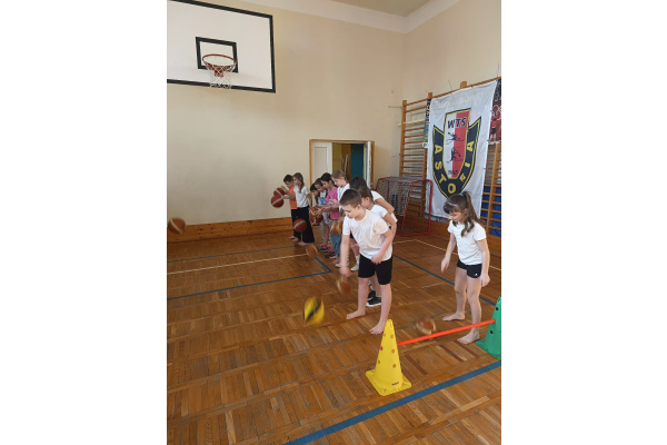 Jednym z najważniejszych składników sprawności motorycznej człowieka jest koordynacja ruchowa. Odgrywa ona bardzo duże znaczenie w sporcie, ale także w życiu codziennym. Koordynacyjne zdolności motoryczne wyznaczają bowiem w znacznym stopniu efektywność działań i zachowań motorycznych młodego człowieka. Uczniowie klasy 3b coraz sprawniej radzą sobie z niełatwym utrzymaniem piłki podczas kozłowania. Nasz cel: przygotować formę na nadchodzącą wielkimi krokami wiosnę!