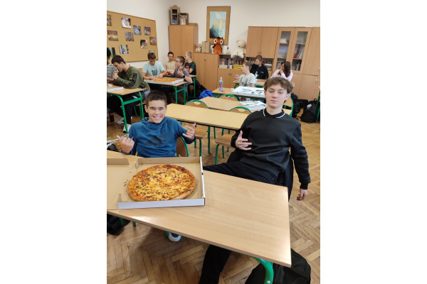 Sędzia Soplica pewnie by nie był zadowolony i wygłosiłby mowę na temat nowoczesnych zwyczajów. Klasa 8a przy pizzy poznawała dzieje Jacka Soplicy. Było pysznie!