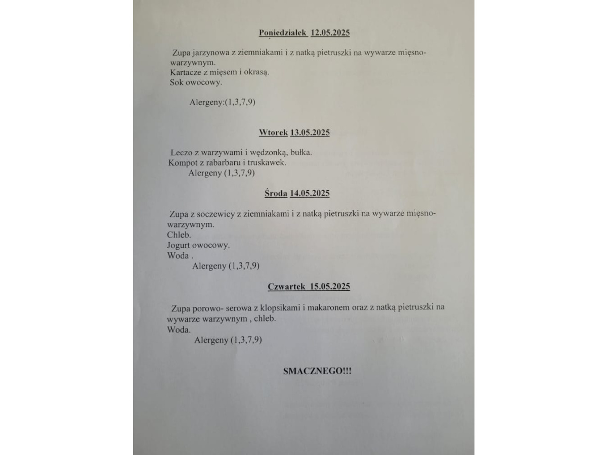 Jadłospis 12.05-15.05