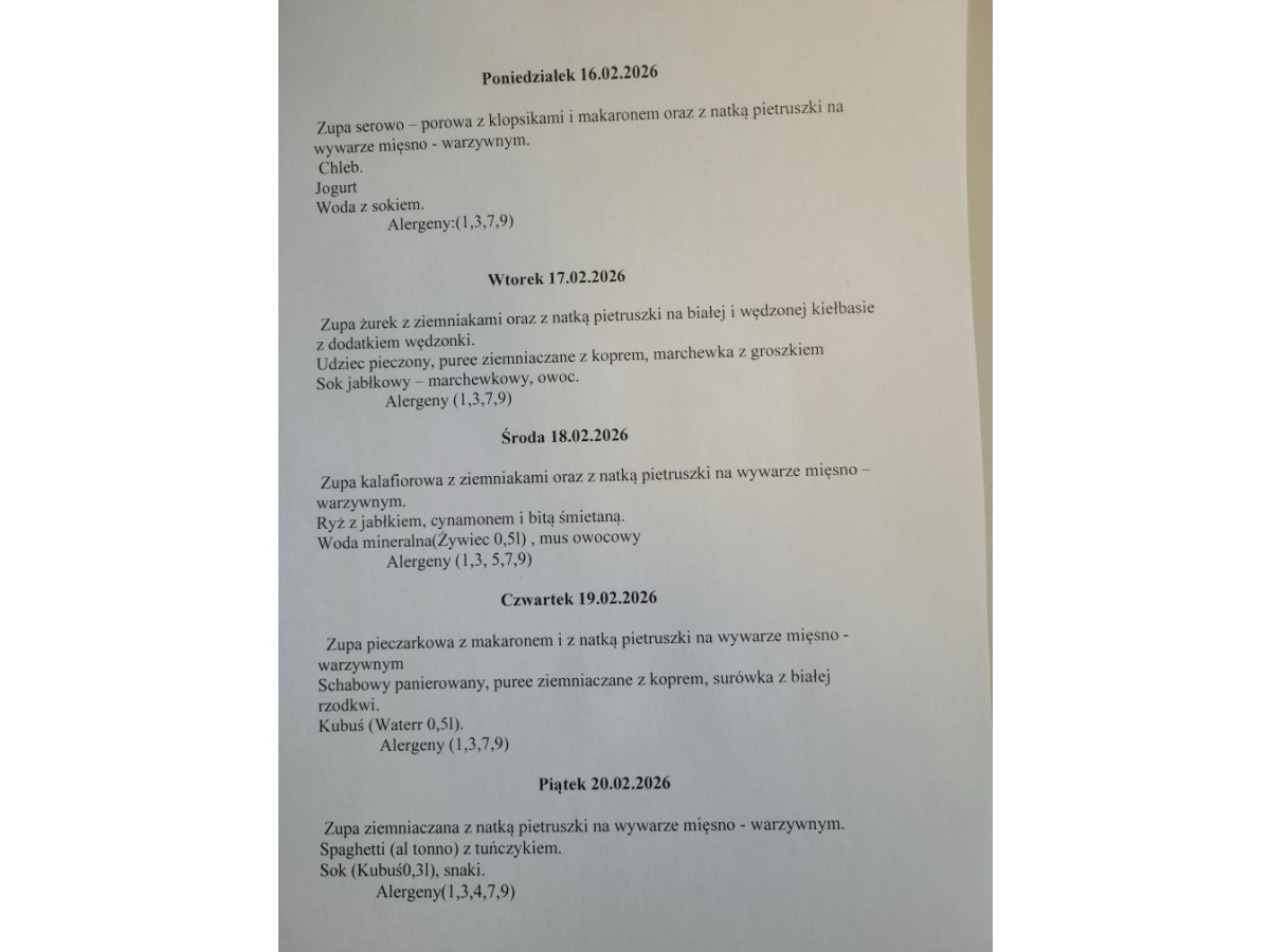 Jadłospis 16.02-20.02