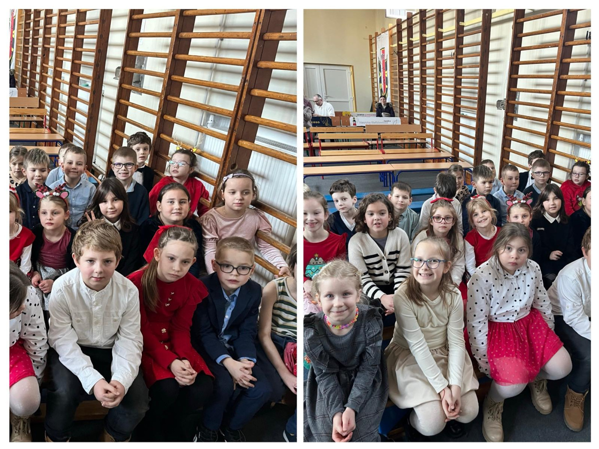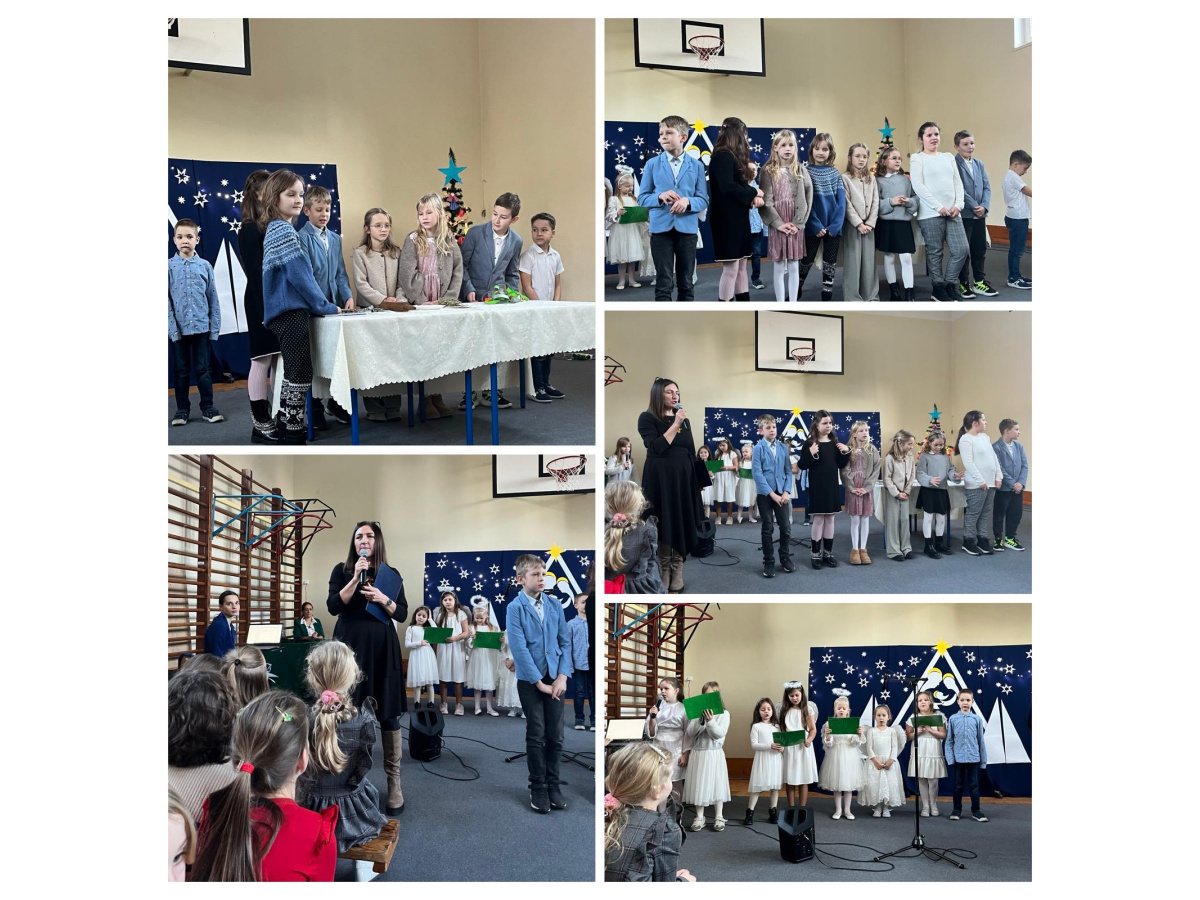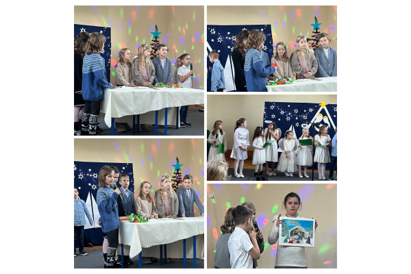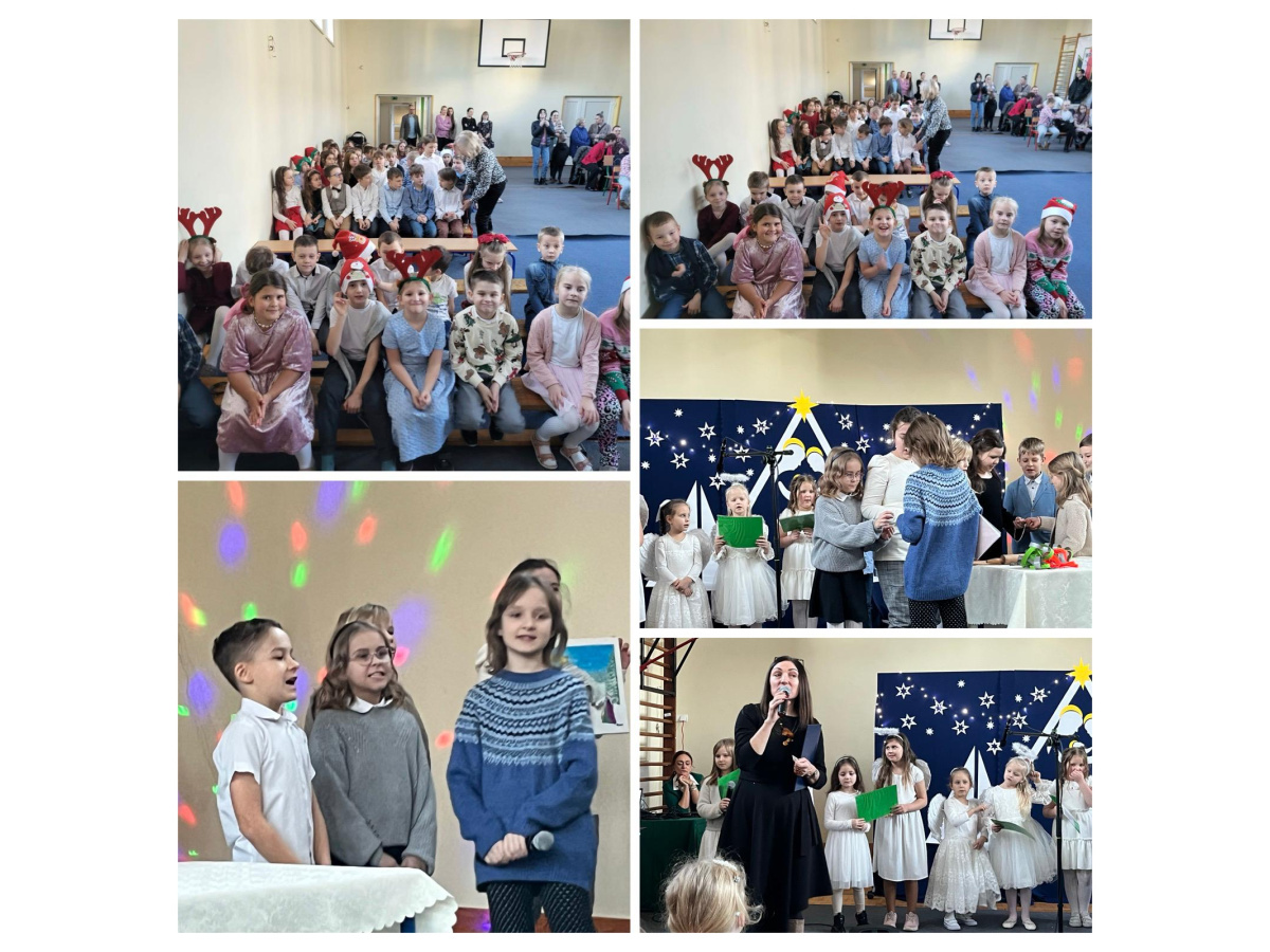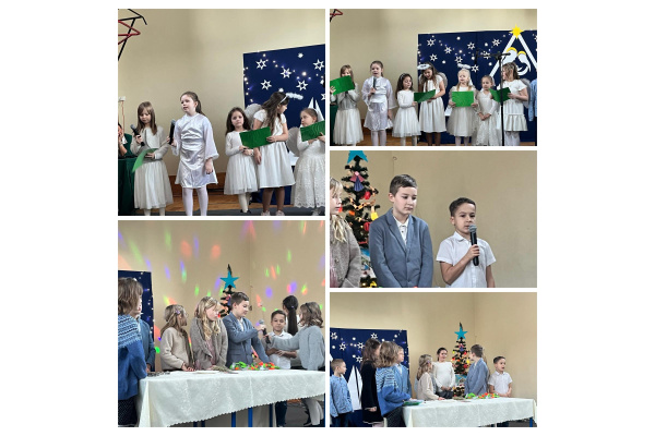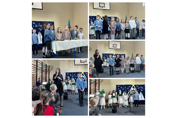 Wspólne spotkanie uczniów klas 1-3 podczas szkolnych Jasełek.