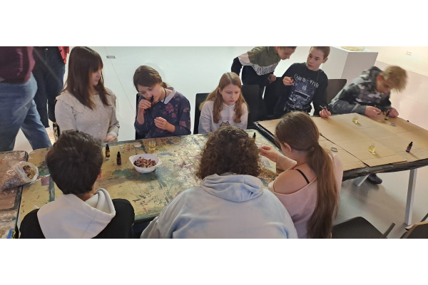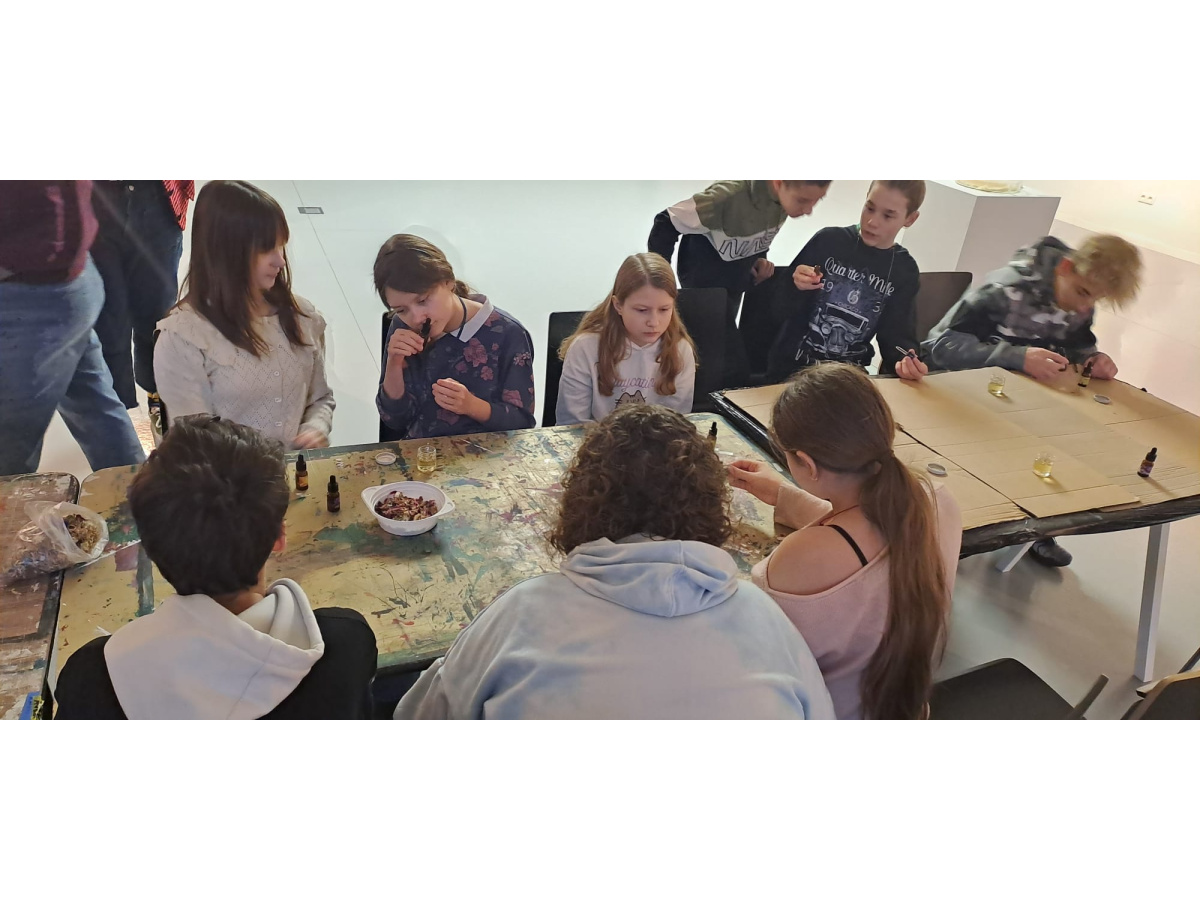 Uczniowie klasy 7b wzięli udział w warsztatach zorganizowanych w Bydgoskiej Galerii Miejskiej. Podczas zajęć uczniowie w zespołach tworzyli i nazywali władne kompozycje zapachowe. Zwiedzili również wystawę prac artystów, którzy obecnie eksponują swoje dzieła.