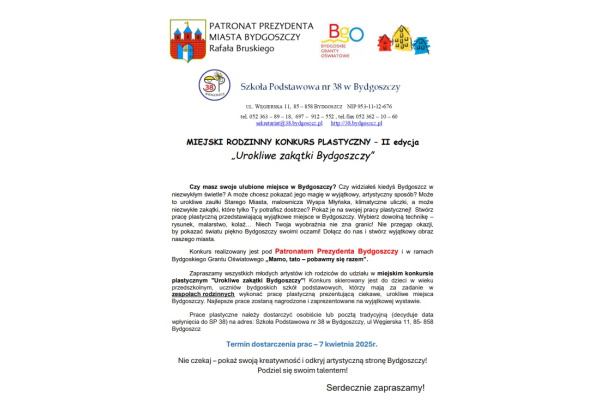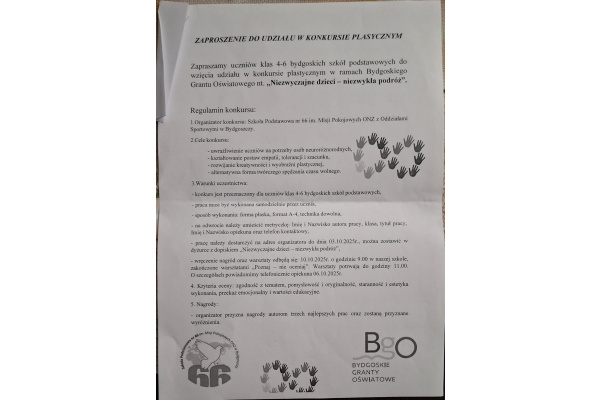 Dzieci chętne do wzięcia udziału w konkursie proszę o dostarczenie prac do 30 września 2025 r. do pani Kariny Hoffmann do pokoju nauczycielskiego naszej szkoły.