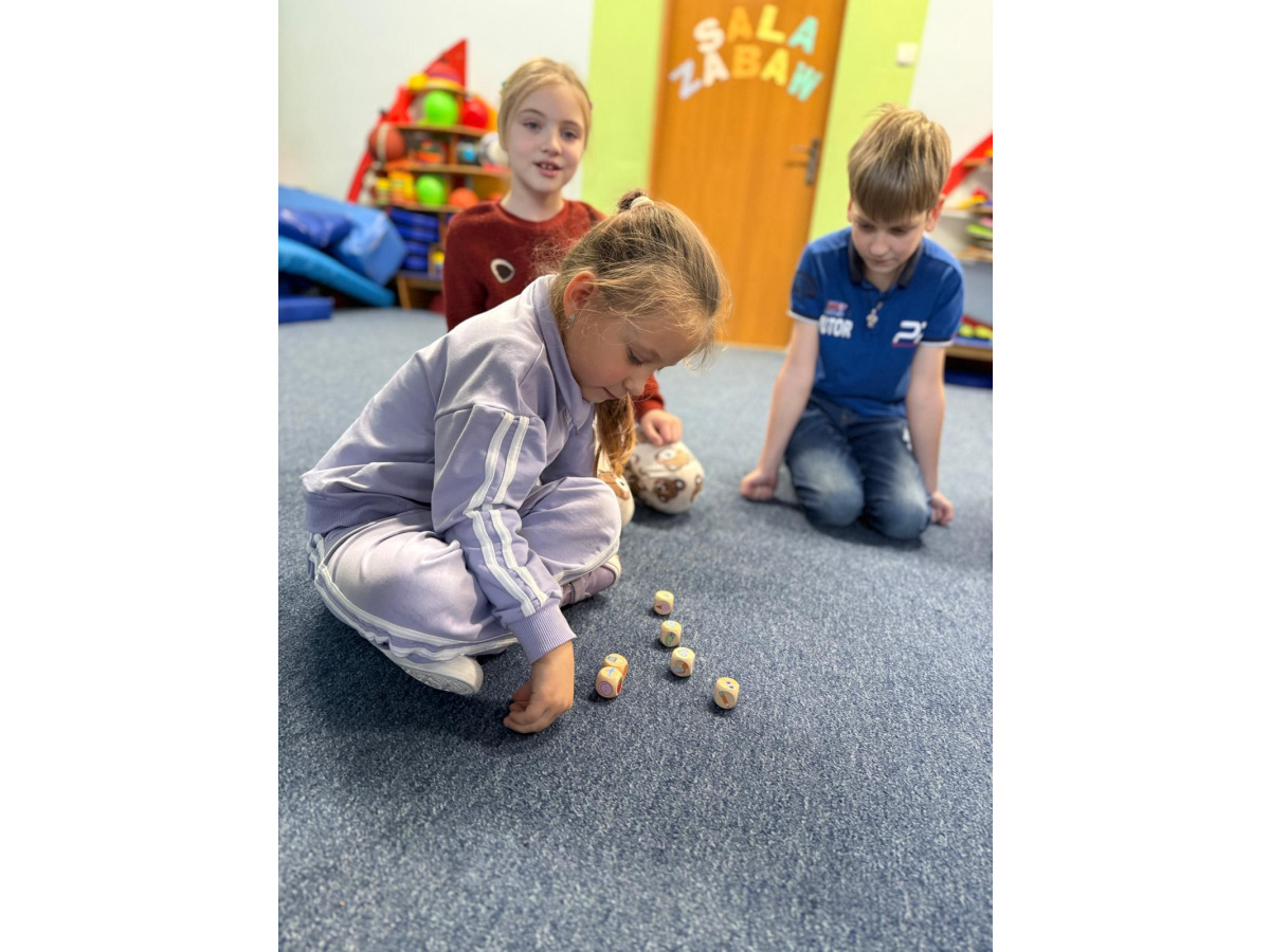 Kości zostały rzucone. Nasze świetliczaki rzucali kośćmi kilka razy. Wylosowane obrazki stanowiły bazę opowieści, którą układali nasi uczniowie do ich historii. Te niepozorne kości z ilustracjami kryły w sobie ogromny potencjał edukacyjny i terapeutyczny, wspomagając rozwój myślenia, mowy, empatii oraz wielu innych kluczowych umiejętności przy czym świetnie się razem bawili.