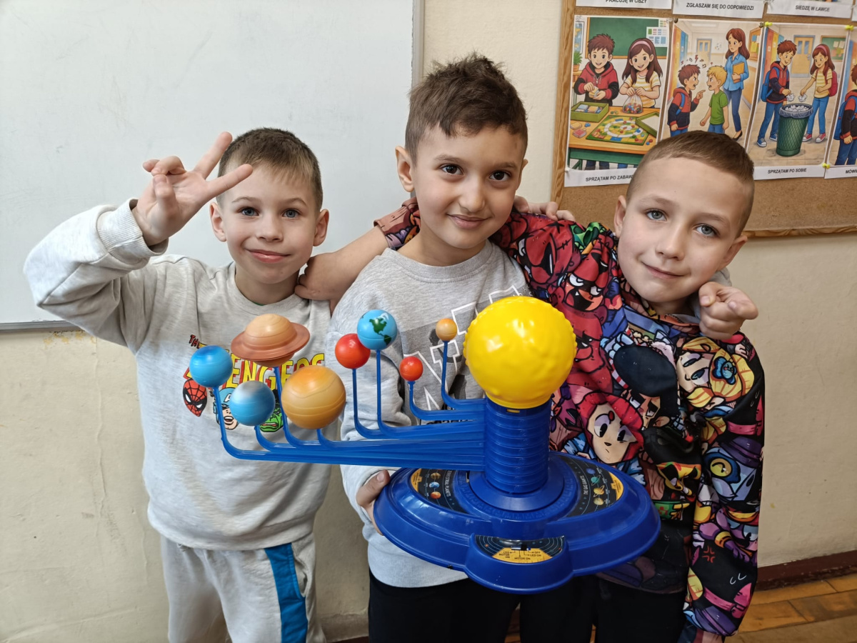 Znamy już wszystkie planety Układu Słonecznego. Wiemy, która jest największa, która ma pierścienie, kto jest sąsiadem Ziemi. Pamiętamy też, że Słońce jest gwiazdą. Nasz kolega Jaś zaprezentował nawet model Układu Słonecznego, w którym planety poruszają się po orbitach. Dzięki temu jeszcze lepiej mogliśmy to sobie wyobrazić. Kosmos jest taki ciekawy!