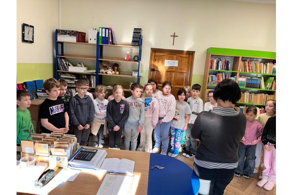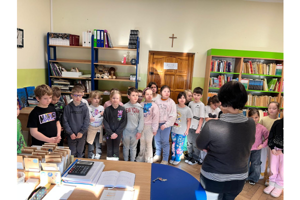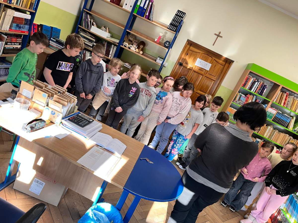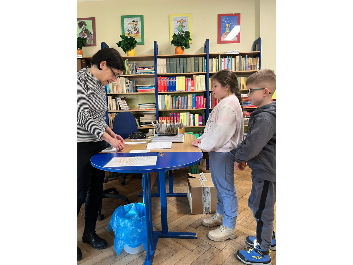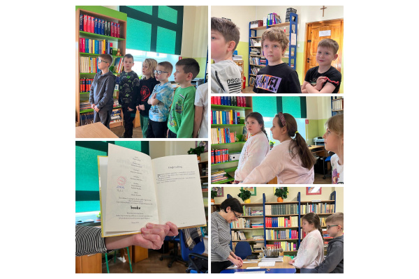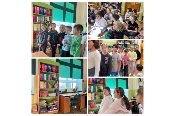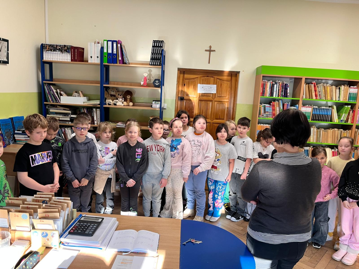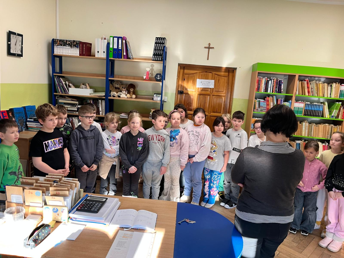 Klasa 1 b odwiedziła szkolną bibliotekę, gdzie pani Hania – bibliotekarka – zapoznała dzieci z zasobami biblioteki oraz zasadami wypożyczania książek. Uczniowie dowiedzieli się, jak korzystać z księgozbioru i czytelni, a także otrzymali swoje karty biblioteczne. Od tej pory dzieci mogą wypożyczać lektury i doskonalić umiejętność czytania. Wizyta bardzo podobała się uczniom, którzy z radością zapowiedzieli, że będą często odwiedzać naszą czytelnię.