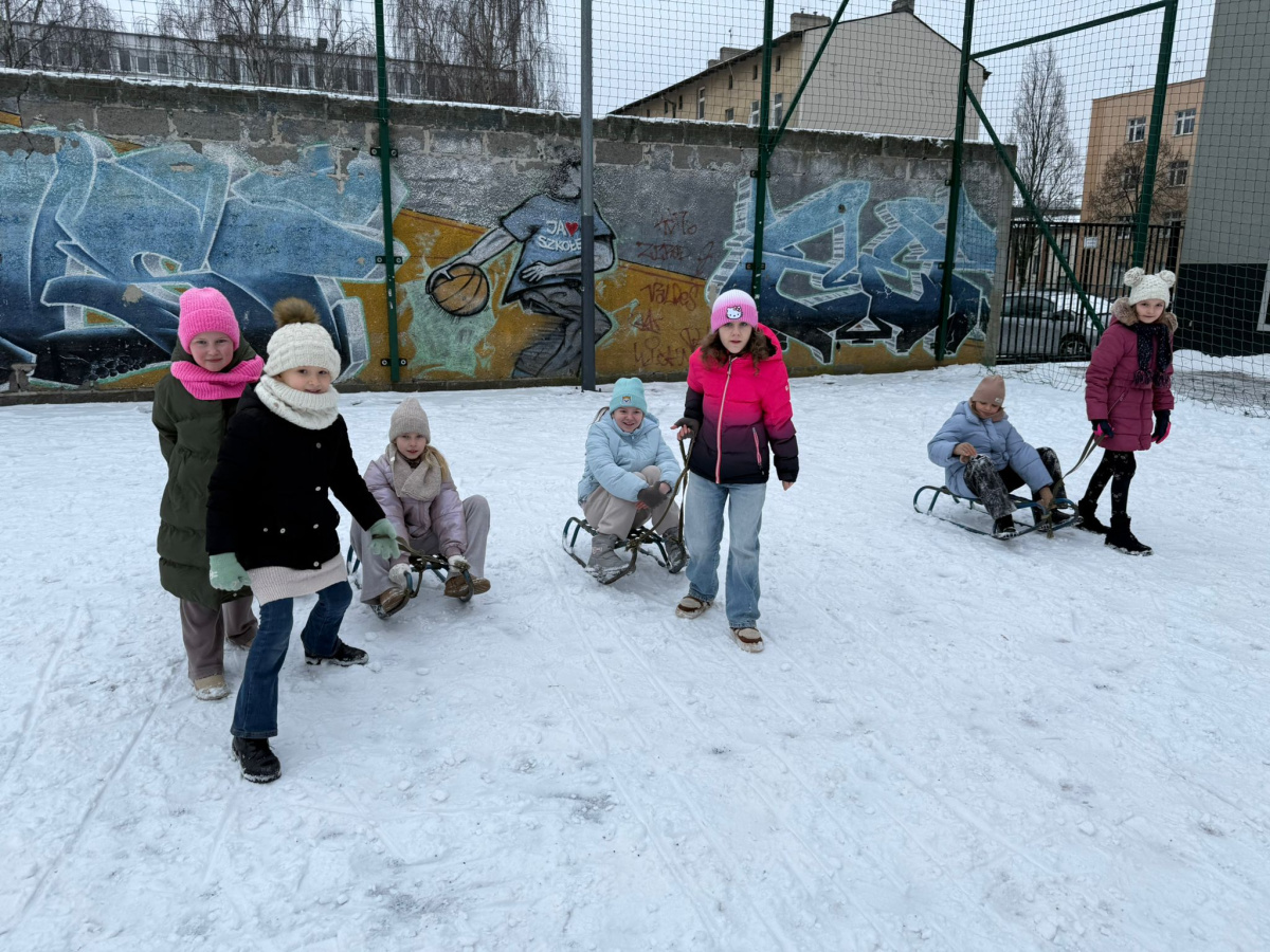 Zima, mróz i „biały puch” nie opuszczają nas, więc wykorzystujemy lekcje WF na świeżym powietrzu. Zima jest super i lubi dzieci, a dzieci lubią zimę. Saneczkowe wyścigi, konkurencja o najwiekszą kulę, rzuty śnieżkami do celu i wreszcie robienie „aniołków” na śniegu to zabawy, które dostarczyły wszystkim dużo uśmiechu, radości oraz rozwijają kreatywność i pomysłowość :)
