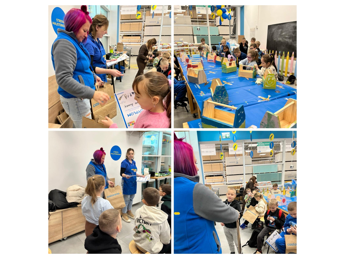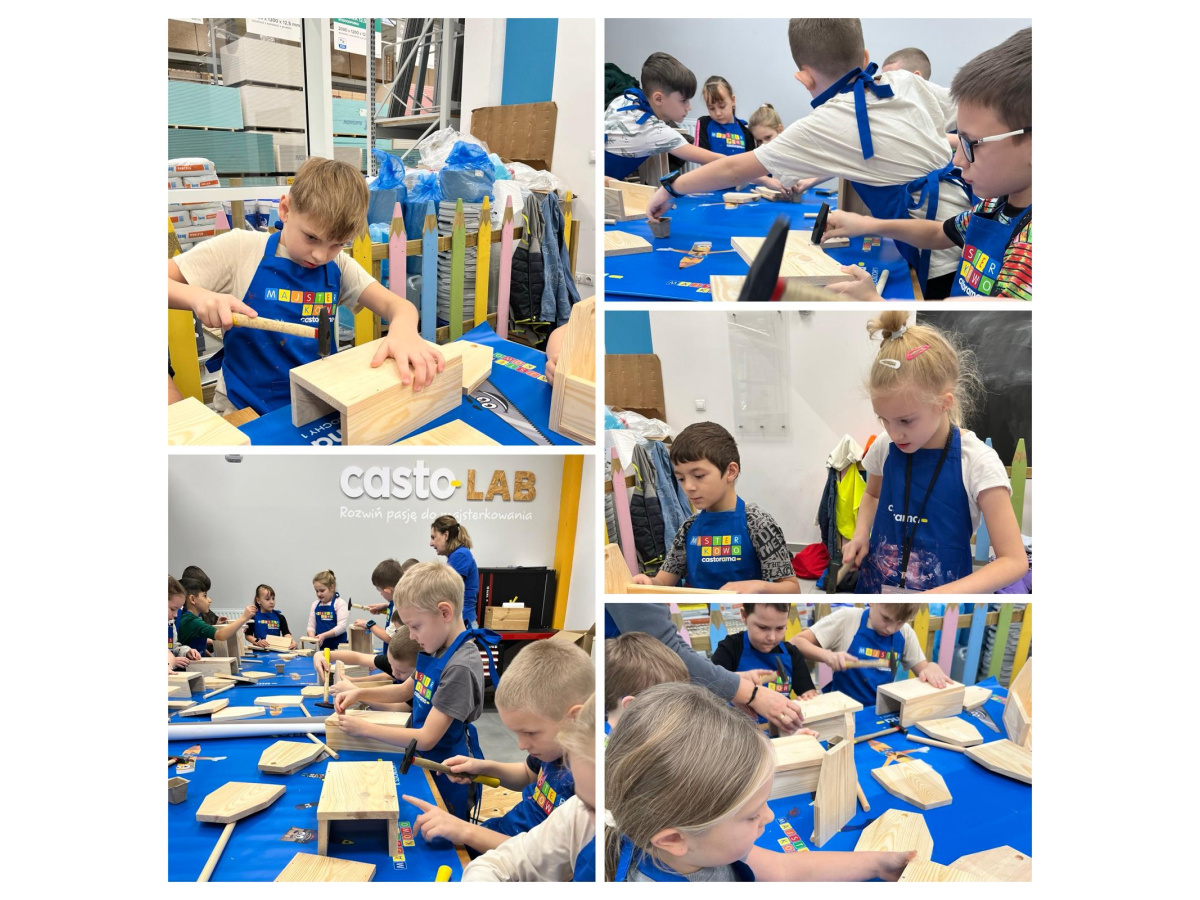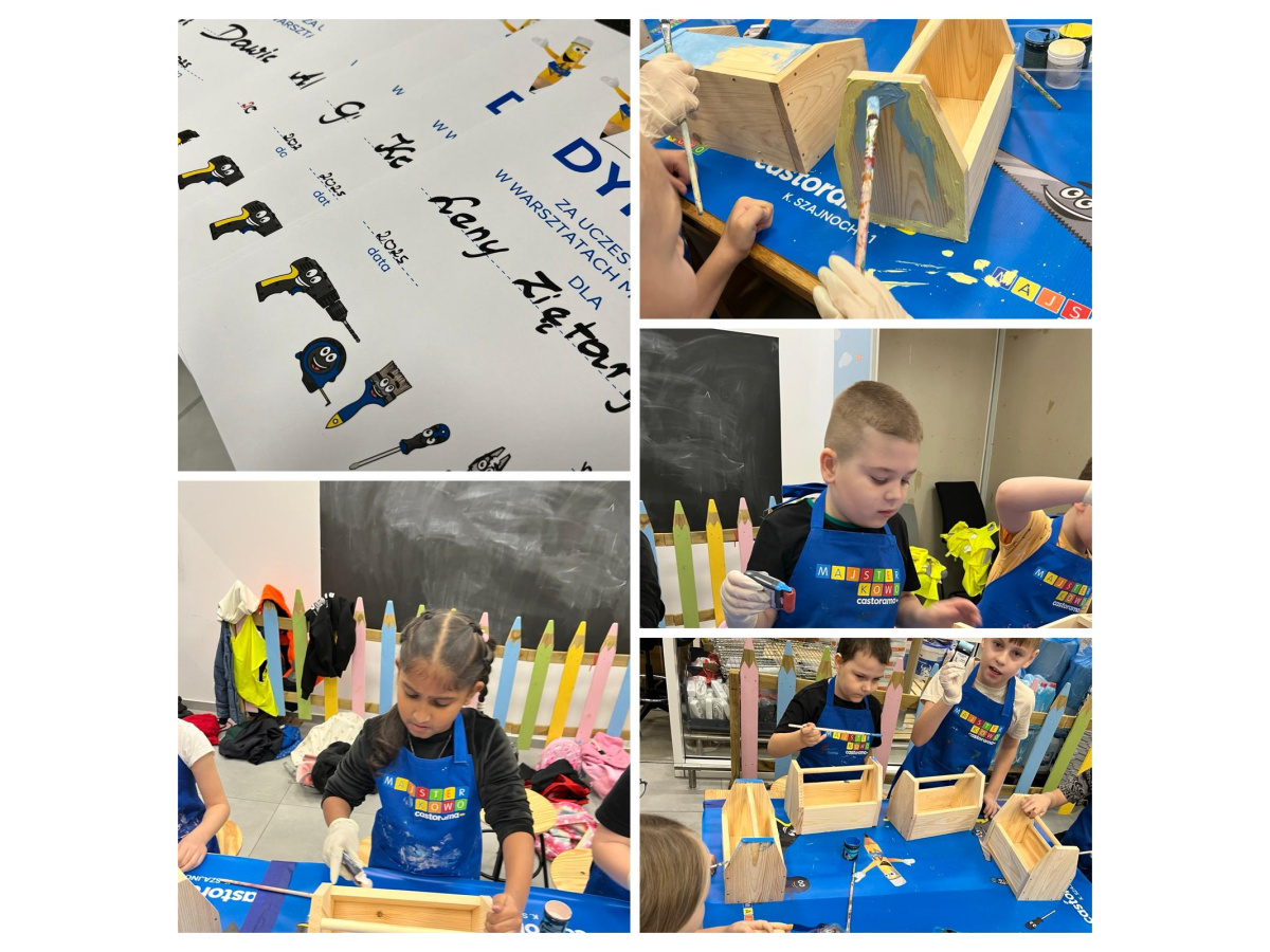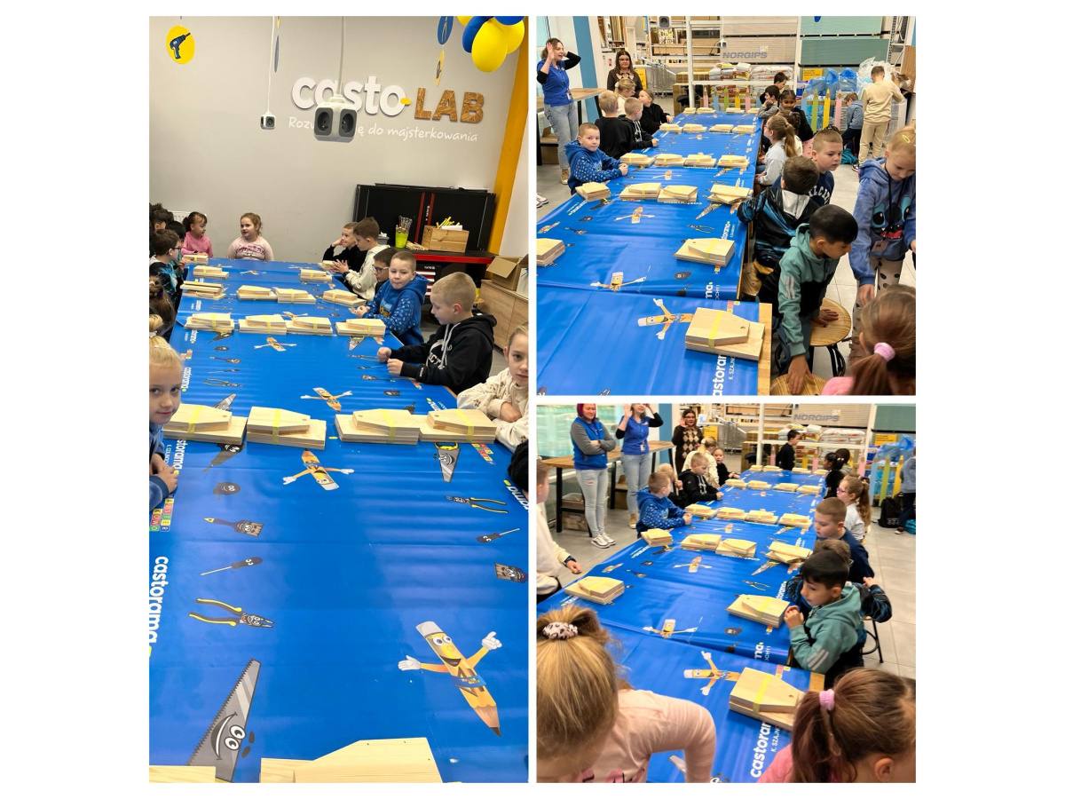 Majsterkowo to zajęcia organizowane przez Castoramę, podczas których dzieci w praktyczny i bezpieczny sposób uczą się korzystania z narzędzi. Pod okiem wykwalifikowanych prowadzących tworzą własne, proste projekty, np. karmniki dla ptaków, skrzynki czy ozdoby, korzystając z narzędzi i materiałów przygotowanych przez sklep. Uczniowie klasy 2a wykonali piękne skrzynki. Celem warsztatów jest rozwijanie kreatywności, zdolności manualnych i pracy zespołowej u dzieci. To również forma edukacji prospołecznej i prośrodowiskowej - dzieci uczą się, że majsterkowanie to nie tylko zabawa, lecz także sposób na twórcze i odpowiedzialne podejście do otaczającego świata. Zajęcia uczniom podobały się bardzo. Dziękujemy Castorama!