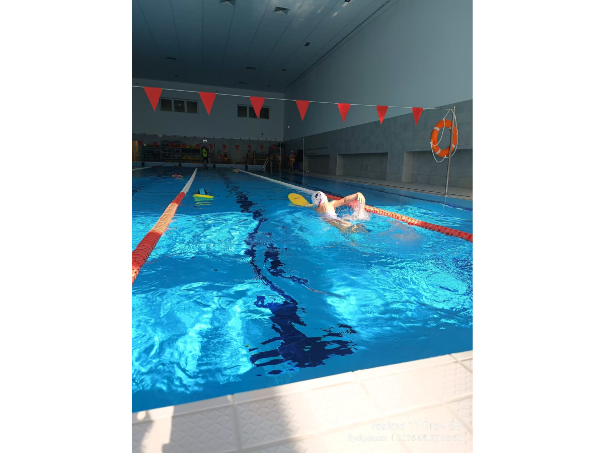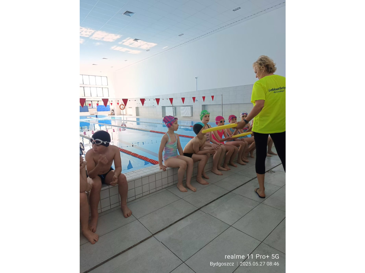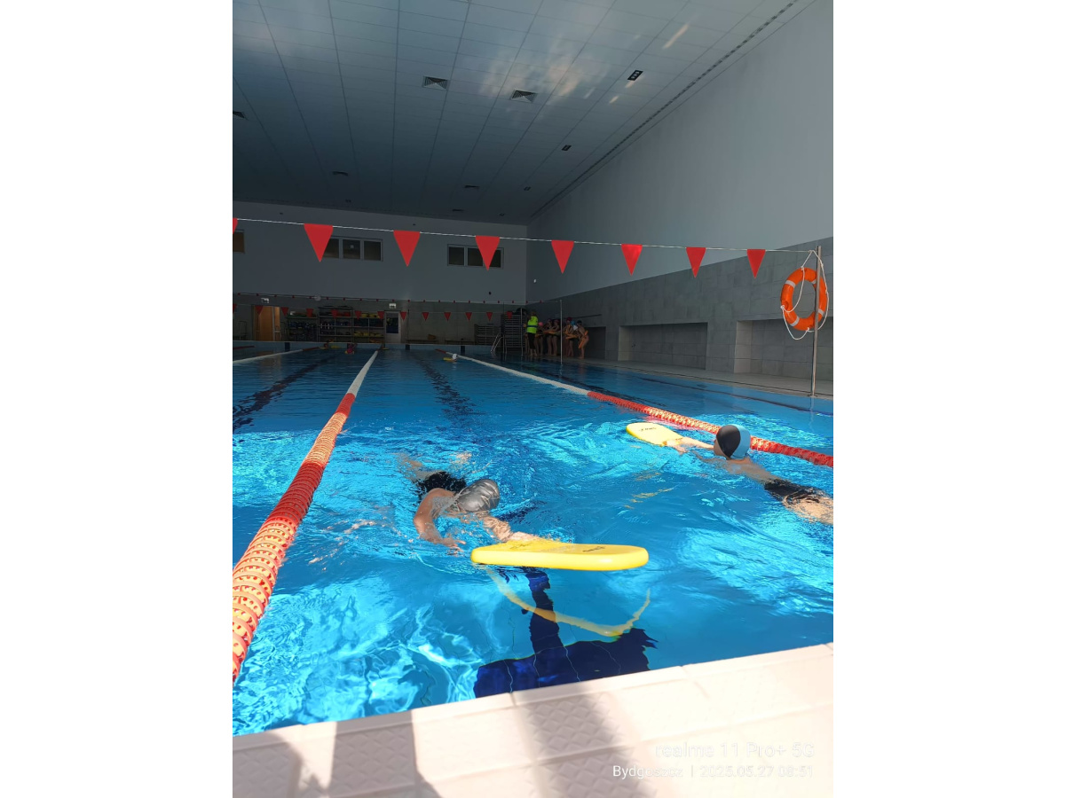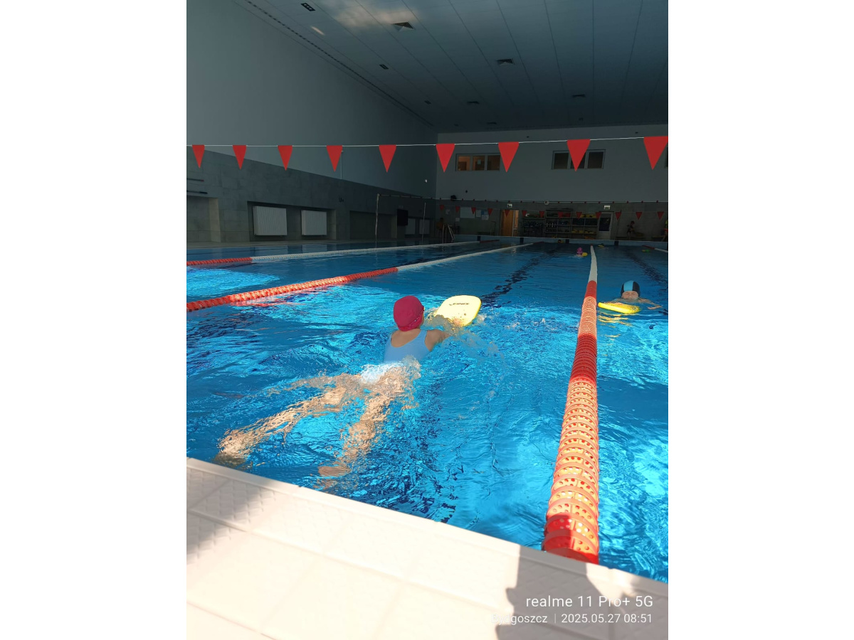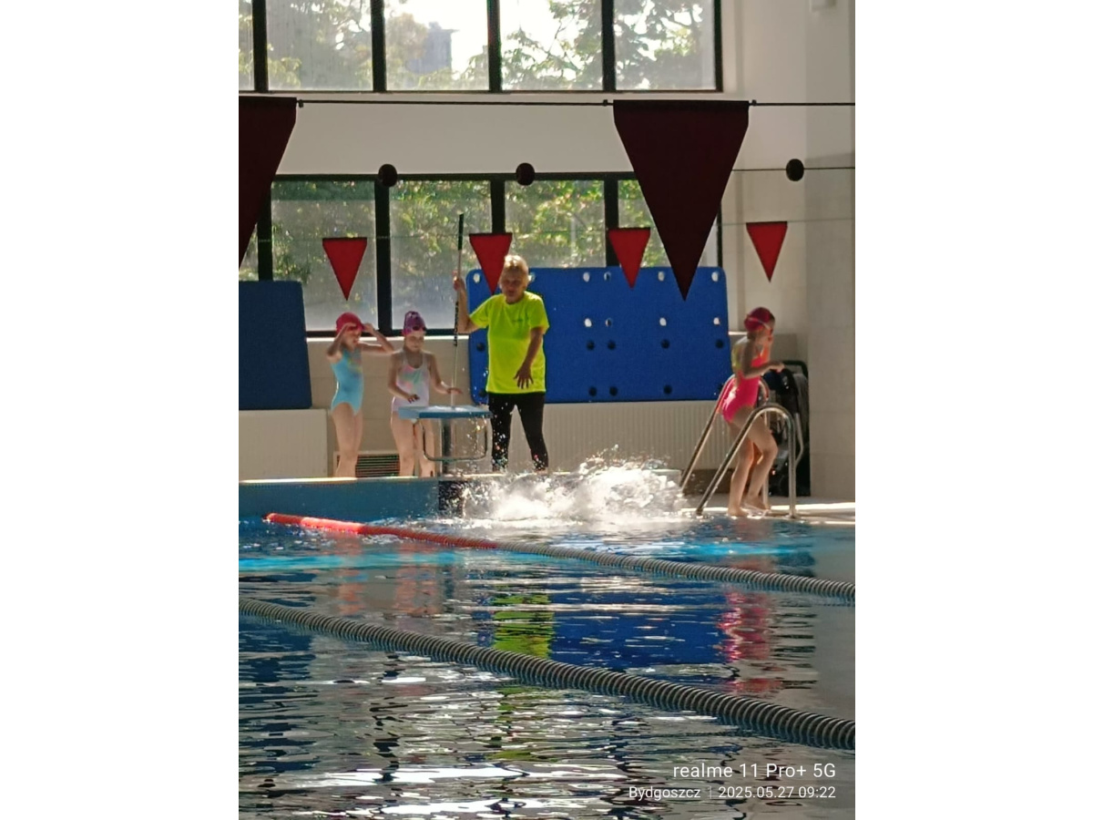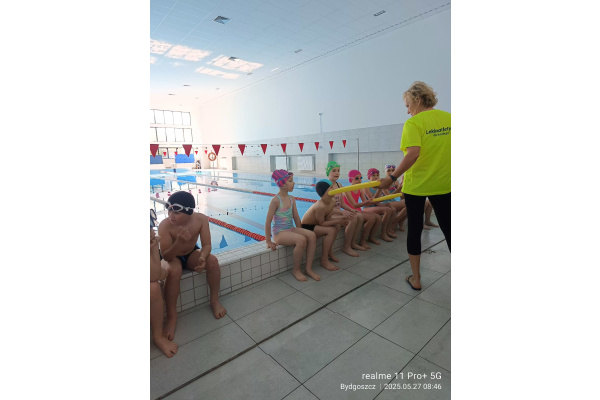 Uczniowie klasy 3b na ostatniej lekcji wychowania fizycznego doskonalili umiejętności pływackie.