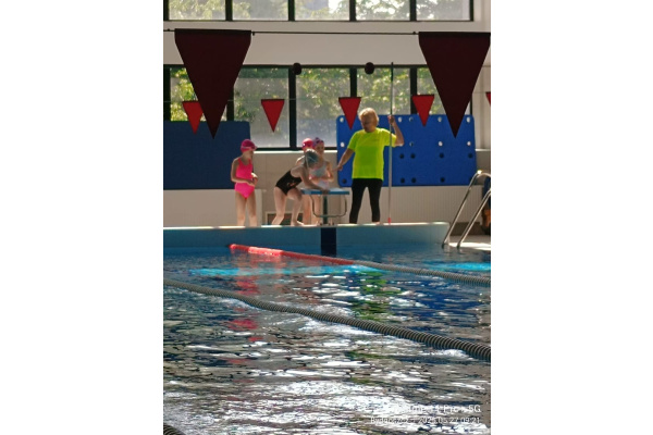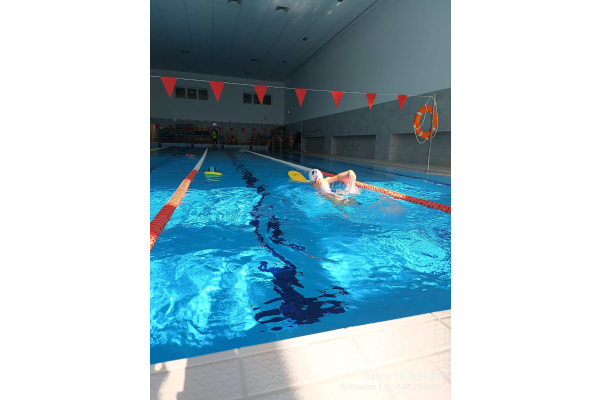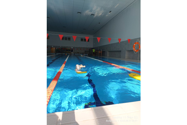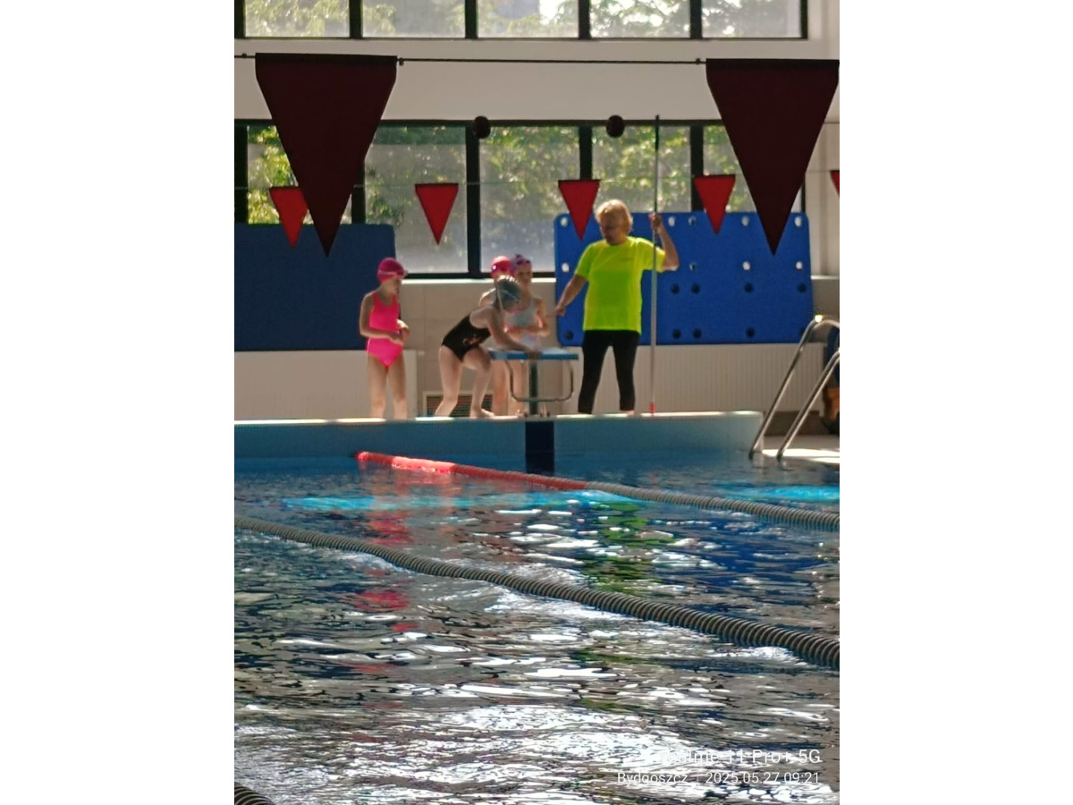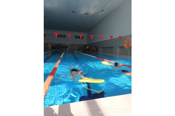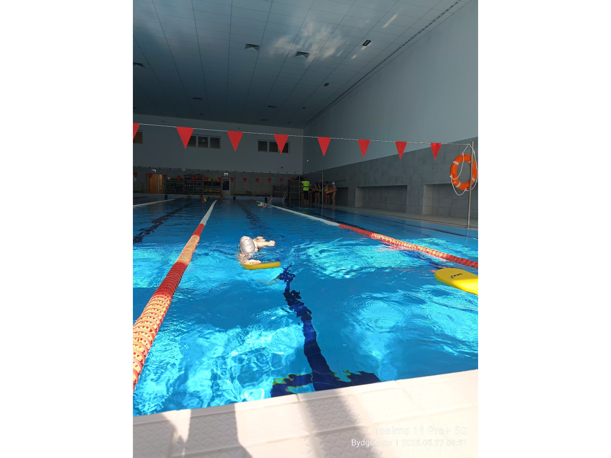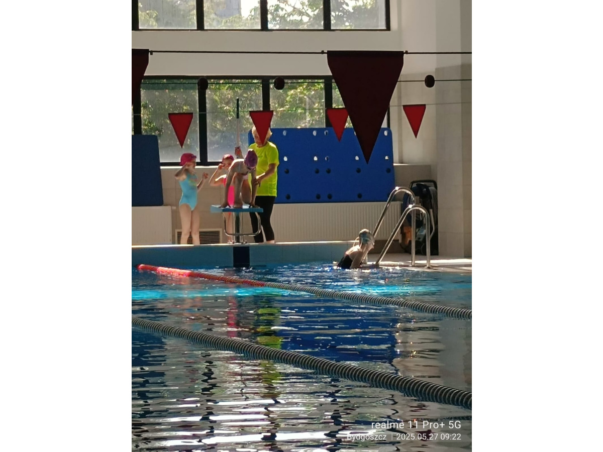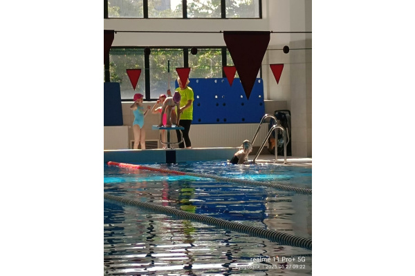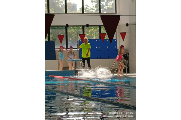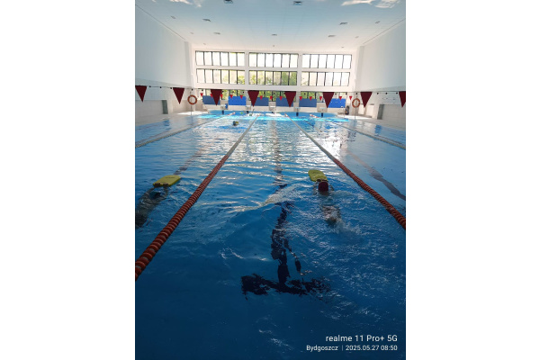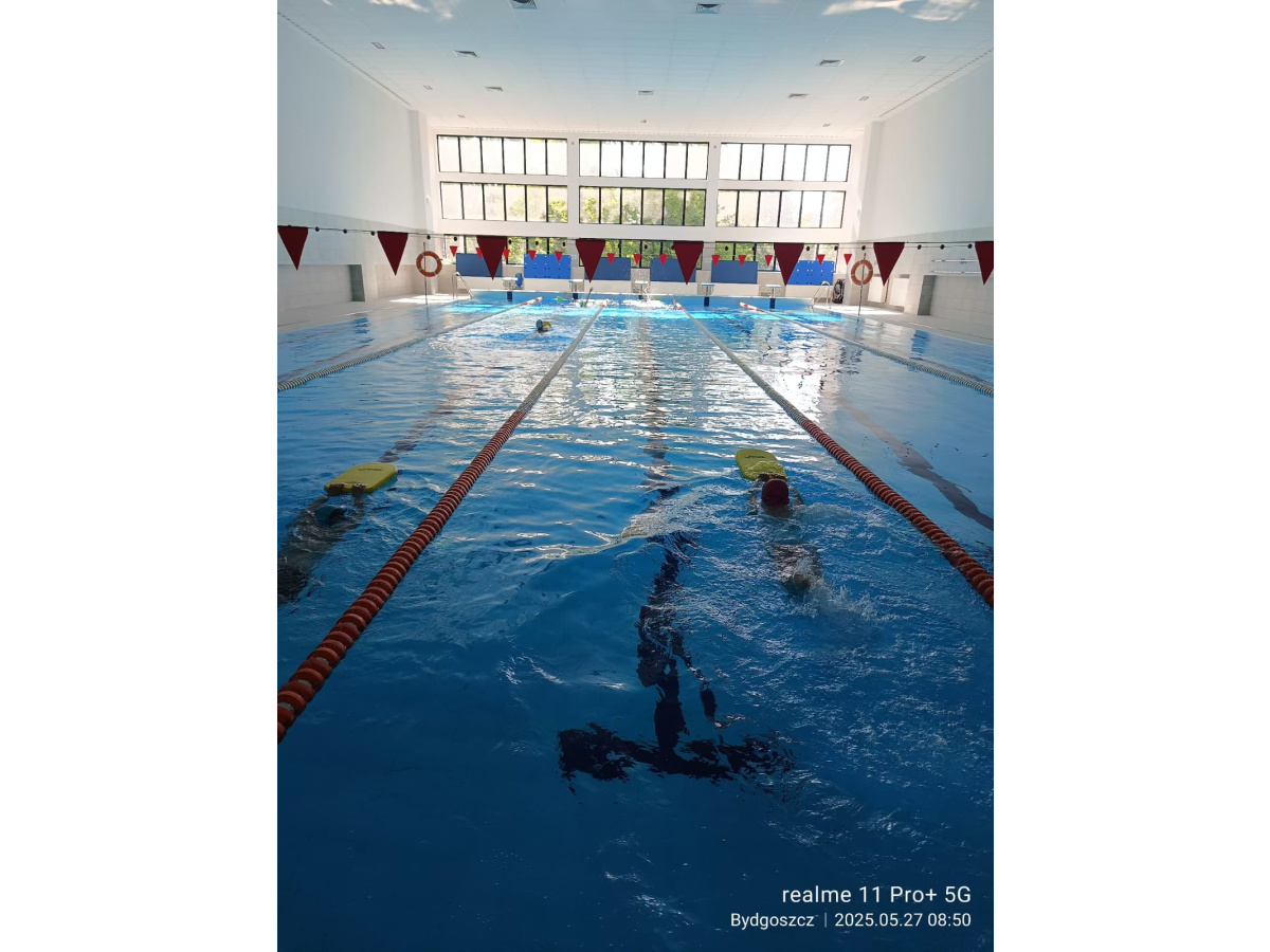 Uczniowie klasy 3b na ostatniej lekcji wychowania fizycznego doskonalili umiejętności pływackie.