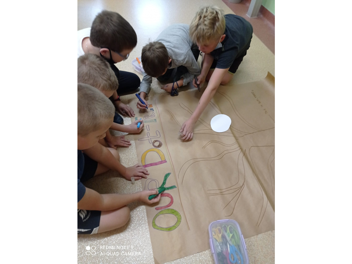Uczniowie klasy 3c wspólnie tworzyli „kropki”. Pomysłów było wiele. Niektóre z nich utrwaliliśmy na zdjęciach. W tym dniu dzieci kolorowały sowy w kropki, które ozdobiły naszą salę. Na języku polskim powstały postaci z kropek. Był Pan Kropka, Bibi, złota rybka Darwin, królik, piesek i wiele innych. Stali się oni bohaterami opowiadań. W innych klasach dzieci tworzyły wspólne kropkowe drzewo, malowały buzię w kropki i "kropkowały" co się dało. Będziemy pamiętać, żeby wyzwalać kreatywność nie tylko w tym dniu, ale przez cały rok!