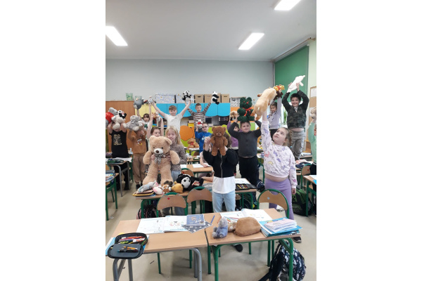 Jak co roku 25 listopada zaprosiliśmy nasze Misie do szkoły. Przyszło ich aż 581! Najwięcej misiów było w klasie 2b (104) i 4b (124). Klasy te zdobyły główną nagrodę oraz tytuł "Misiowej klasy 2025 r". W tym dniu oglądaliśmy misiowe filmy, rozwiązywaliśmy krzyżówki i zadania, układaliśmy puzzle, poznaliśmy historię pluszowego misia w formie komiksu... Nawet tańczyliśmy BEAR DANCE na j. angielskim! Było przytulaśnie i wesoło!