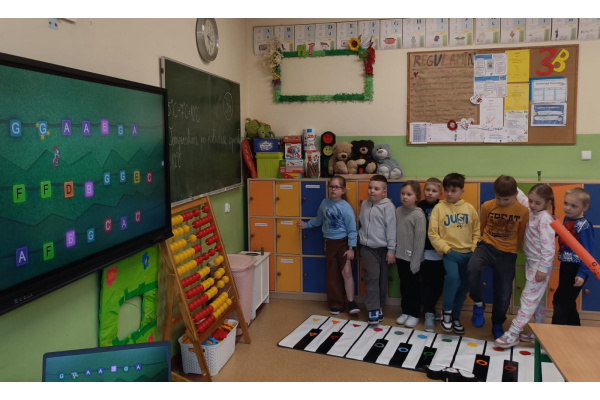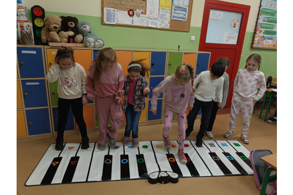 Na muzyce bawiliśmy się dziś dźwiękami. Towarzyszyły nam bum bum rurki i colorpiano. Ćwiczyliśmy rytmy i pilnowanie swojego koloru-dźwięku.