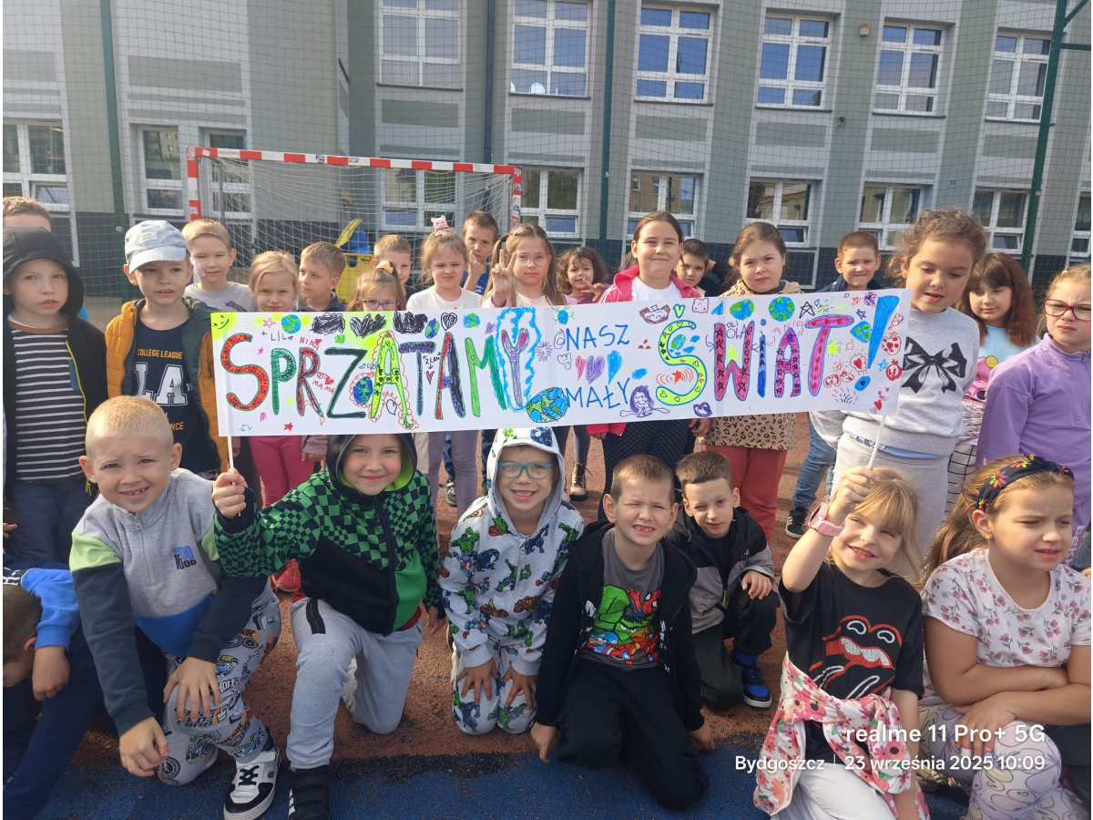 W związku z Ogólnopolską Akcją Sprzątania Świata po raz kolejny uczniowie naszej szkoły aktywnie włączyli się w sprzątanie naszego miasta. Takie akcje uczą młodych ludzi odpowiedzialności i szacunku do przyrody. Uczniowie klas 1a, 1b oraz 1c pokazują, że nawet najmłodsi mogą mieć realny wpływ na poprawę stanu środowiska. Dziękujemy uczniom za zaangażowanie i troskę o naszą wspólną planetę! Od najmłodszych też można się wiele nauczyć. Zaczęliśmy od wspólnego przygotowania plakatu. Ubrani w rękawiczki ochronne i worki na śmieci postanowiliśmy zadbać o naszą szkolną przestrzeń. Niech ta czystość trwa jak najdłużej!