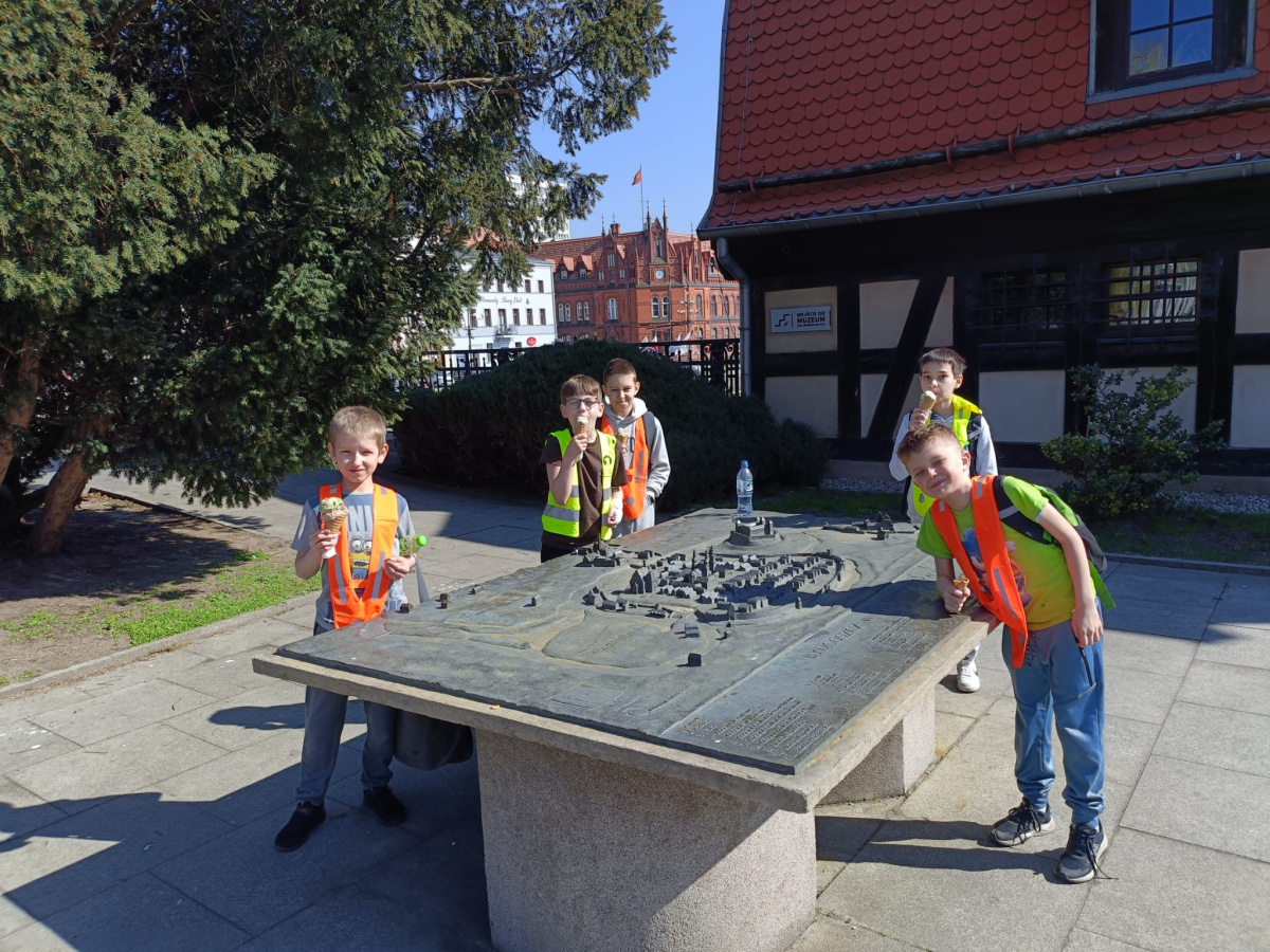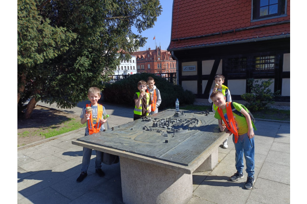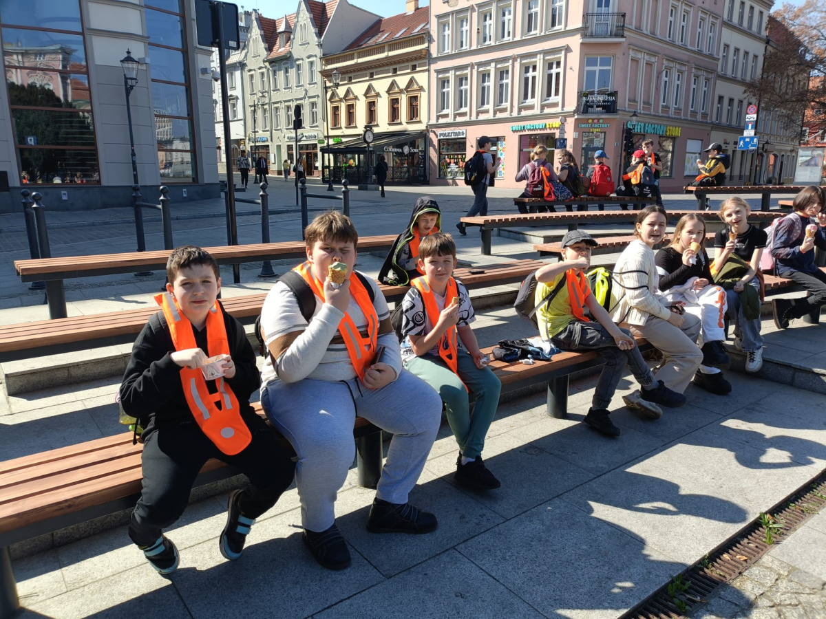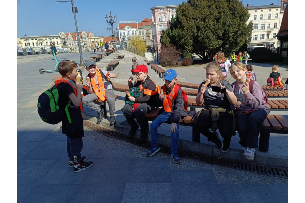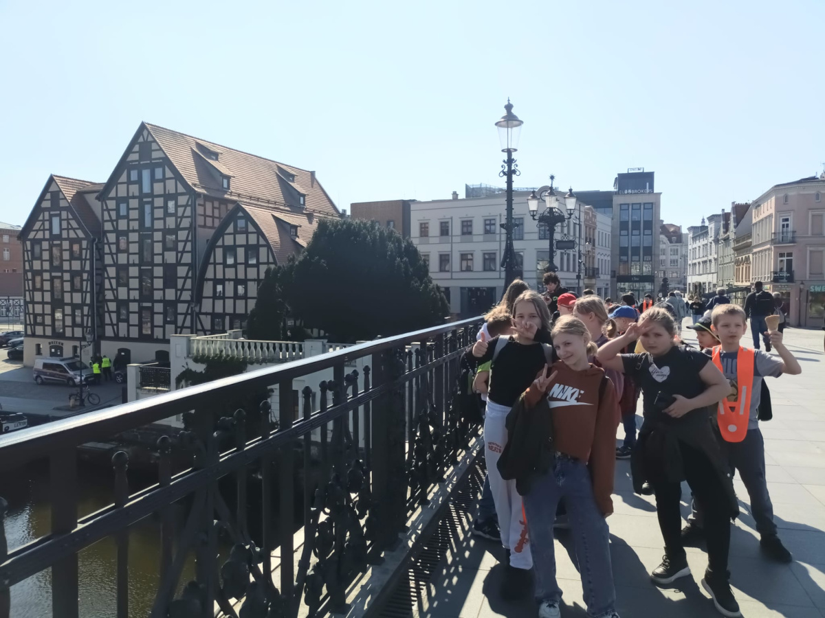 W ramach kolejnego zdania wybraliśmy się na spacer po Bydgoszczy. Odwiedziliśmy kościół farny, gdzie mogliśmy zobaczyć obraz Madonny, którego legendę poznaliśmy. Poszliśmy też pod Pomnik Walki i Męczeństwa, do budynku biblioteki miejskiej oraz do Spichrzów. Dodatkowo odwiedziliśmy Przechodzącego przez rzekę. Na koniec udaliśmy się pod okno Pana Twardowskiego, gdzie o 13.13 udało nam się go zobaczyć i mu pomachać. Teraz zabieramy się za tworzenie planów tej wycieczki, żeby zachęcić innych do lepszego poznania Bydgoszczy.