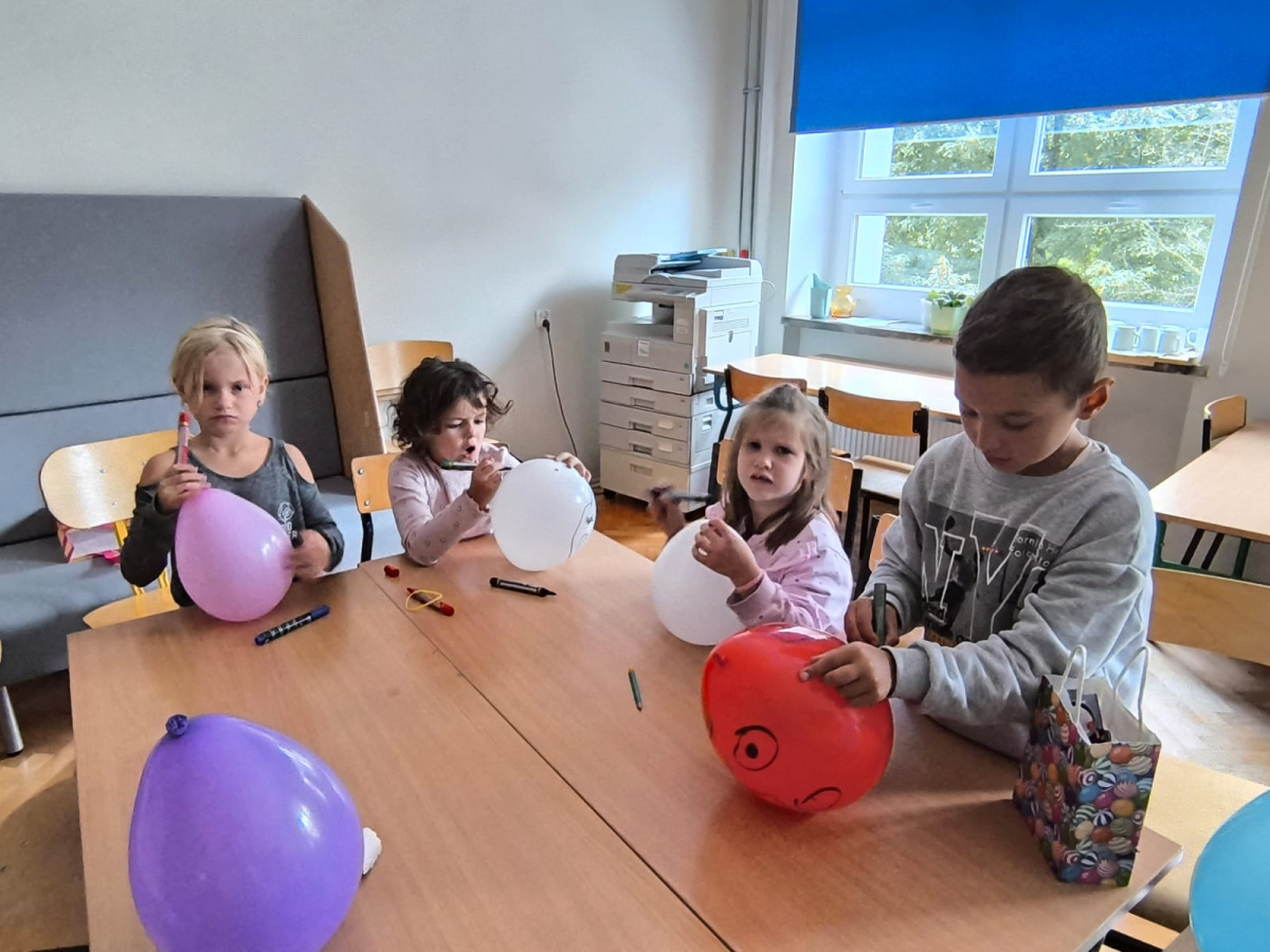 Na zajęciach plastyczno-technicznych "Pracusie" z klas 1a i 1c ochoczo włączyły się w Tydzień Przeciwdziałania Przemocy Rówieśniczej. Uśmiechami i wykonanymi Minkami z papieru i na balonikach pokazywały, że rozmowa z rówieśnikami i pogodna twarz pomagają przy trudnych emocjach.