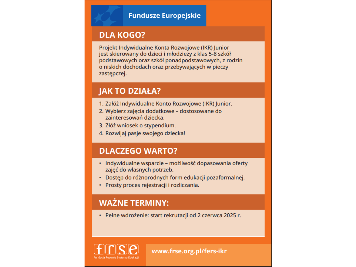 Projekt „Indywidualne Konta Rozwojowe (IKR) Junior”