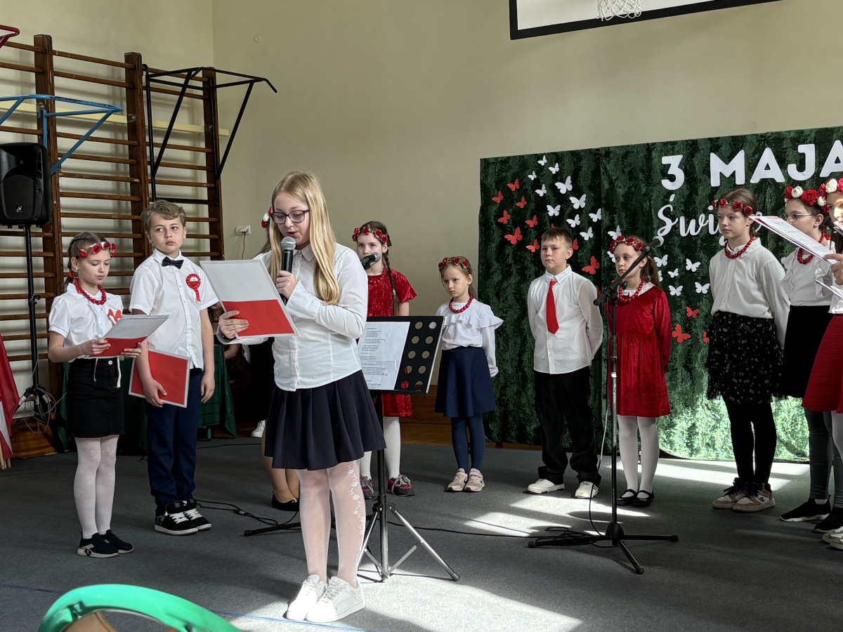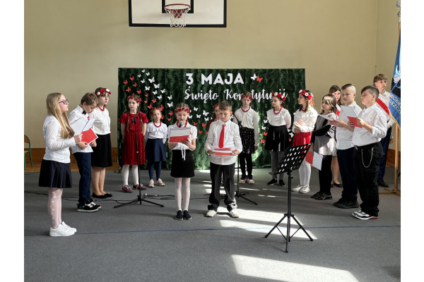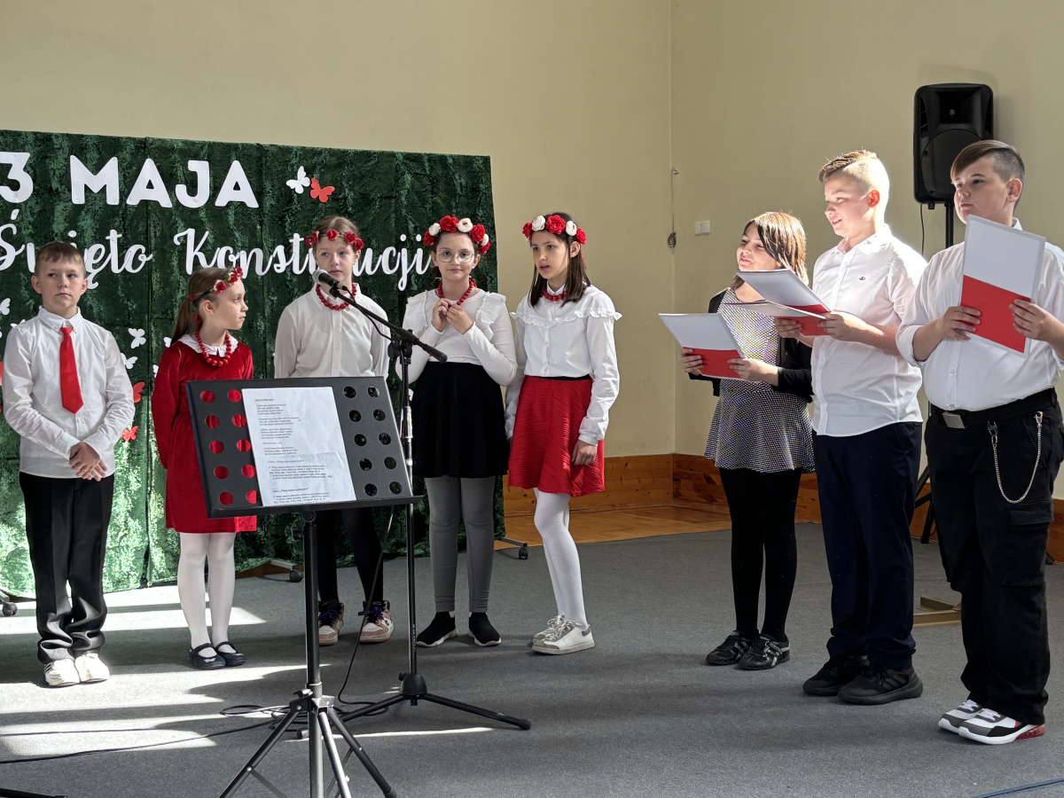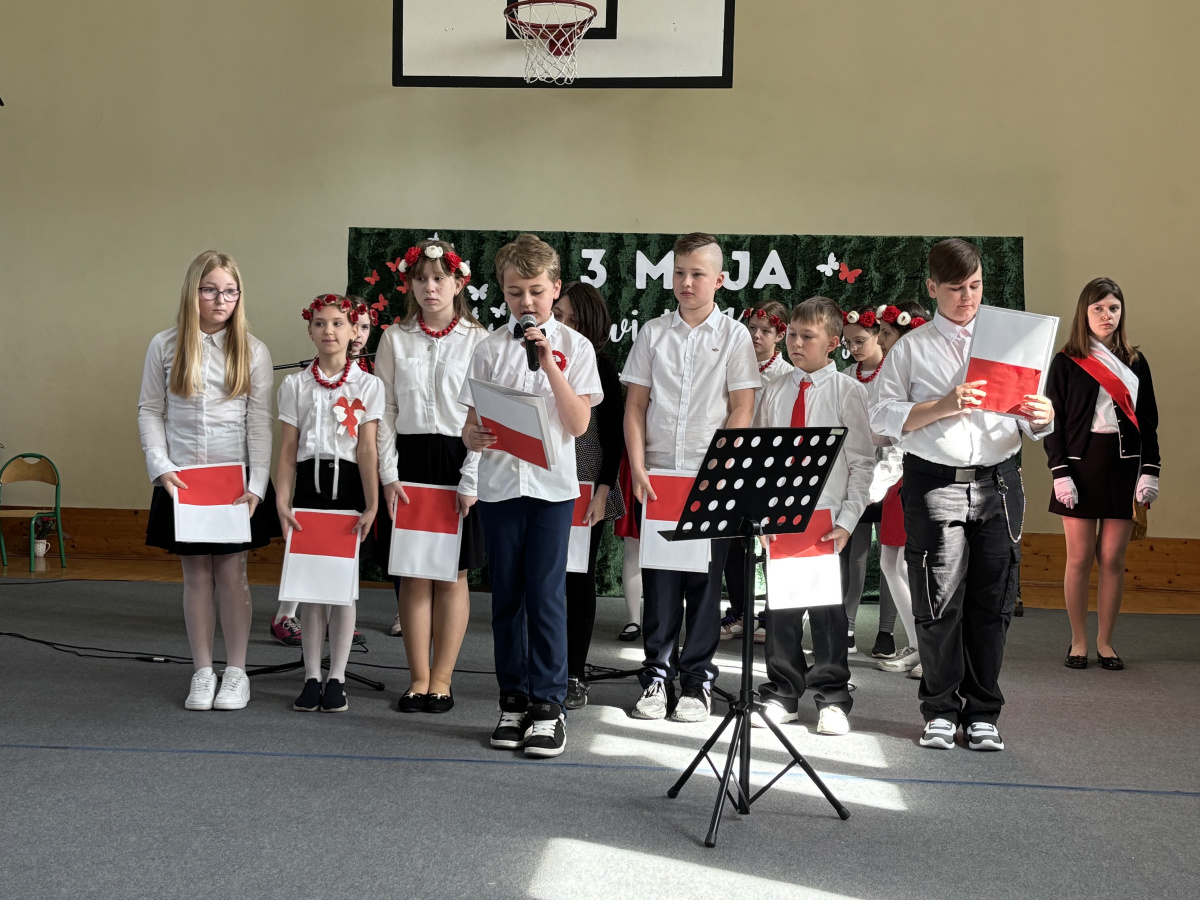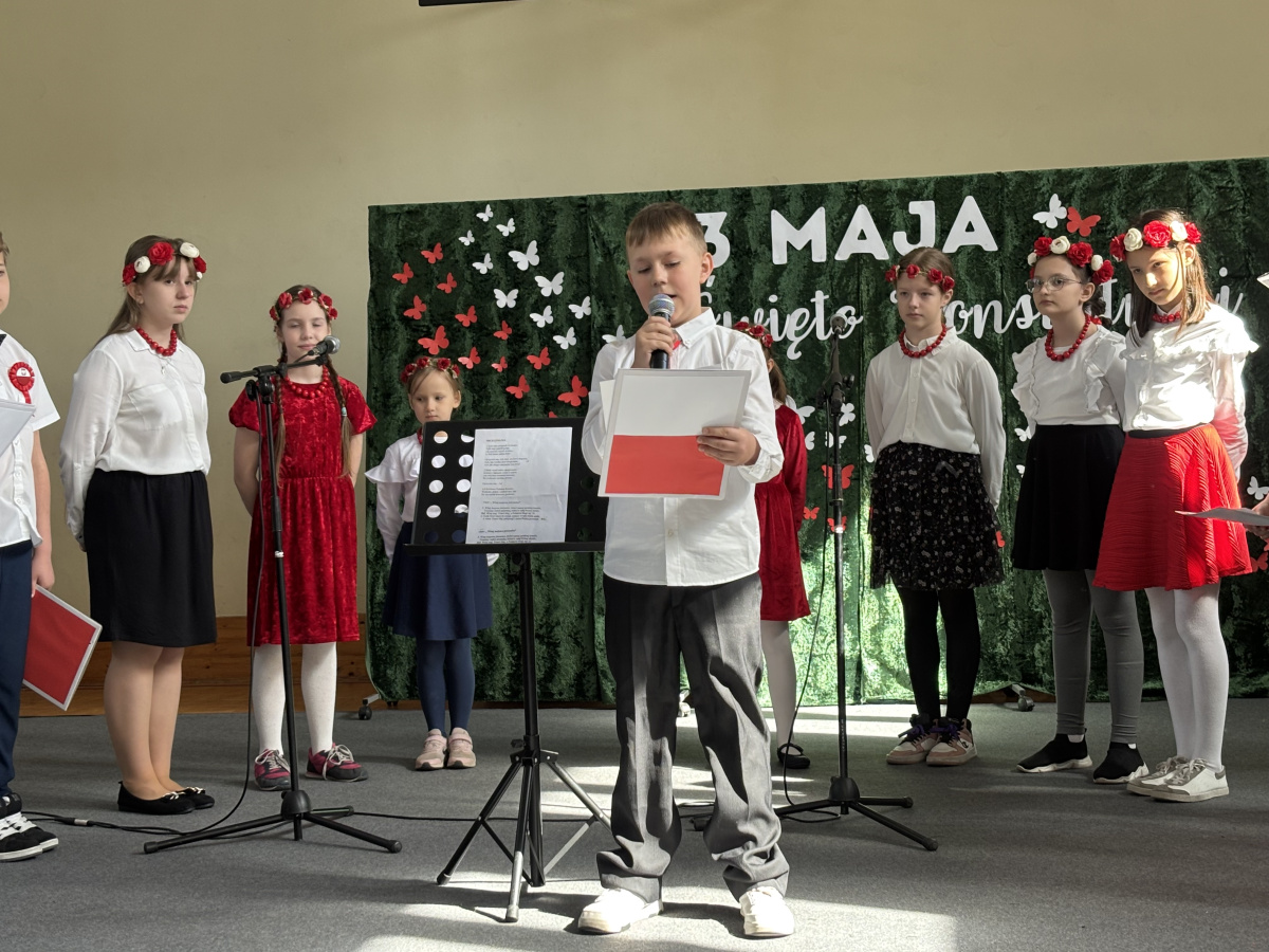 Dnia 25 kwietnia w naszej szkole odbył się uroczysty apel z okazji rocznicy uchwalenia Konstytucji 3 Maja – jednego z najważniejszych wydarzeń w historii Polski. W występie wzięli udział uczniowie klas IV i V, a także szkolny zespół wokalny.