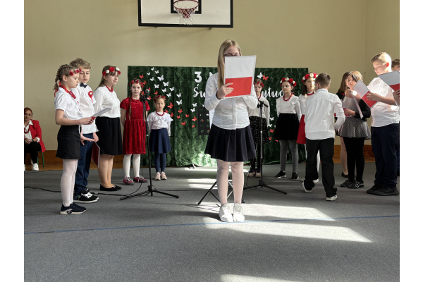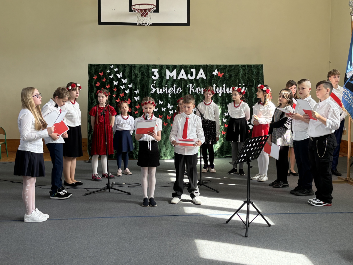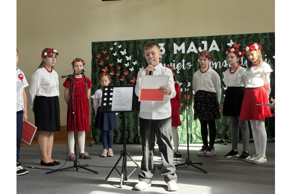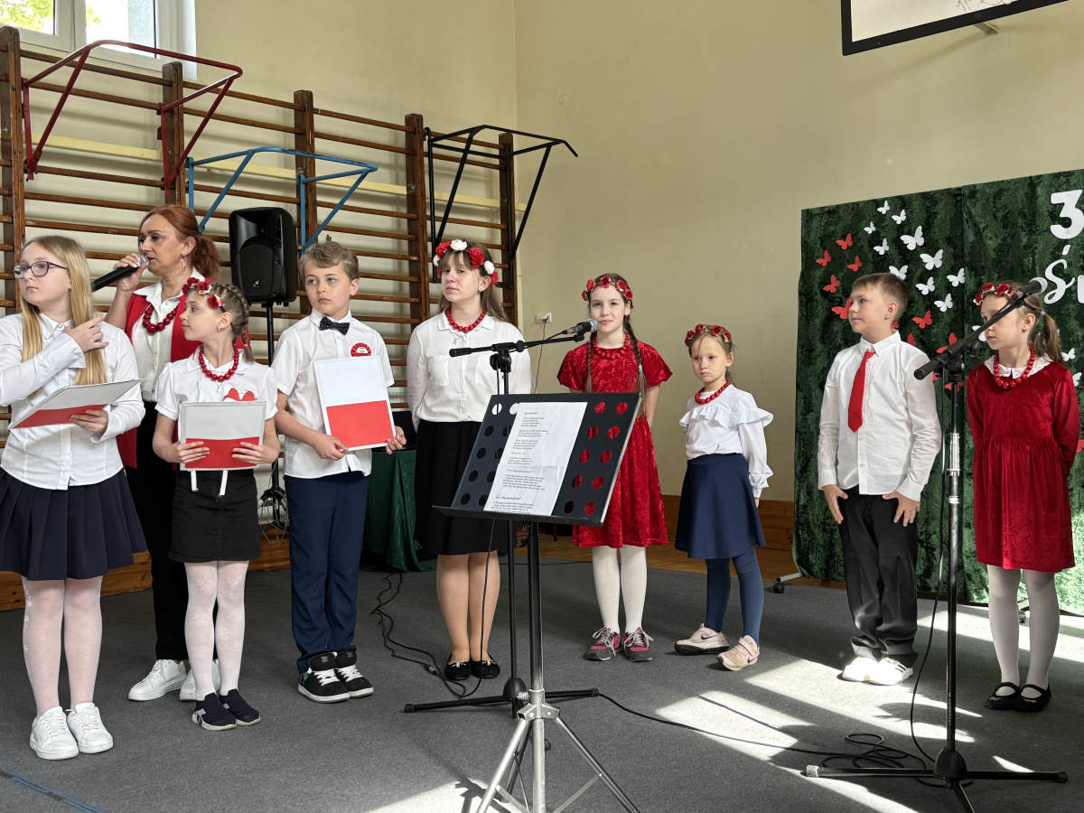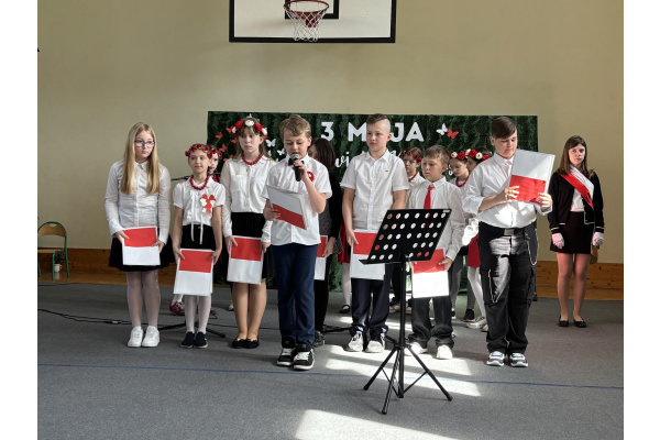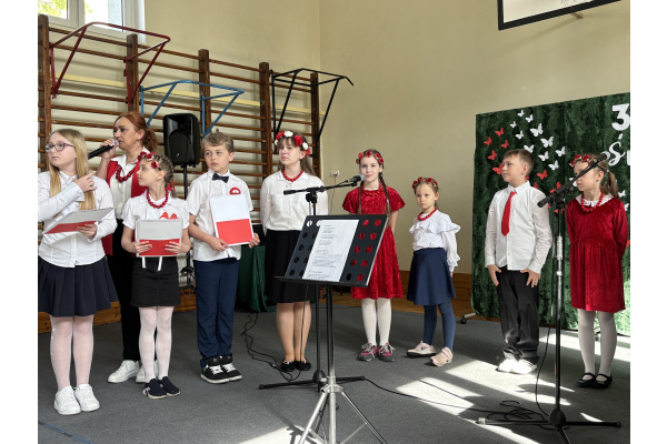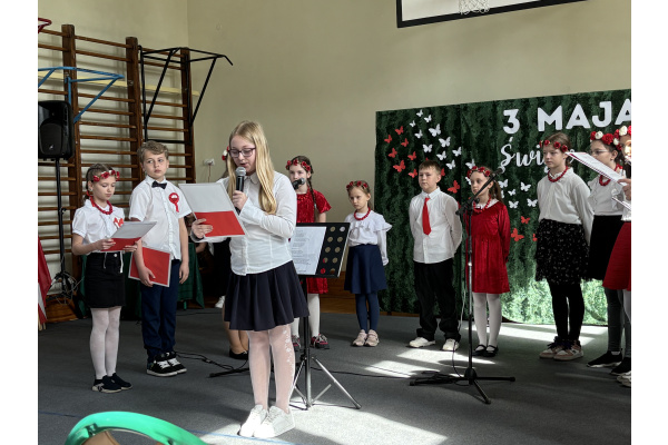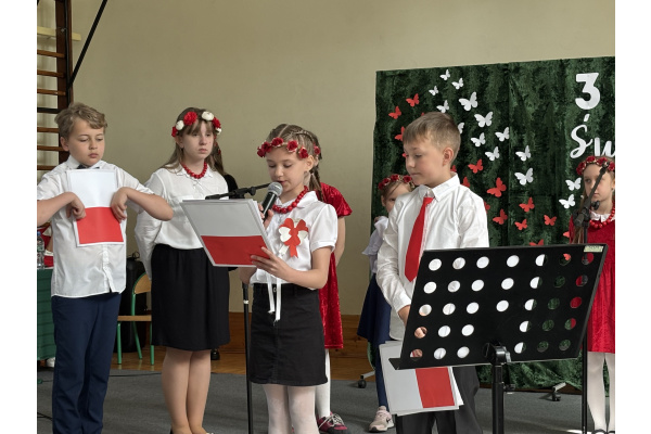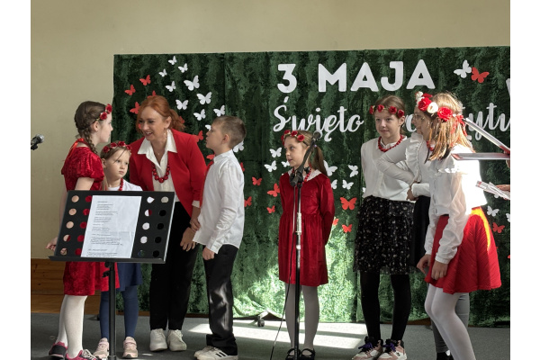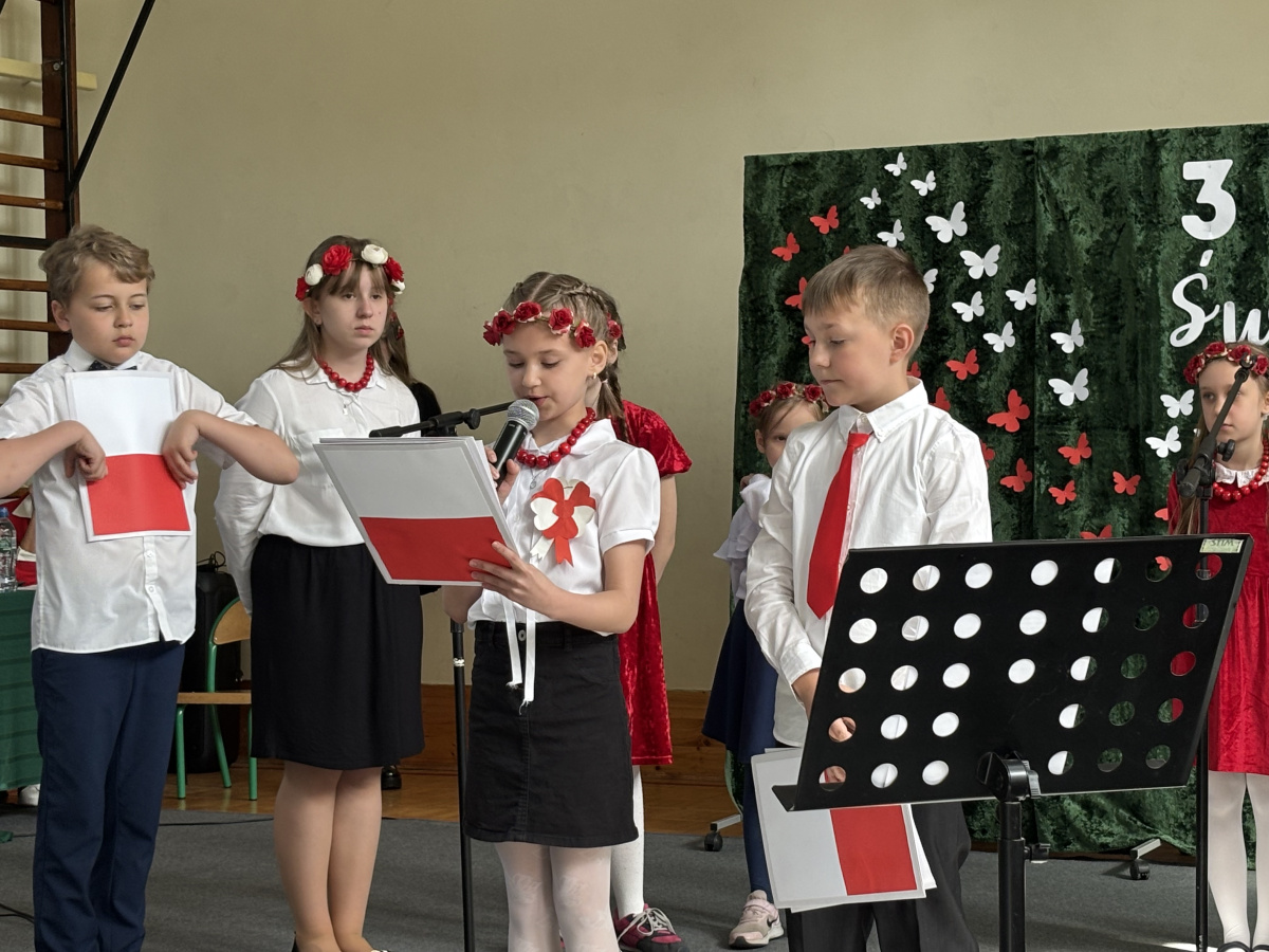 Dnia 25 kwietnia w naszej szkole odbył się uroczysty apel z okazji rocznicy uchwalenia Konstytucji 3 Maja – jednego z najważniejszych wydarzeń w historii Polski. W występie wzięli udział uczniowie klas IV i V, a także szkolny zespół wokalny.