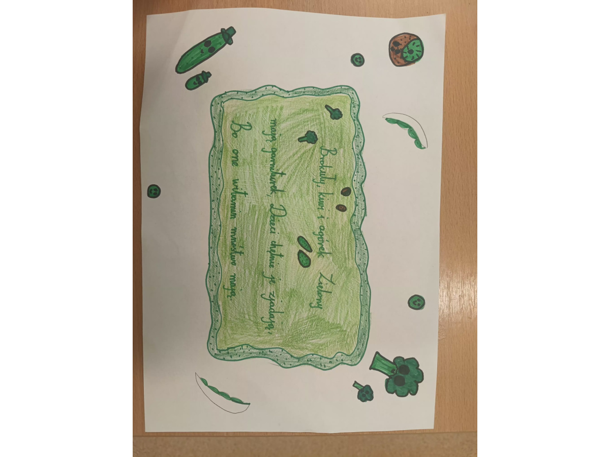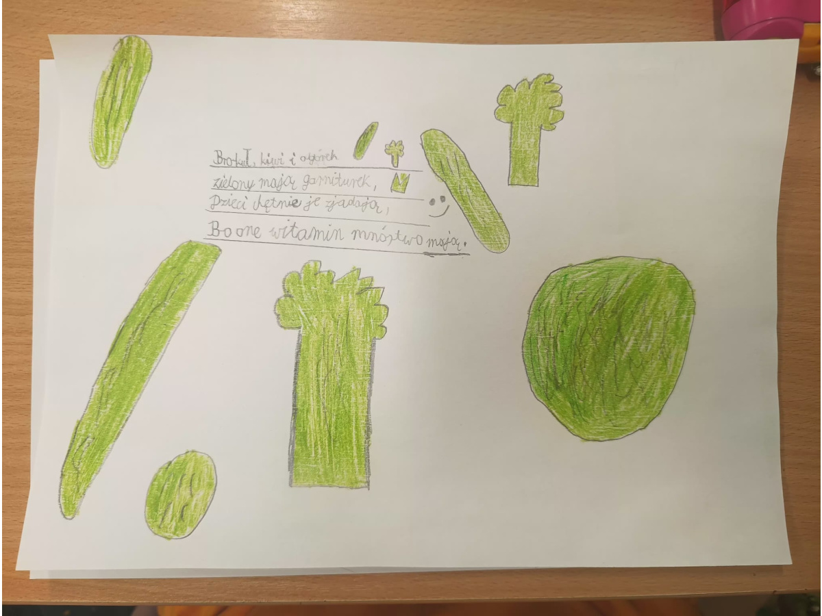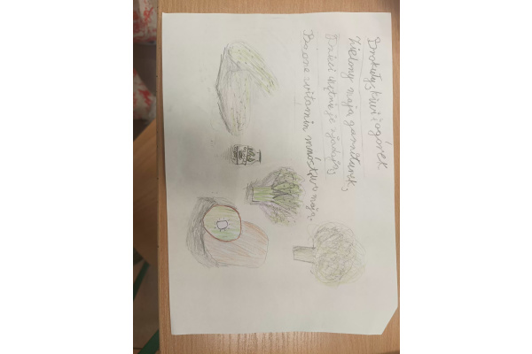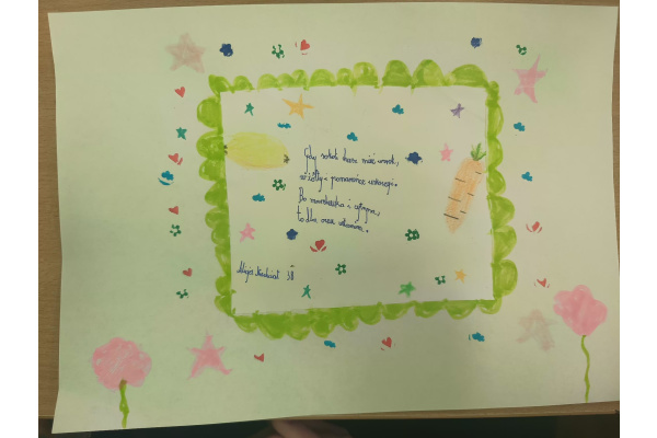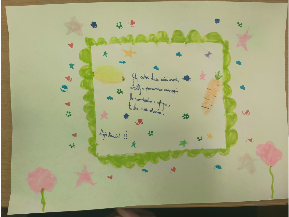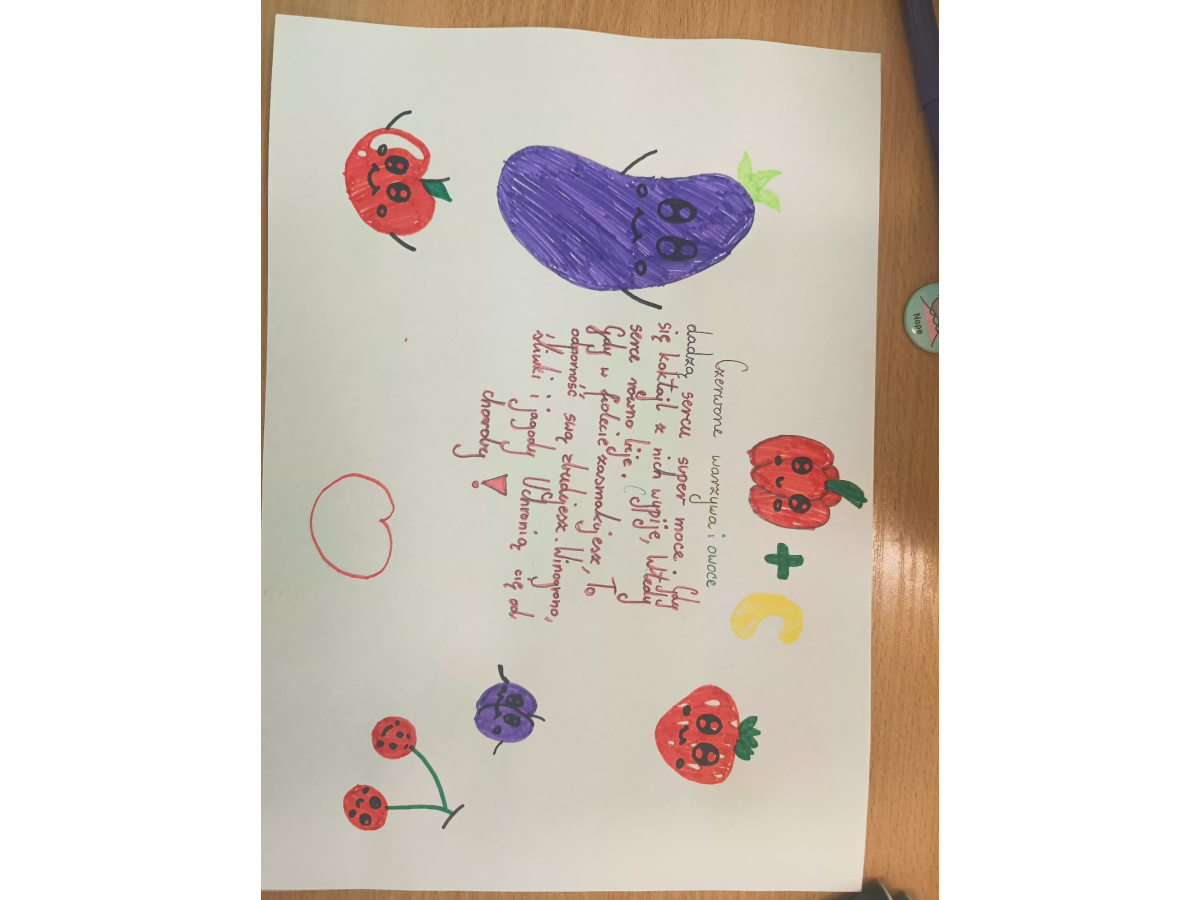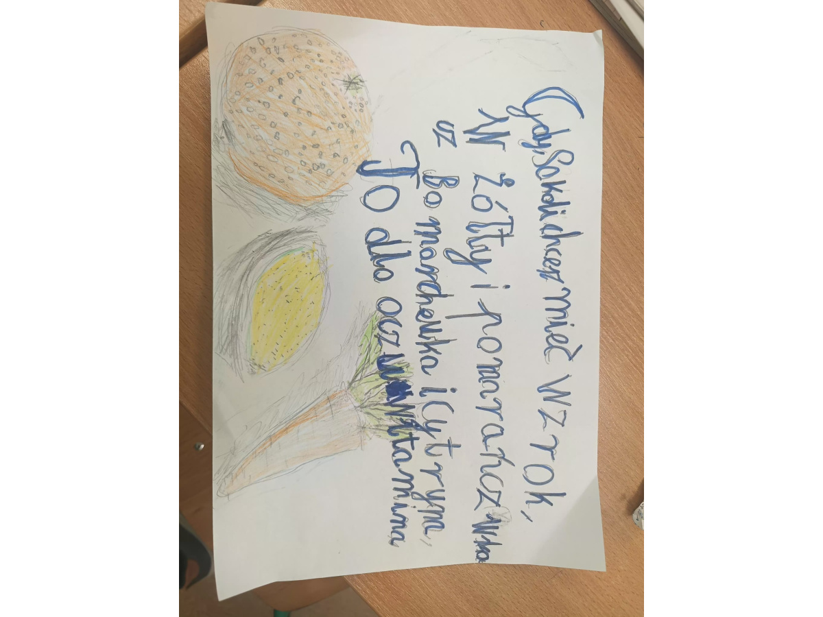 „Program dla szkół” to unijny projekt koordynowany przez Krajowy Ośrodek Wsparcia Rolnictwa, który polega na dostarczaniu dzieciom owoców, warzyw oraz mleka i przetworów mlecznych. Głównym celem „Programu dla szkół” jest kształtowanie prawidłowych nawyków żywieniowych poprzez dostarczanie uczniom produktów mlecznych oraz owocowo-warzywnych. Dzięki temu dzieci od najmłodszych lat poznają smaki zdrowych przekąsek. W ramach tego właśnie programu wykonaliśmy plakaty o rymowankach na temat warzyw i owoców.