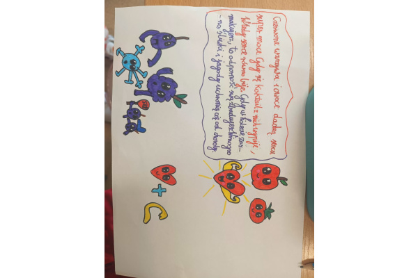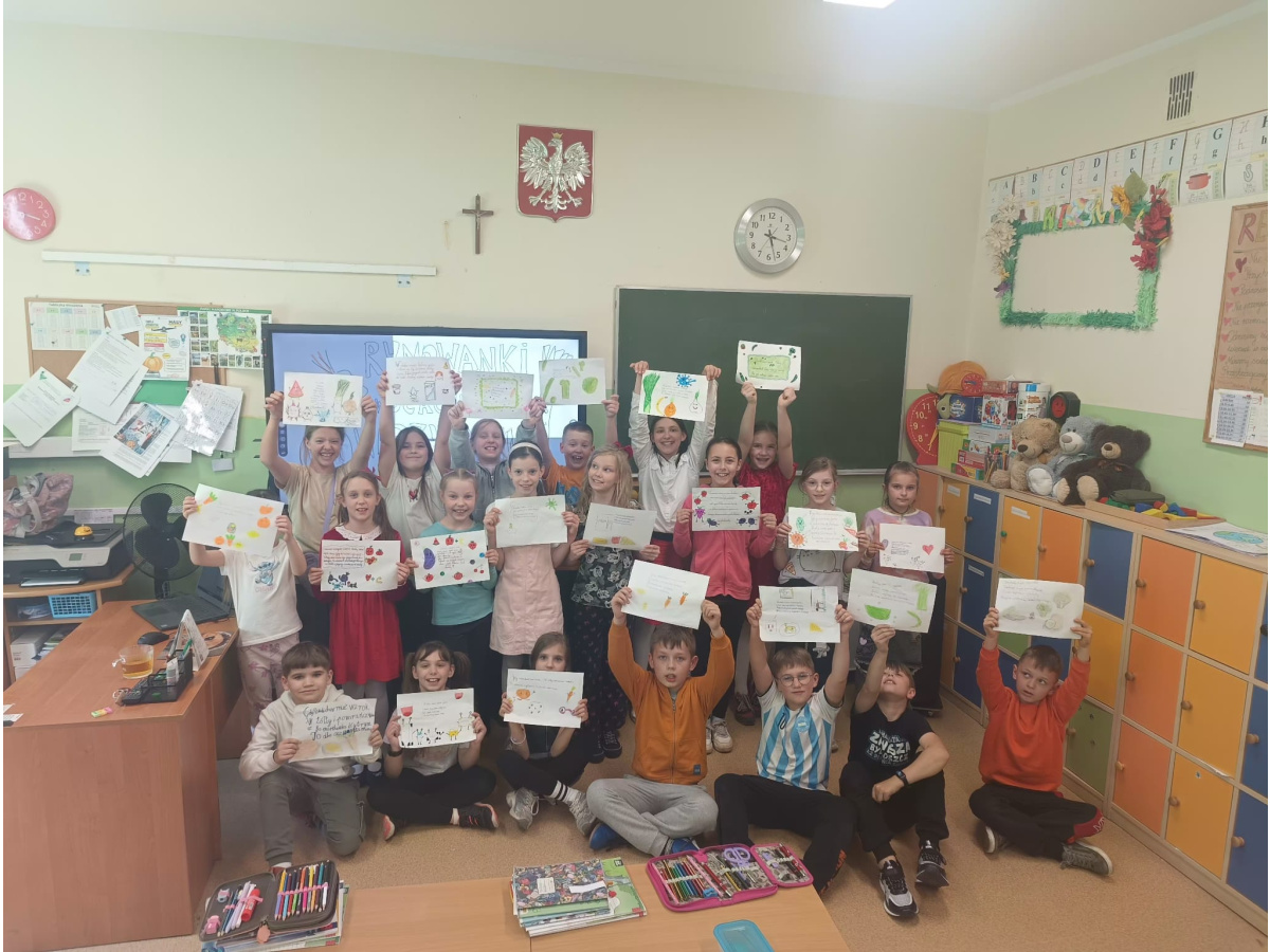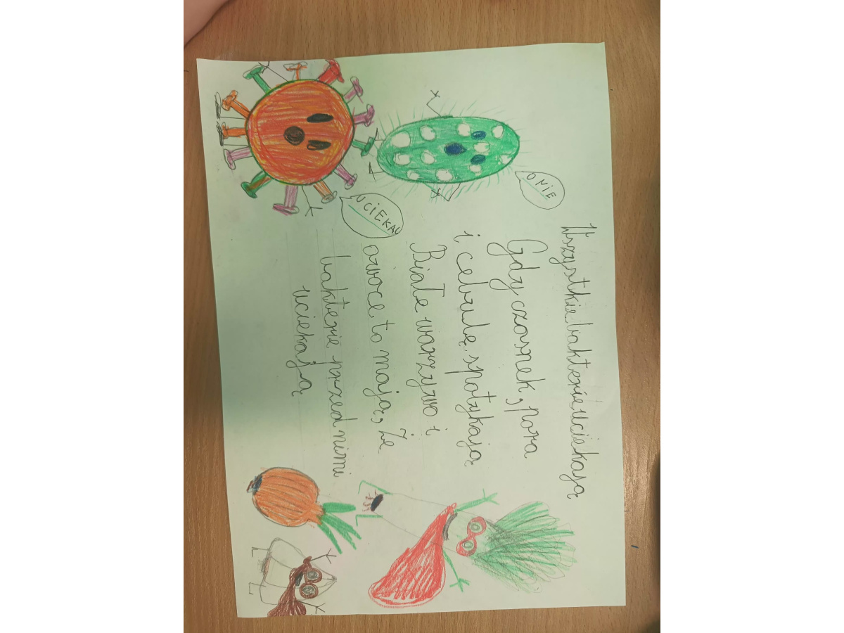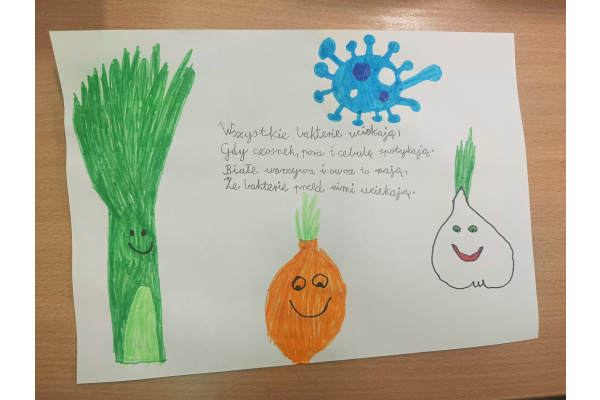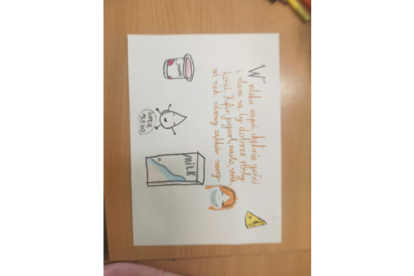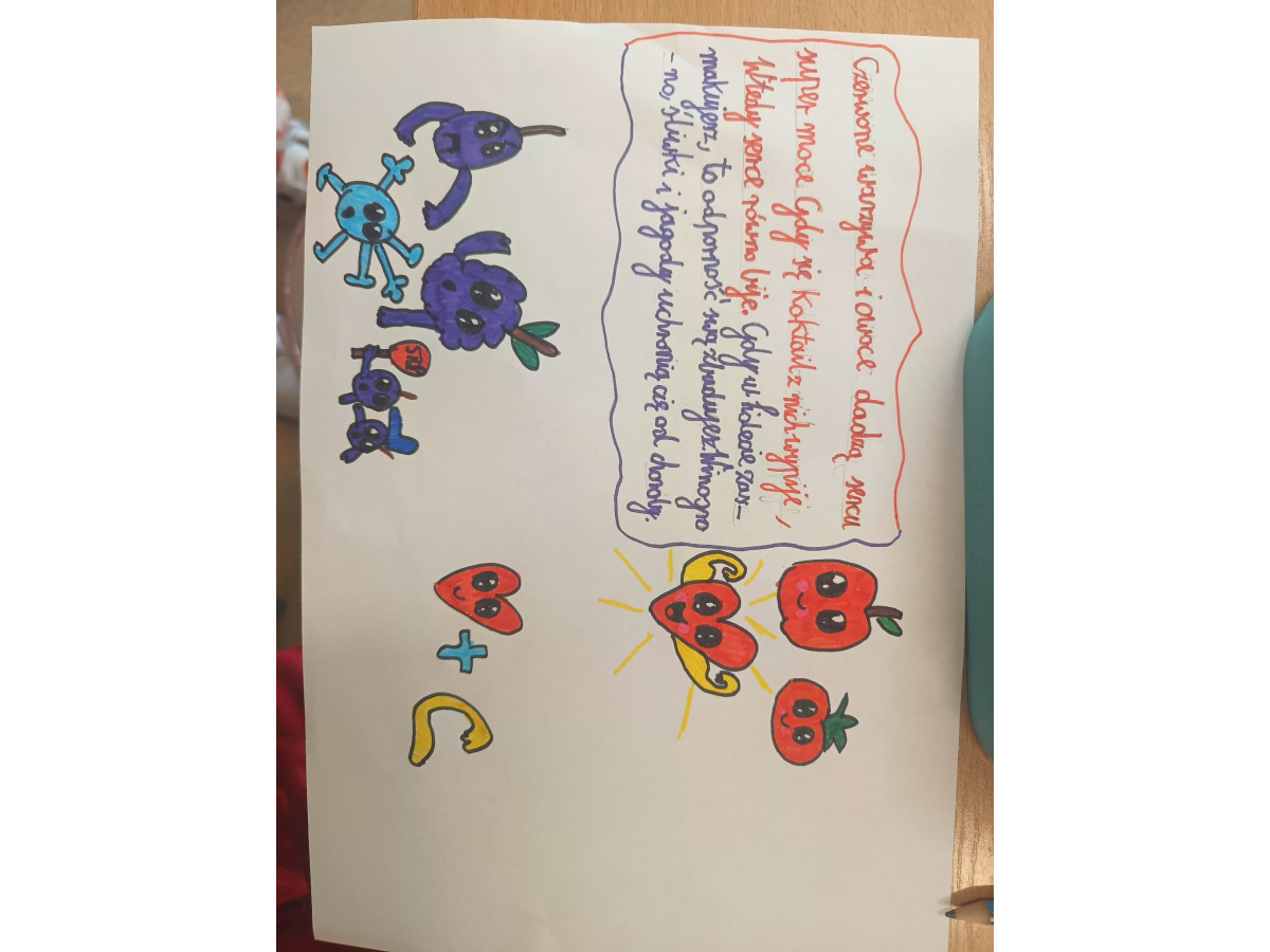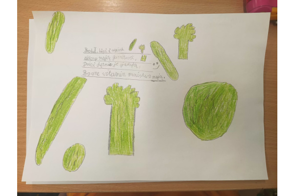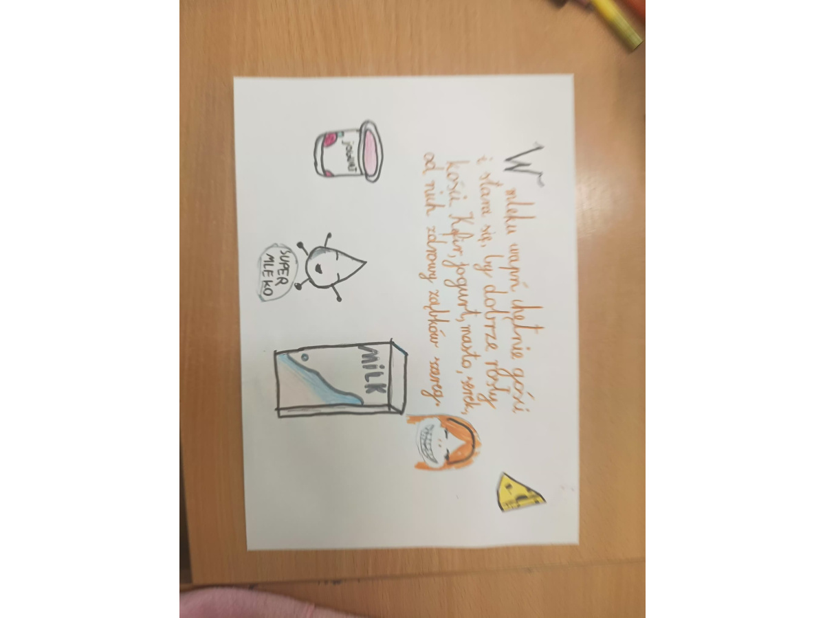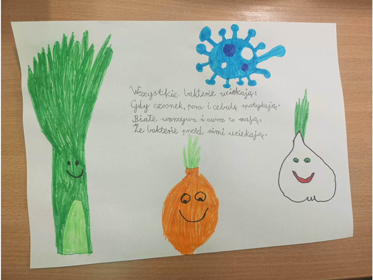 „Program dla szkół” to unijny projekt koordynowany przez Krajowy Ośrodek Wsparcia Rolnictwa, który polega na dostarczaniu dzieciom owoców, warzyw oraz mleka i przetworów mlecznych. Głównym celem „Programu dla szkół” jest kształtowanie prawidłowych nawyków żywieniowych poprzez dostarczanie uczniom produktów mlecznych oraz owocowo-warzywnych. Dzięki temu dzieci od najmłodszych lat poznają smaki zdrowych przekąsek. W ramach tego właśnie programu wykonaliśmy plakaty o rymowankach na temat warzyw i owoców.