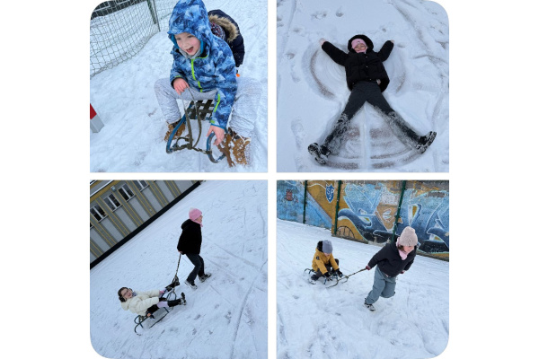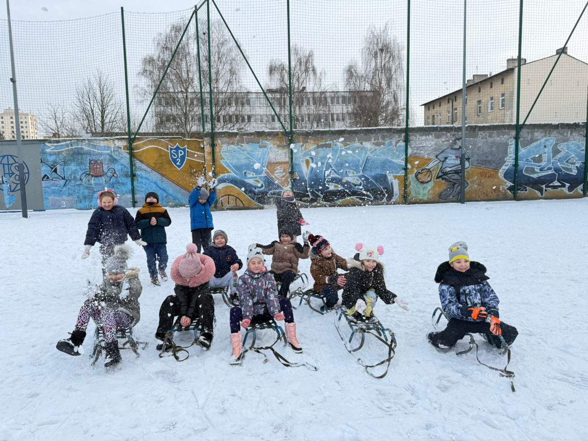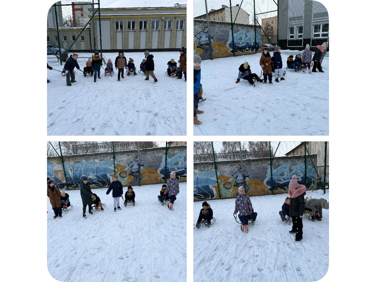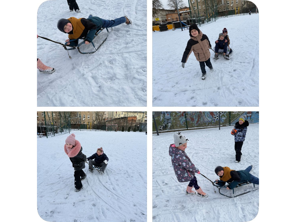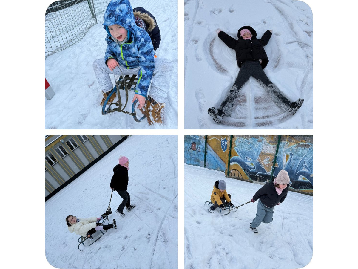 o przerwie świątecznej wróciliśmy do aktywności fizycznej w śnieżnej aurze! Klasy 1A oraz 1B na lekcji wychowania fizycznego spędzili czas na pokrytym śniegiem boisku. Ścigaliśmy się na sankach, biegaliśmy, lepiliśmy bałwana, rzucaliśmy się śnieżkami, zostawialiśmy liczne ślady na śniegu. Wszyscy byli bardzo zadowoleni z lekcji w takiej formie. Podczas zabaw na śniegu uczniowie rozwijali swoją kreatywność i pomysłowość. Śnieżne zabawy, dostarczyły wszystkim dużo uśmiechu oraz radości :)