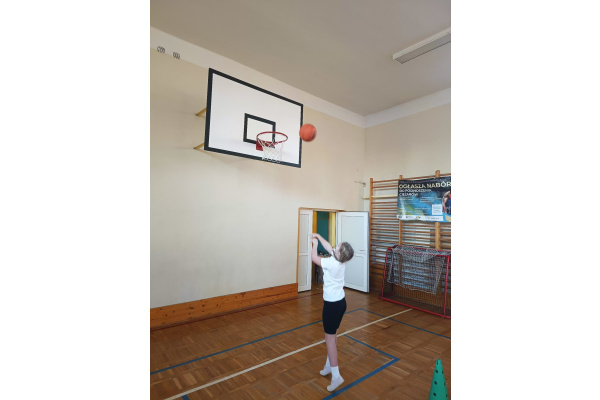 Uczniowie klasy 3b poznali na zajęciach wychowania fizycznego elementy koszykówki. Gry znanej już od 1891 roku. Najbardziej interesujące okazało się celowanie do kosza. To, mimo wielu niecelnych prób nie zraziło nikogo. Czasami trzeba wielu ćwiczeń by osiągnąć cel. Okazuje się, że zasady gry są cenne również w życiu codziennym .