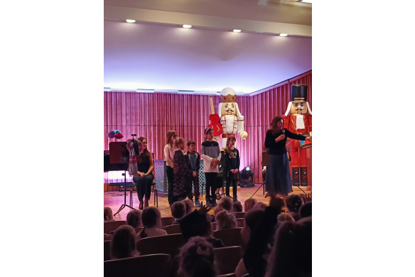 Klasa 3b wzięła udział w grudniowej audycji muzycznej w Filharmonii Pomorskiej. Nikt nie spodziewał się, że w tym dniu będzie oglądał publiczność ze sceny. Udało się to kilku przedstawicielom z naszej klasy. Nie dość, że zgrali przed widownią, to mieli również okazję wspólnie wykonać utwór z profesjonalnymi muzykami.