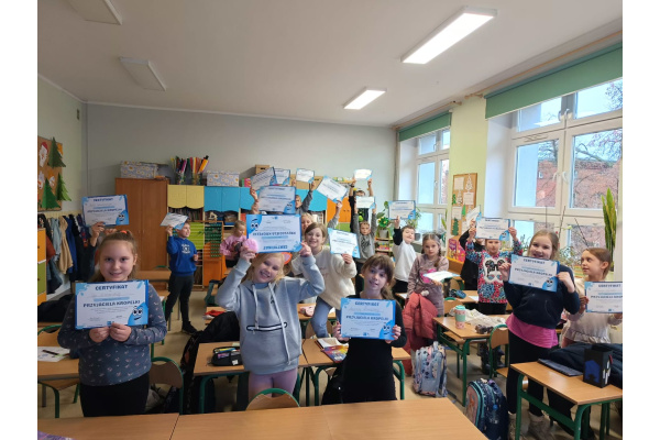 Miejskie Wodociągi i Kanalizacja w Bydgoszczy przeprowadziły w klasie 3b w dniu dzisiejszym zajęcia edukacyjne pod hasłem "Zostań Przyjacielem Kropelki". Podczas lekcji dzieci dowiedziały się, skąd pochodzi woda dostarczana do ich domów, jakie korzyści płyną z picia kranówki oraz dlaczego odpowiednie zarządzanie wodą jest kluczowe dla ochrony środowiska. Ważnym punktem zajęć było również omówienie zagadnień związanych z kanalizacją, w tym edukacja na temat tego, co nie powinno trafiać do ścieków. Zajęcia pochłonęły całą uwagę uczniów. Było dużo ciekawych pytań i refleksji. Na zakończenie uczestnicy otrzymali pamiątkowy certyfikat, potwierdzający nadanie im zaszczytnego tytułu „Przyjaciela Kropelki” oraz miłą , pachnącą niespodziankę. Zajęcia bardzo podobały się dzieciom.
