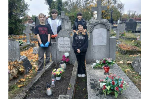 Uczniowie klas 3a oraz 1b uczcili pamięcią z okazji Święta Zmarłych Pomnik ku czci pomordowanych nauczycieli przy ul. Artyleryjskiej oraz groby żołnierzy, którzy zginęli podczas II Wojny Światowej.