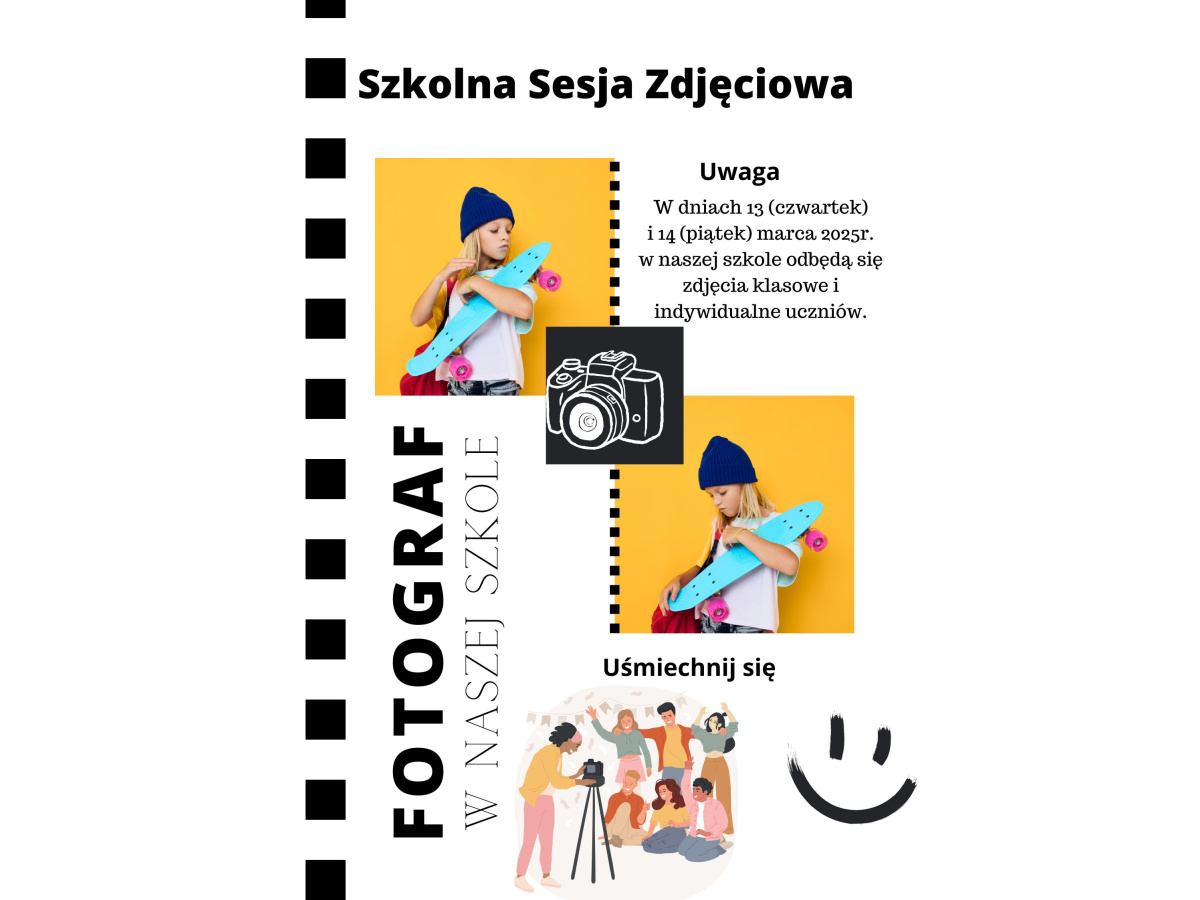 Informujemy, że w dniach 13 (czwartek) i 14 (piątek) marca 2025r. w naszej szkole odbędą się zdjęcia klasowe i indywidualne uczniów.