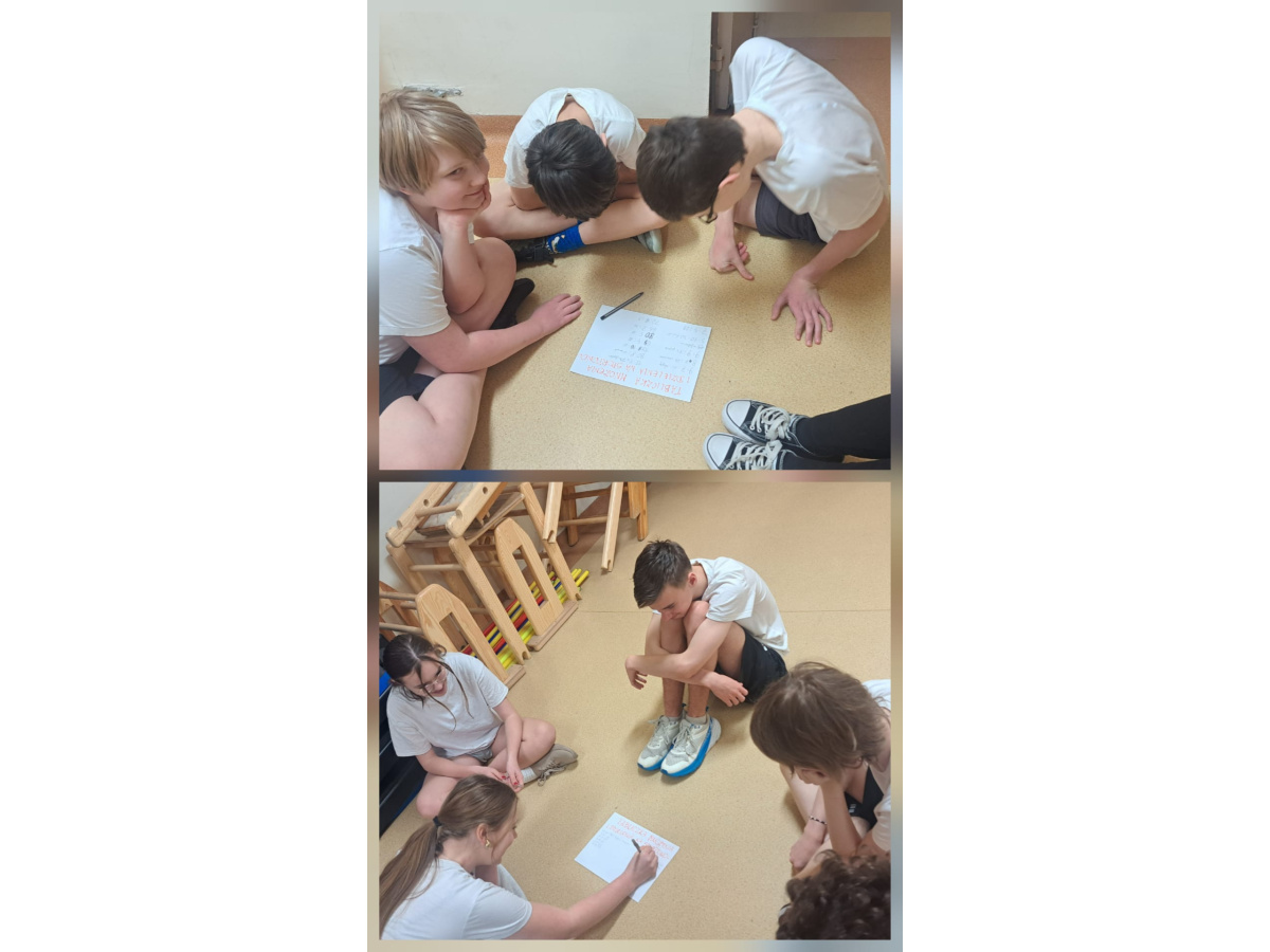 Podczas lekcji wf uczniowie rozwiązywali zadania z zakresu mnożenia i dzielenia. Poprawne obliczenie działania umożliwiało wykonanie określonego ćwiczenia fizycznego, takiego jak bieg, skok, przysiad czy wykonanie ćwiczeń typu brzuszki, deska czy "delfinki" . Zadania realizowane były w zespołach, co sprzyjało rozwijaniu umiejętności współpracy, odpowiedzialności i zdrowej rywalizacji.