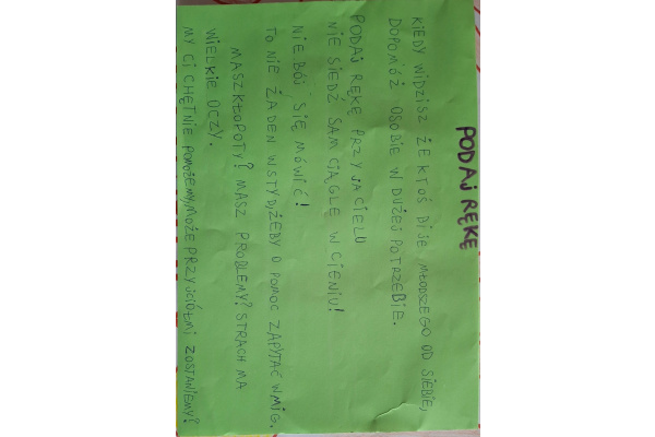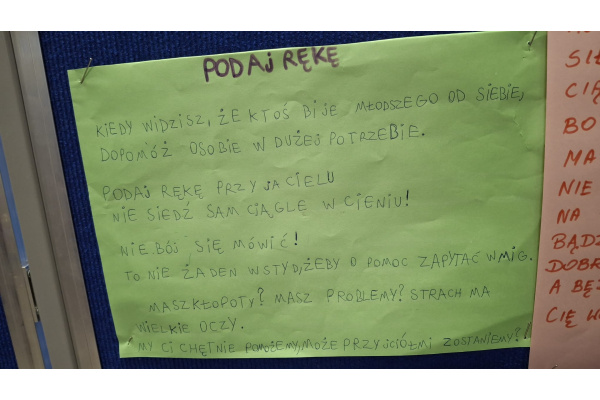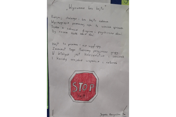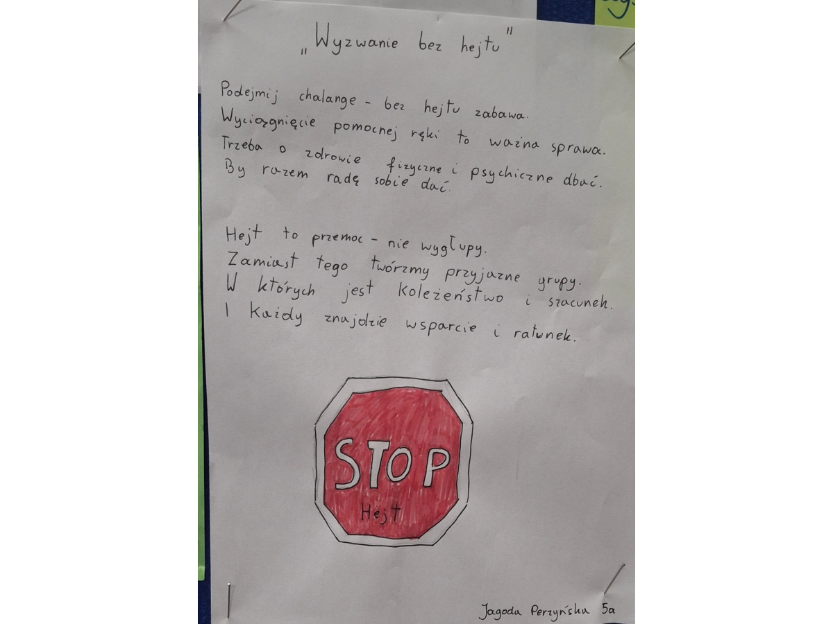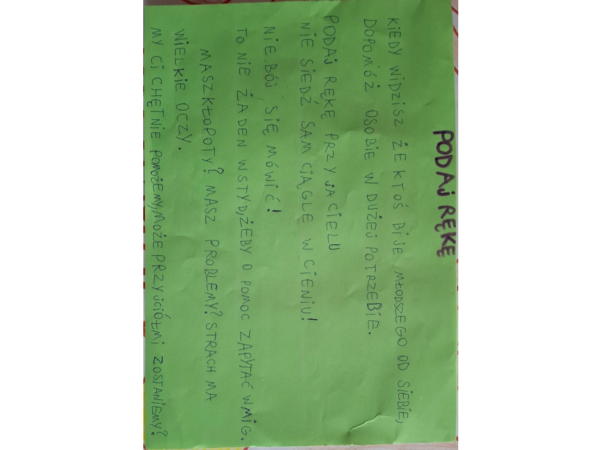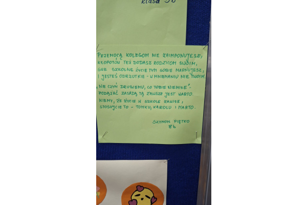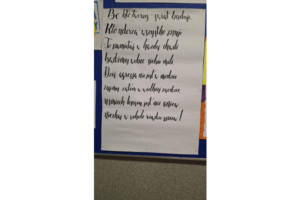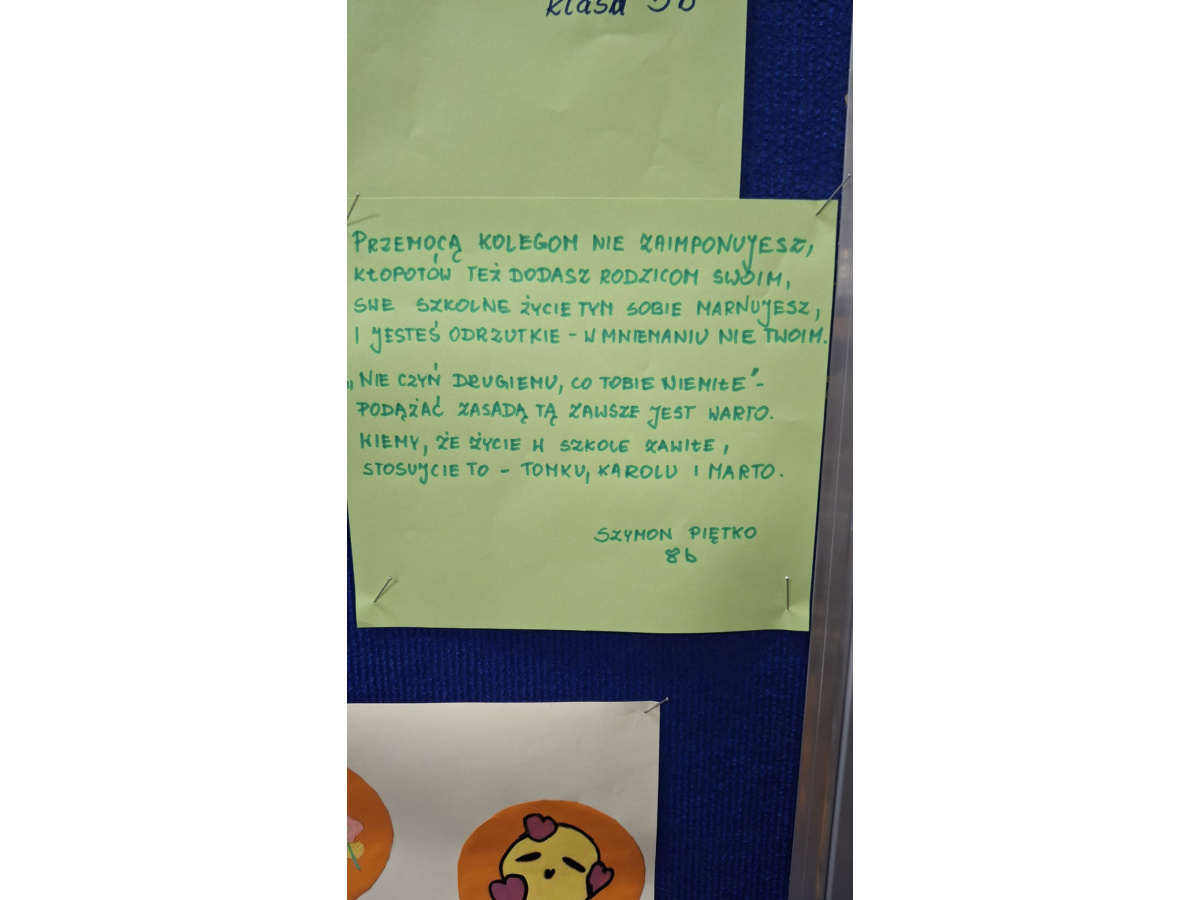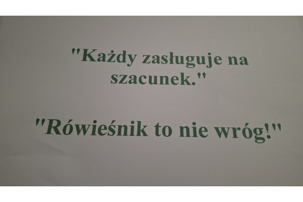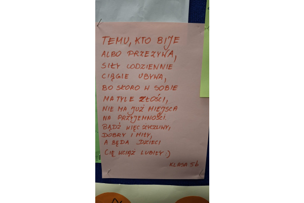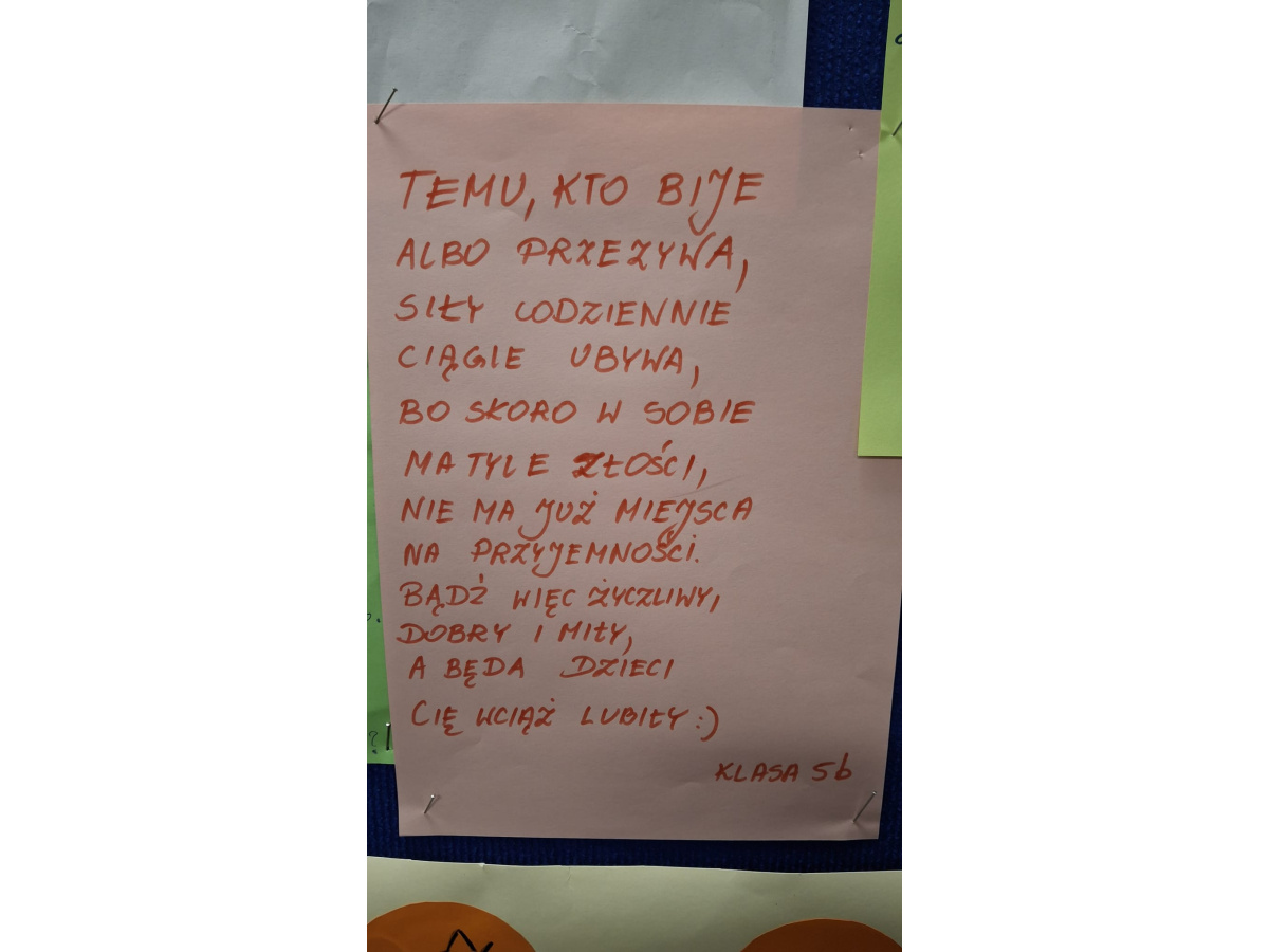 W "Tygodniu przeciwdziałania przemocy rówieśniczej" odbył sie konkurs na wiersz pt. "Nie bijemy - Rymujemy". Oto dzieła naszych uczniów: