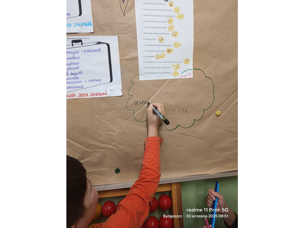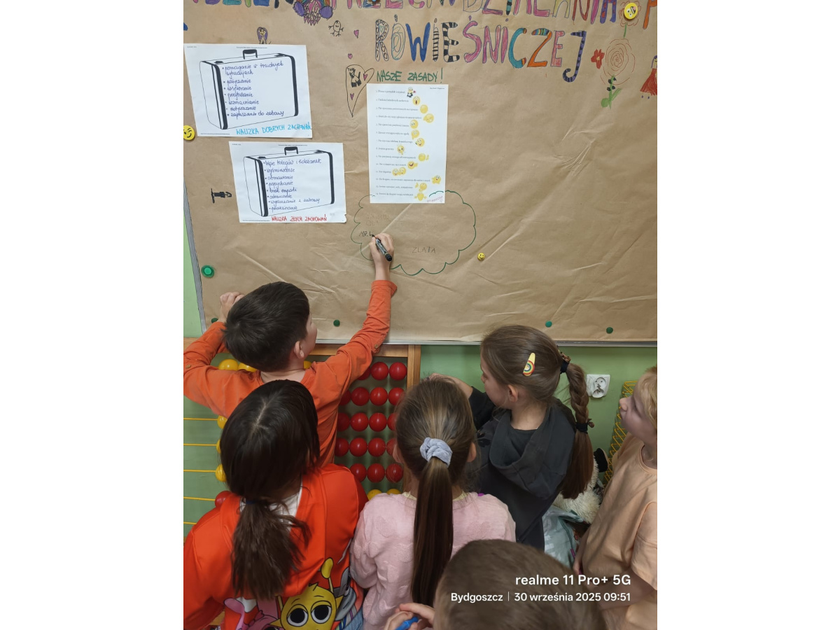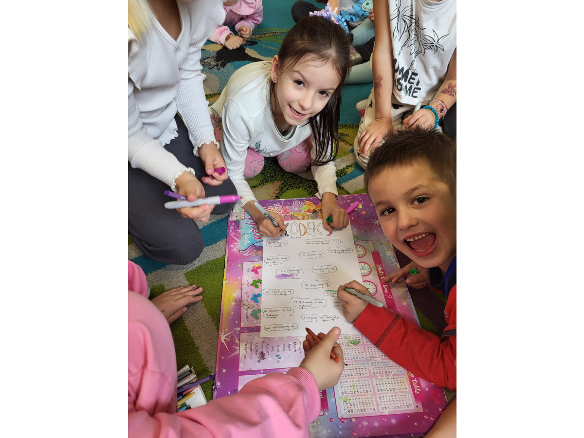 Dzisiejszego dnia uczniowie klas 1-3 w ramach naszej tygodniowej akcji tworzyli wspólne kodeksy klasowe. Ich zaangażowanie, podpisy świadczą o tym, że chcą się czuć w klasie bezpiecznie i akceptowani. Zasady stworzone przez uczniów mają nam towarzyszyć przez cały rok szkolny.